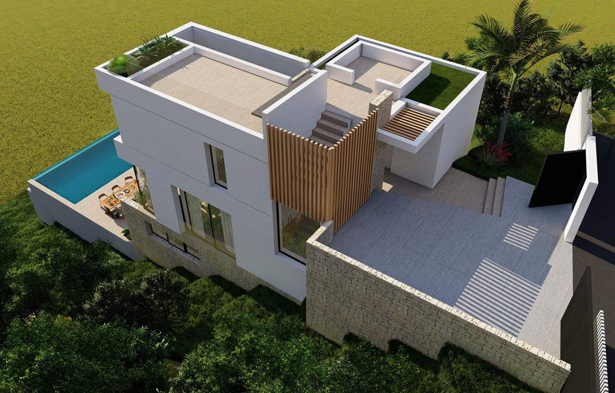 This contemporary villa offers stunning open sea views and a great location in Buenavista, just a short drive to Benalmadena, Fuengirola and the beaches. The design of the villa connects the living spaces with the terraces, creating wonderful indoor-outdoor living experience. Built to high quality specifications the villa is sold with a fully fitted kitchen, a good size pool and a roof top terrace. The purchaser has the option to chose some of the finishings, and can make some subtle changes to the interior layout.