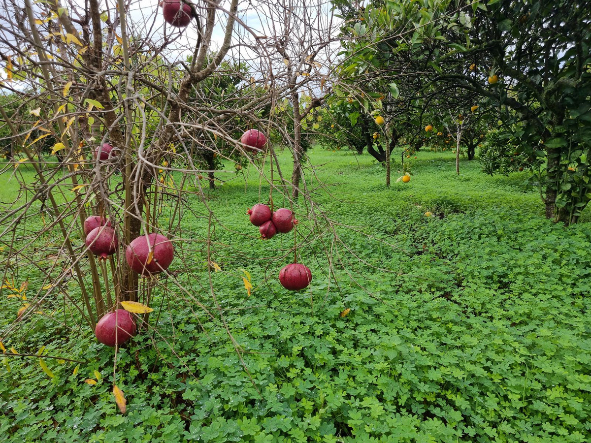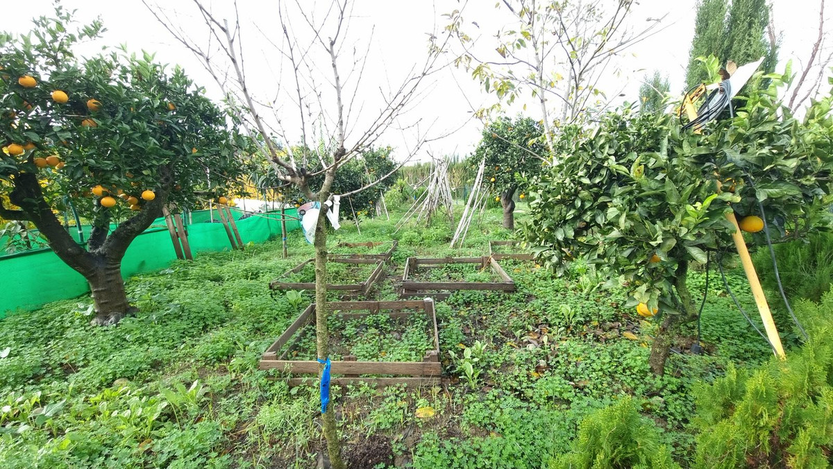 Fruit trees: Oranges, Pomegranates, Bananas, Avocados. Vegetables.