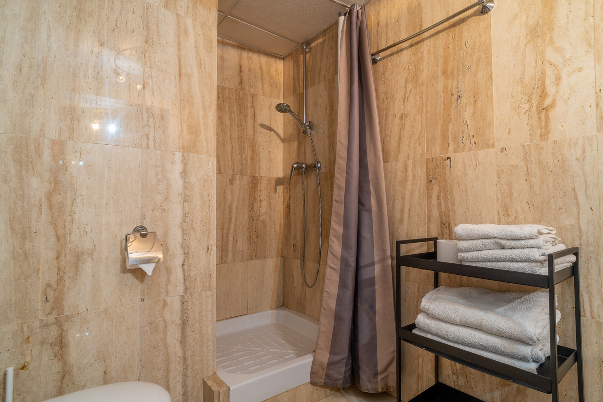 The second bedroom is also equipped with a double bed, fitted wardrobes and blackout curtains. The second bathroom is equipped with a shower, toilet and sink.