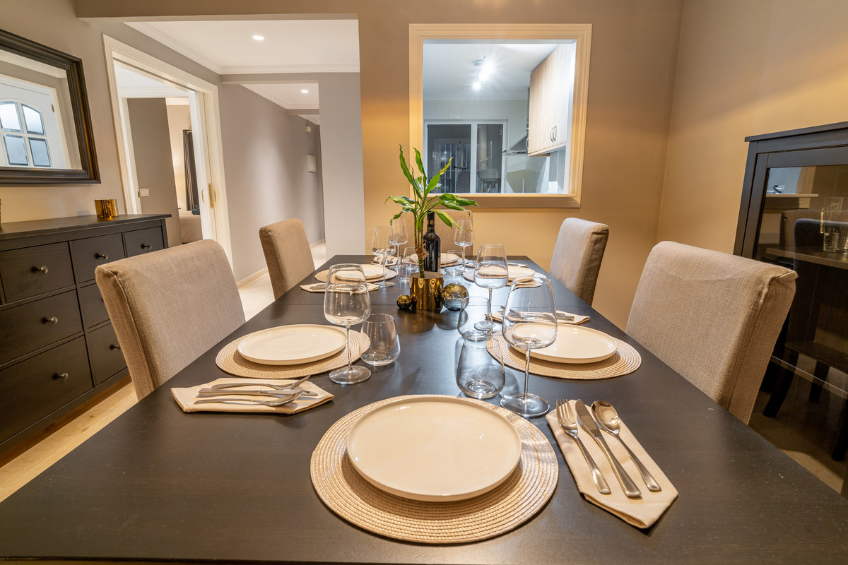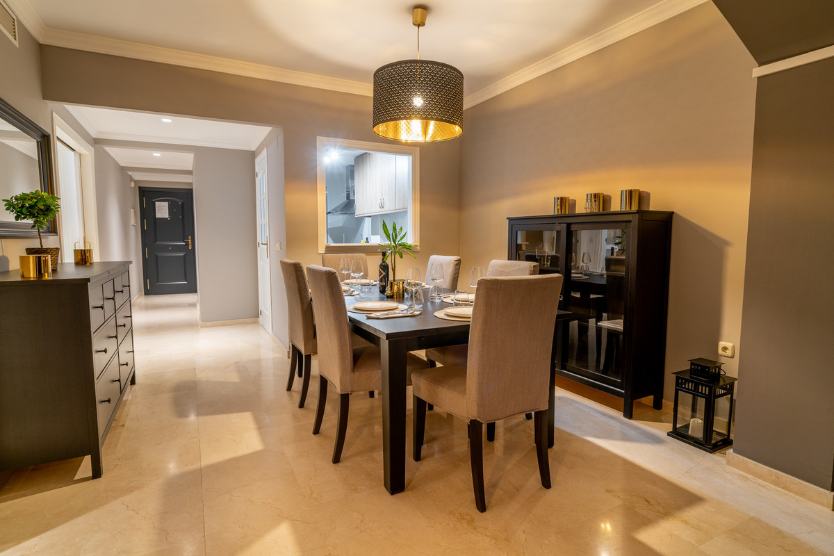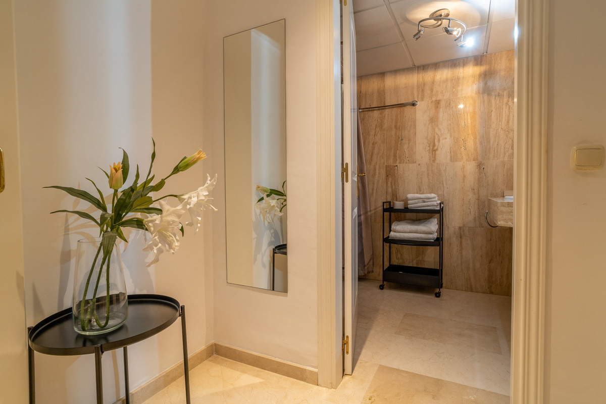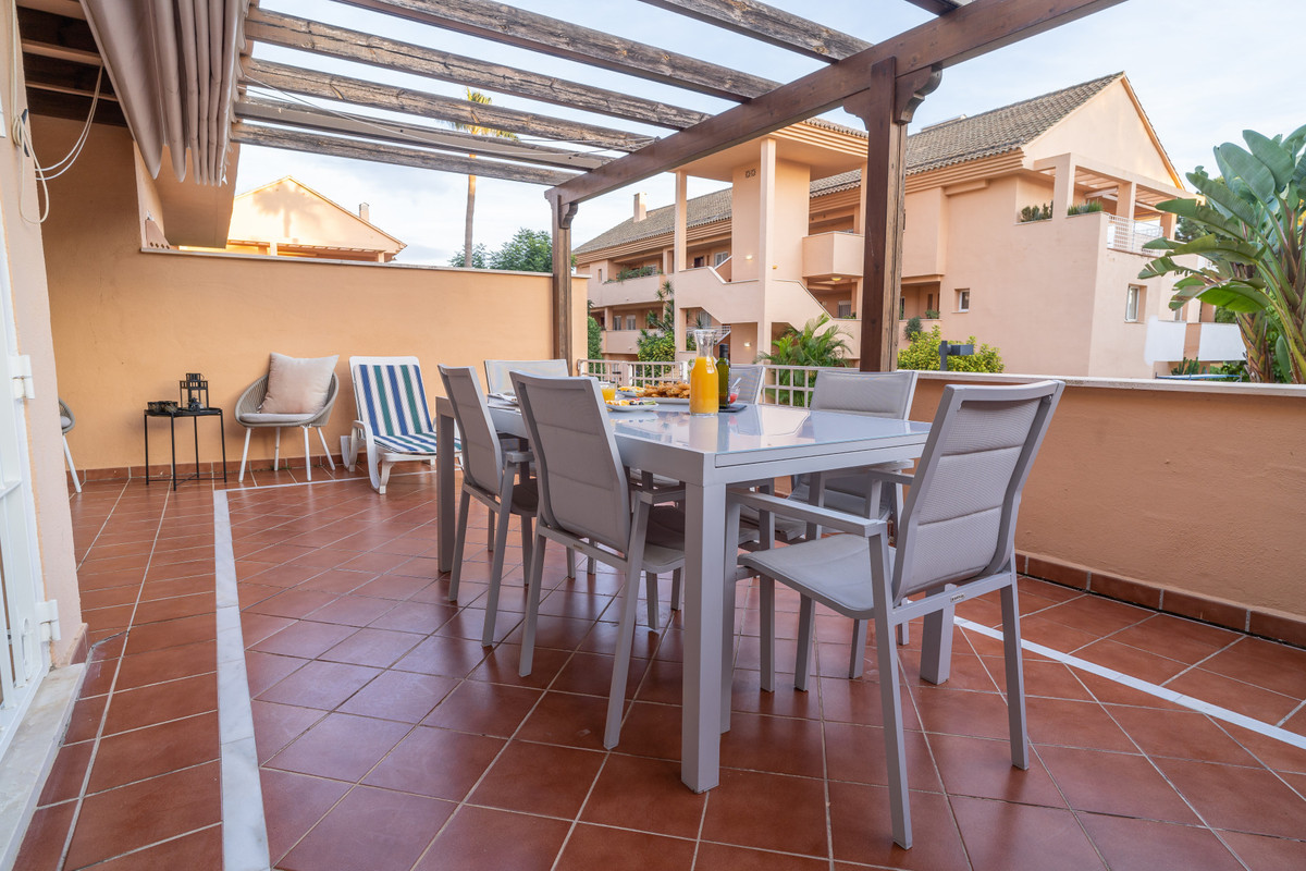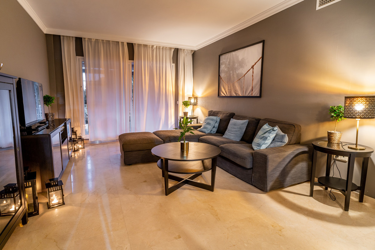 This ground floor apartment decorated with great detail is located in the Los Jardines de Santa Maria Golf urbanization, in the Elviria area, a very quiet place where you can relax and close to all services, just 500 meters from the center commercial area of Elviria, where you can find supermarkets such as Supersol or Supercor, in the area you can also find restaurants and a beach where there are beach bars and beach clubs.