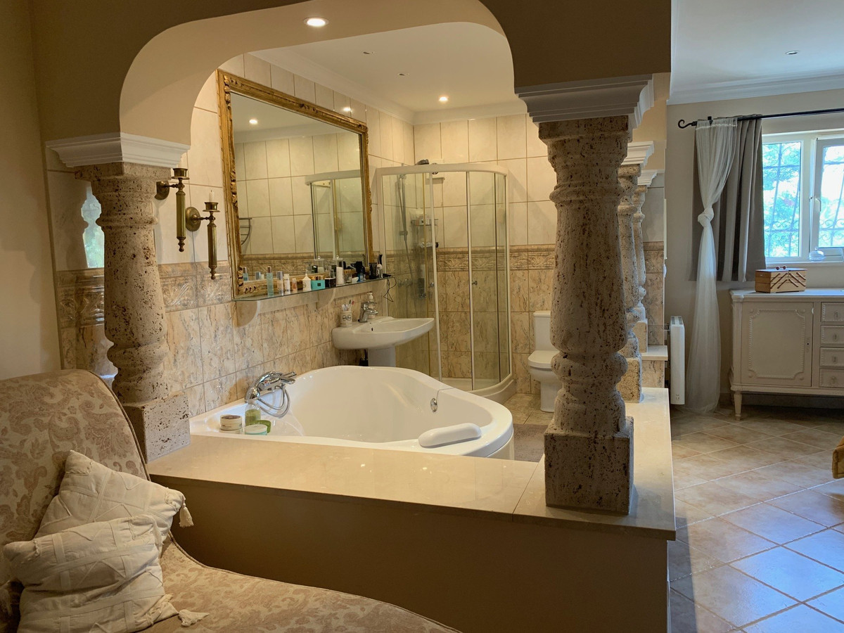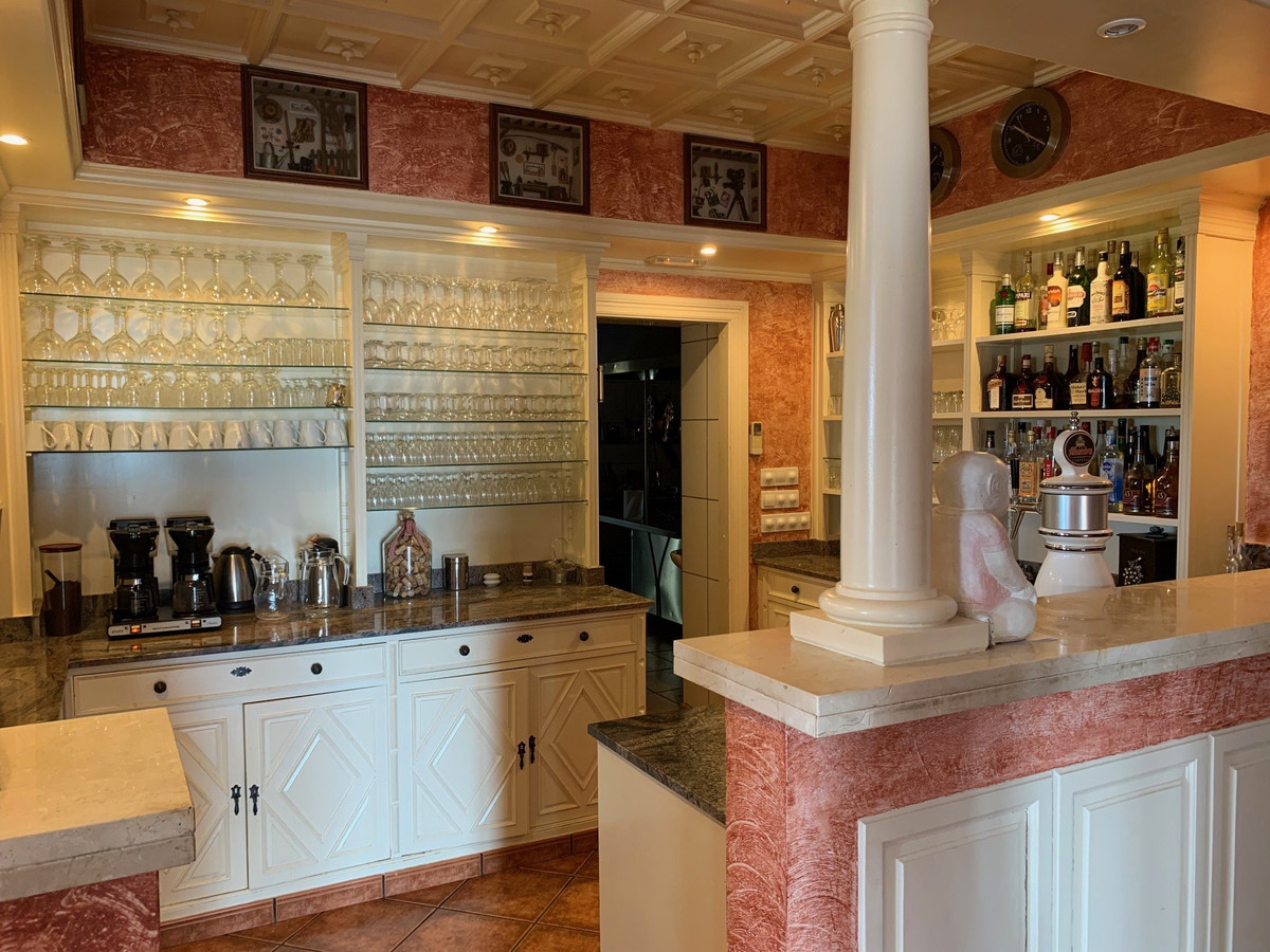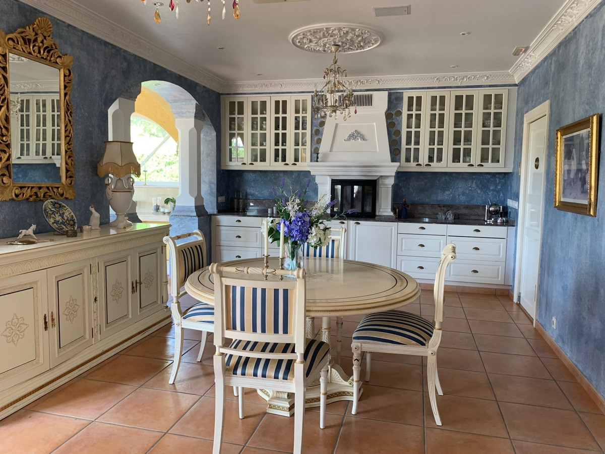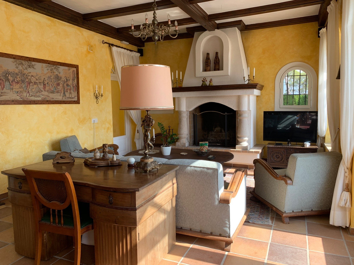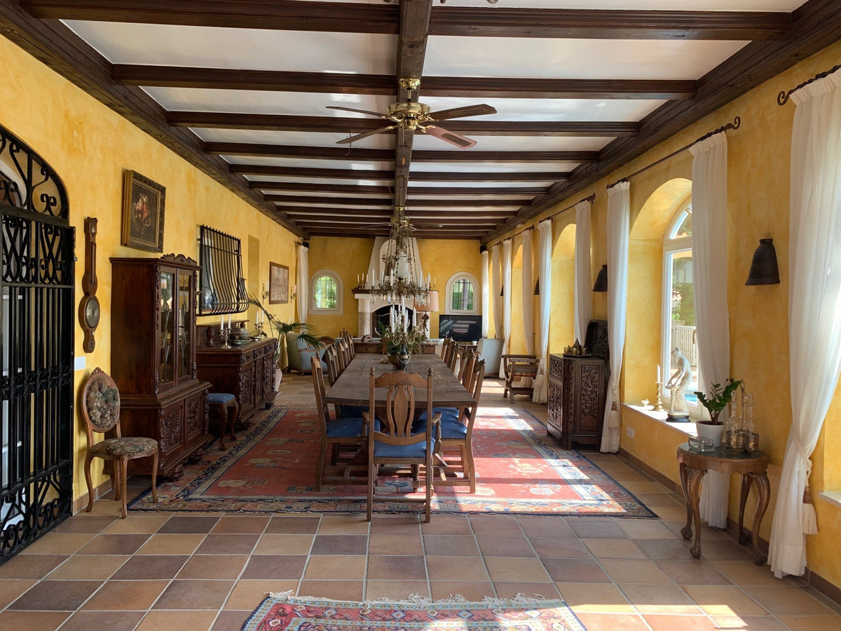 There are 7 fireplaces in addition to several functional kitchens, there is an industrial kitchen on the premises. It is sold furnished.