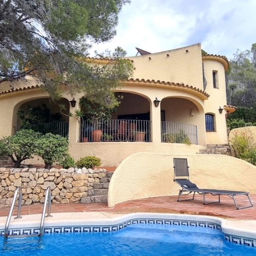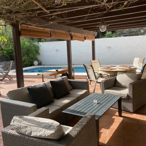 Villa with guest house, private pool, covered outdoor kitchen, several terraces, large garage and plenty of parking space.
