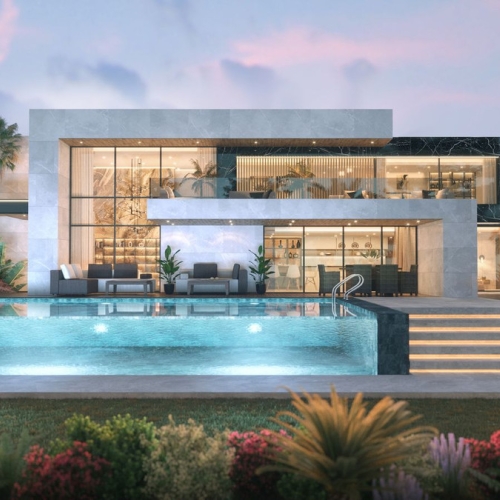 Det er en villa med et upåklageligt ydre og indre design og arkitektur, hvis adgang til huset ikke kun er smuk, men også helt privat.