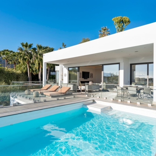 Surrounded by the peaceful greenery, this contemporary home offers families expansive bright and open spaces, plenty of entertainment features and multiple exterior lounging areas to enjoy Marbella's Mediterranean lifestyle.