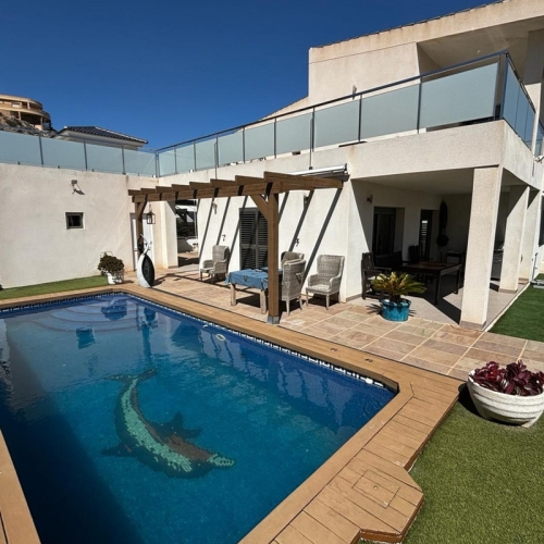 Abundance of outside space for dining and sunbathing around the private pool of 8x4, separate garage, and storage around the rear of the property.  Many extras with this detached villa including hot and cold ducted air conditioning, underfloor heating and underfloor cooling throughout, electric shutters, electric entrance and drive gates, free standing bath in the master en-suite, fitted wardrobes in all bedrooms, Garage and off road parking.  A property with a lot of character and well worth a viewing!