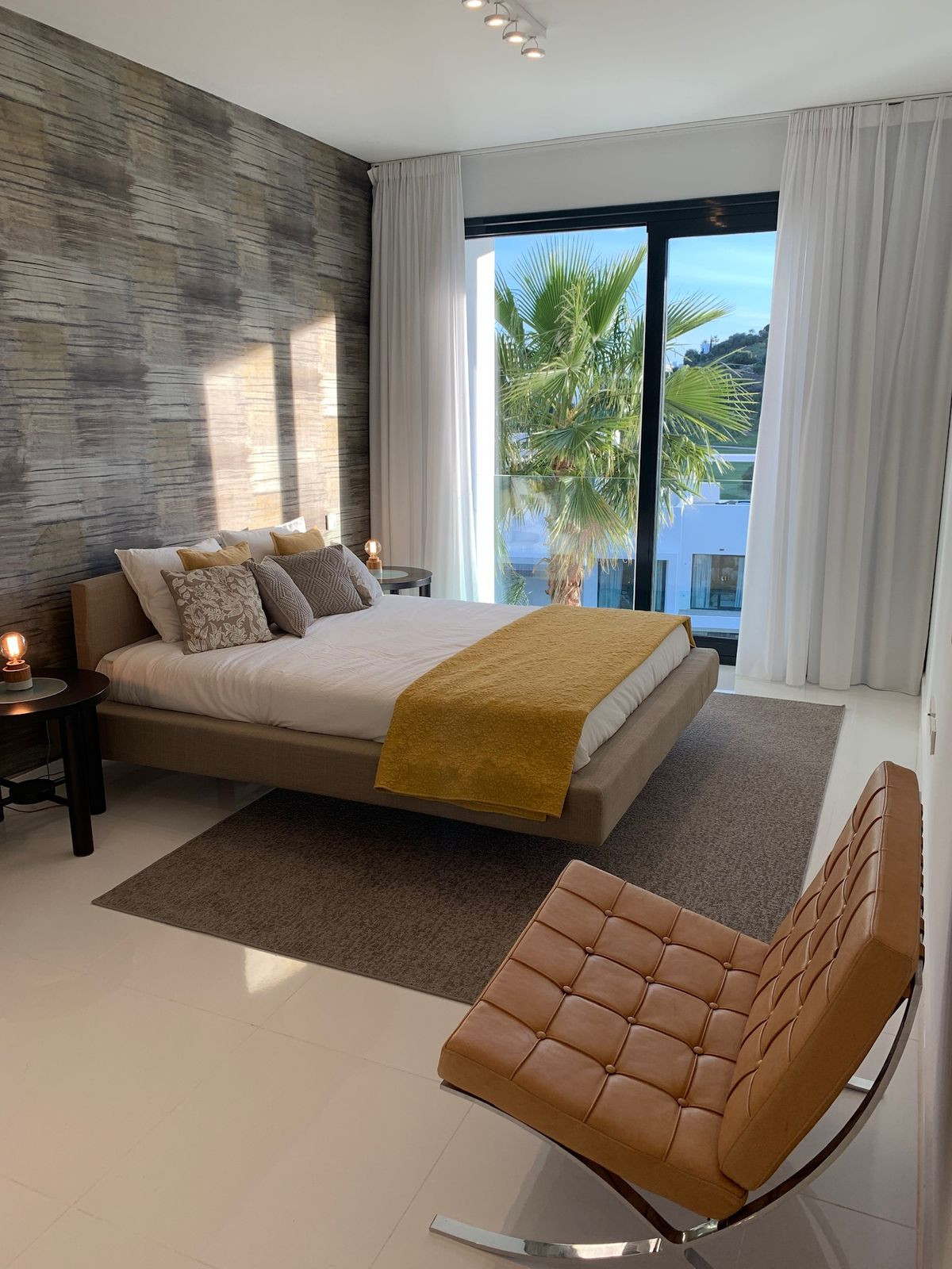 Beliggende for enden af en privat blind vej, omgivet af nybyggede moderne villaer i den eksklusive lukkede urbanisation La Alquería, garanterer denne bolig fuldstændig privatliv og ro – og alligevel kun få minutter fra områdets mest eftertragtede attraktioner: