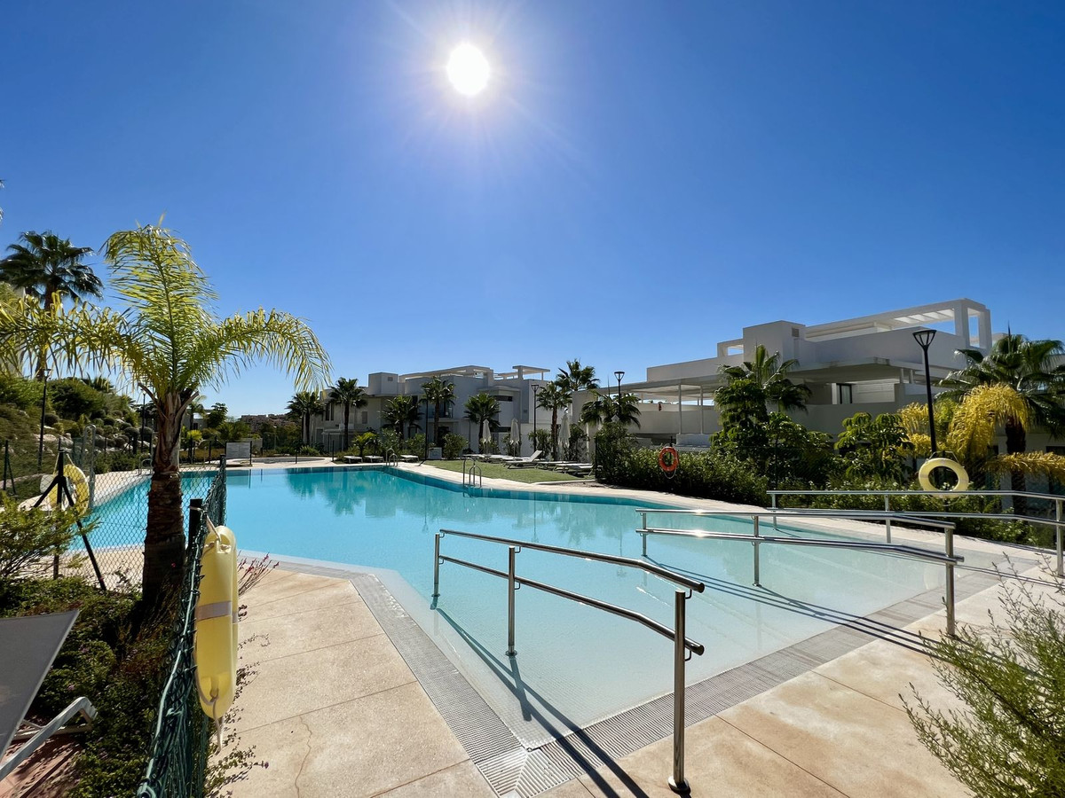 Oplev denne fantastiske moderne lejlighed på mellemste etage, et sandt mesterværk af avantgarde-arkitektur af den berømte Villarroel-Torrico, de visionære arkitekter bag Puente Romano Marbella. Perfekt beliggende på første række ved Atalaya Golfs 36-hullers golfbane tilbyder denne sydvendte bolig en betagende panoramaudsigt over de velplejede fairways, frodige haver og et glimt af det glitrende Middelhav.