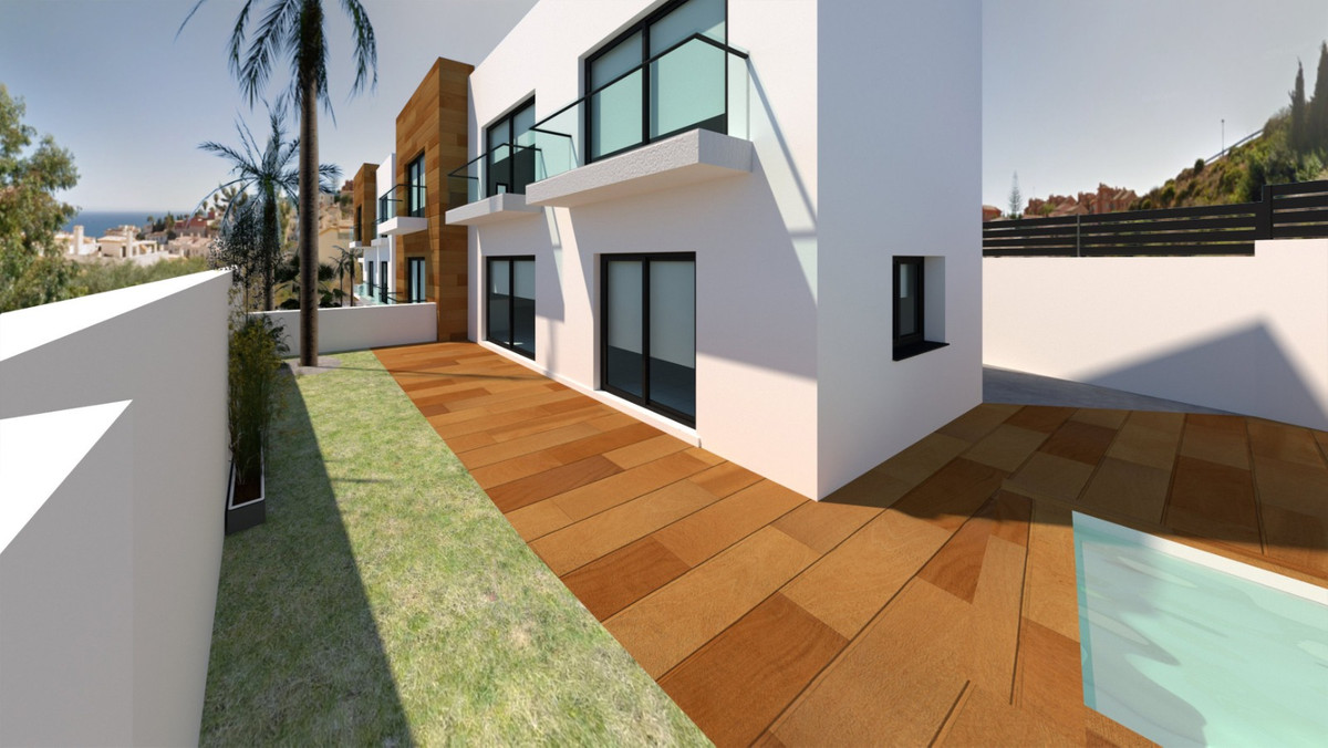 Exclusive in TORREBLANCA, FUENGIROLA. Promotion of semi-detached houses with private pool, garden and basement. 174m2 homes distributed over two floors plus a basement in which two more bedrooms can be built if the client needs it, since it has 44m2 and windows to the garden. Main floor living room, kitchen, toilet and terrace. Upstairs three bedrooms, one of them a suite and a full bathroom to share and a terrace.