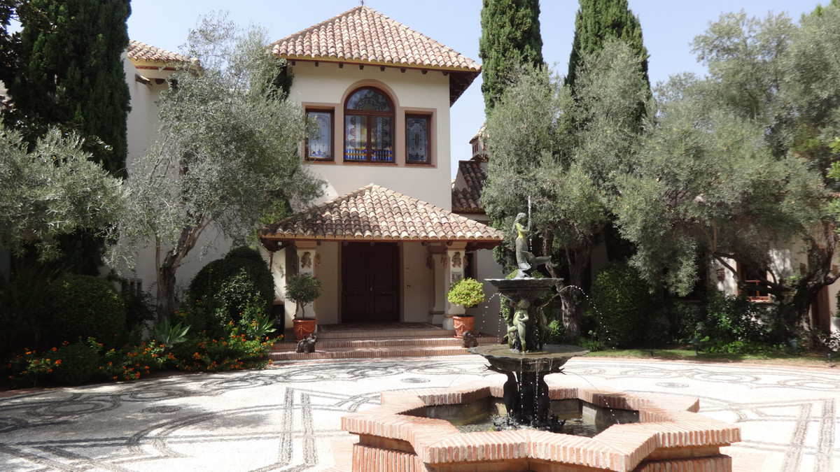 The main house, a splendid Spanish villa, climbs behind the pompous natural stone-built driveway with fountains. Master Bedroom with luxurious marble bathroom and terrace with distant views, 4 further bedrooms with terraces and marble bathrooms and 2 children's rooms with shared bathroom. Spacious living spaces with charming and cosy furnishings completes the Spanish flair. In total, the house also has 6 terraces, kitchen, 2 garages for 4 cars, a spacious and fully equipped fitness center and a beautiful pool landscape with 2 differently tempered pools and a whirlpool. The beautiful green garden leads to a built in the hillside glass studio / yoga / meditation house and a children's playground.