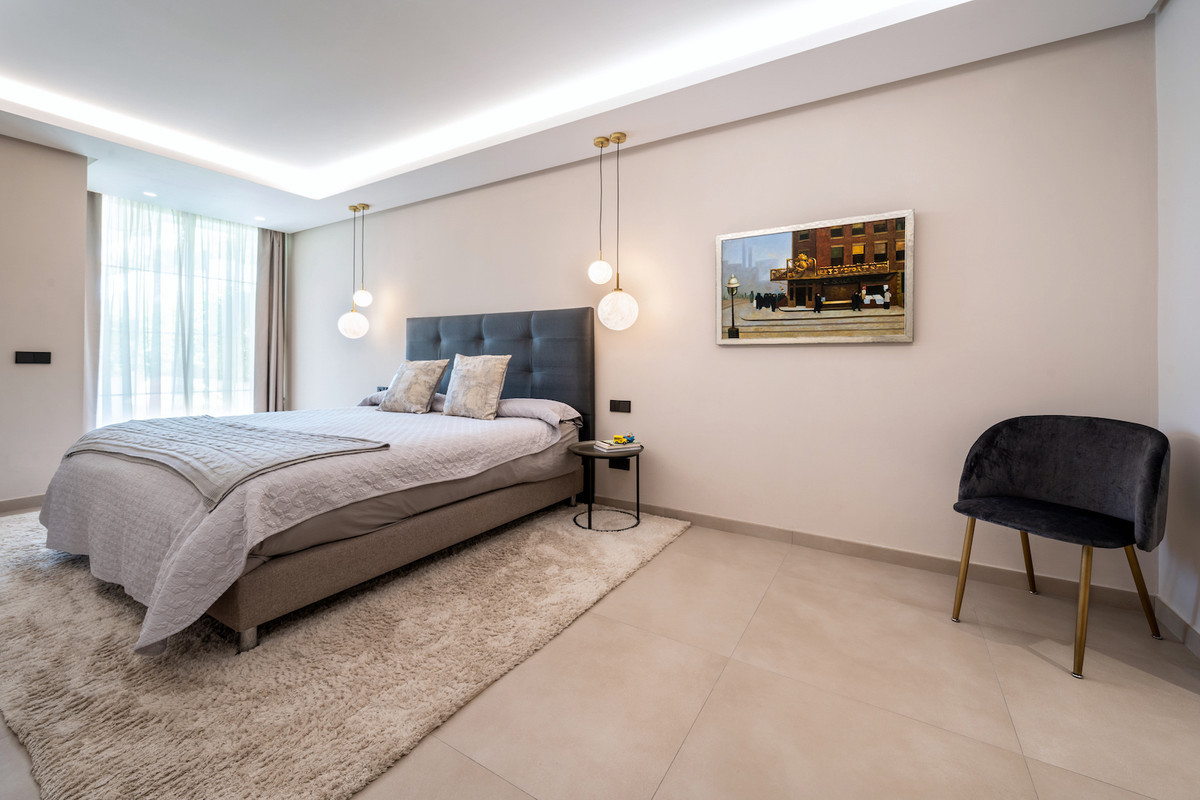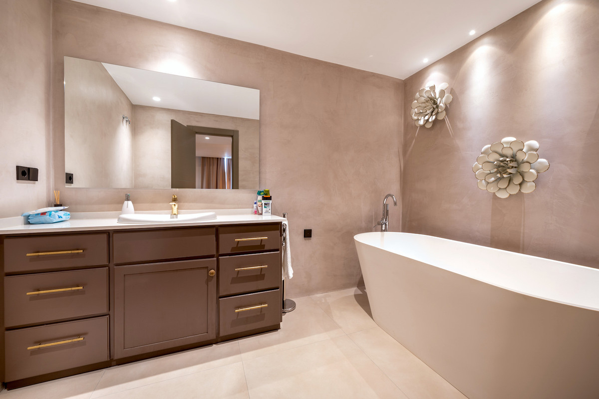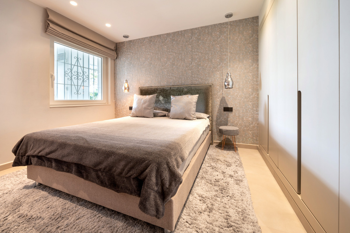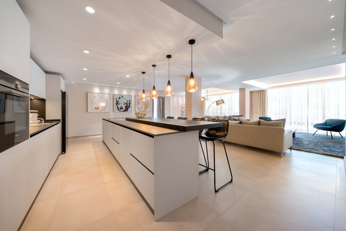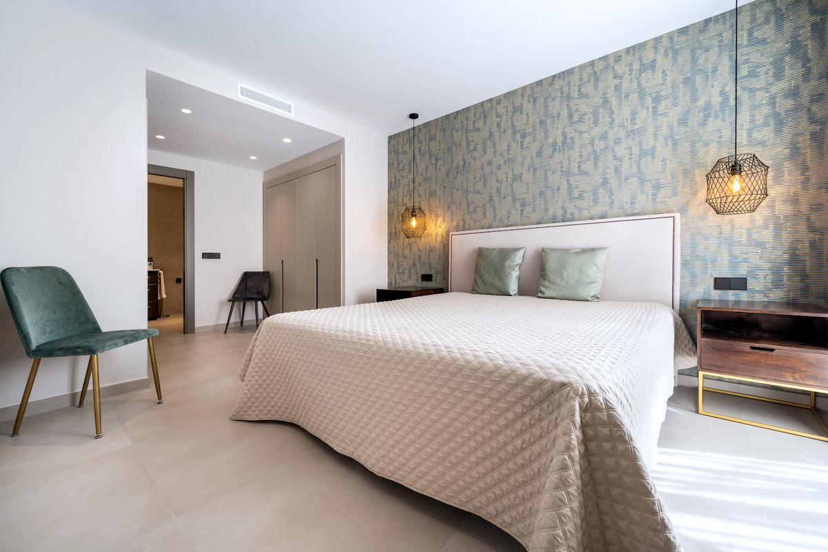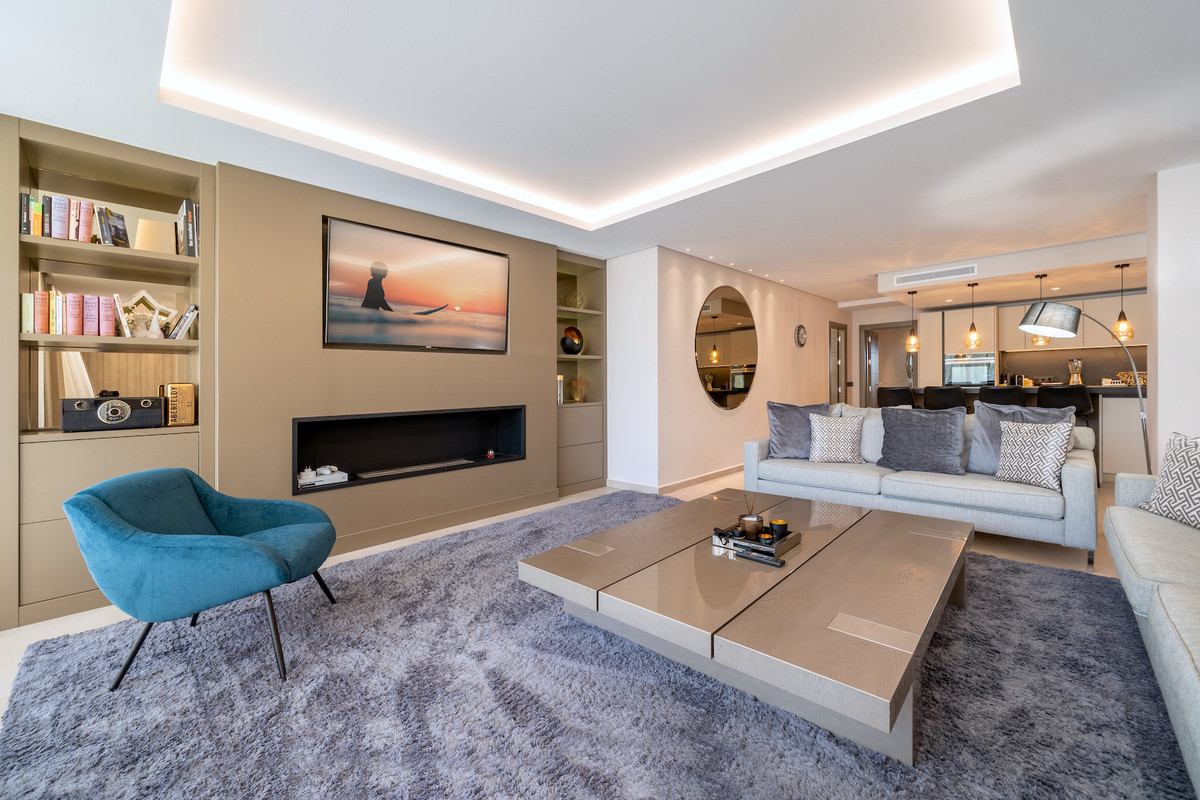Amazing beachfront and fully furnished ground floor apartment offering a very spacious accommodation and located in the development Andalucia Beach on the New Golden Mile. Two apartments have been joined together to create this superb 4 bedroom family apartment. This fully renovated apartment features a new kitchen, bathrooms, electrics, plumbing and flooring with underfloor heating. Fabric wallpaper, feature walls and attractive lighting make the apartment both cosy and luxurious. The property consists of a large entrance hall, an ample lounge / dining room, an open plan fully fitted kitchen, 2 guest bedrooms with en-suite.