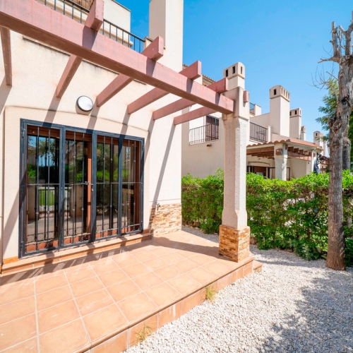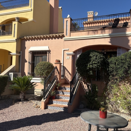 This is a 2 bedroom 2 bathroom bungalow nicely located close on the golf course with a good selection of bars and restaurants literally around the corner. The property benefits from having great views from the private solarium and backs out onto a secluded courtyard with a lovely communal swimming pool, the feature of this secure gated complex.