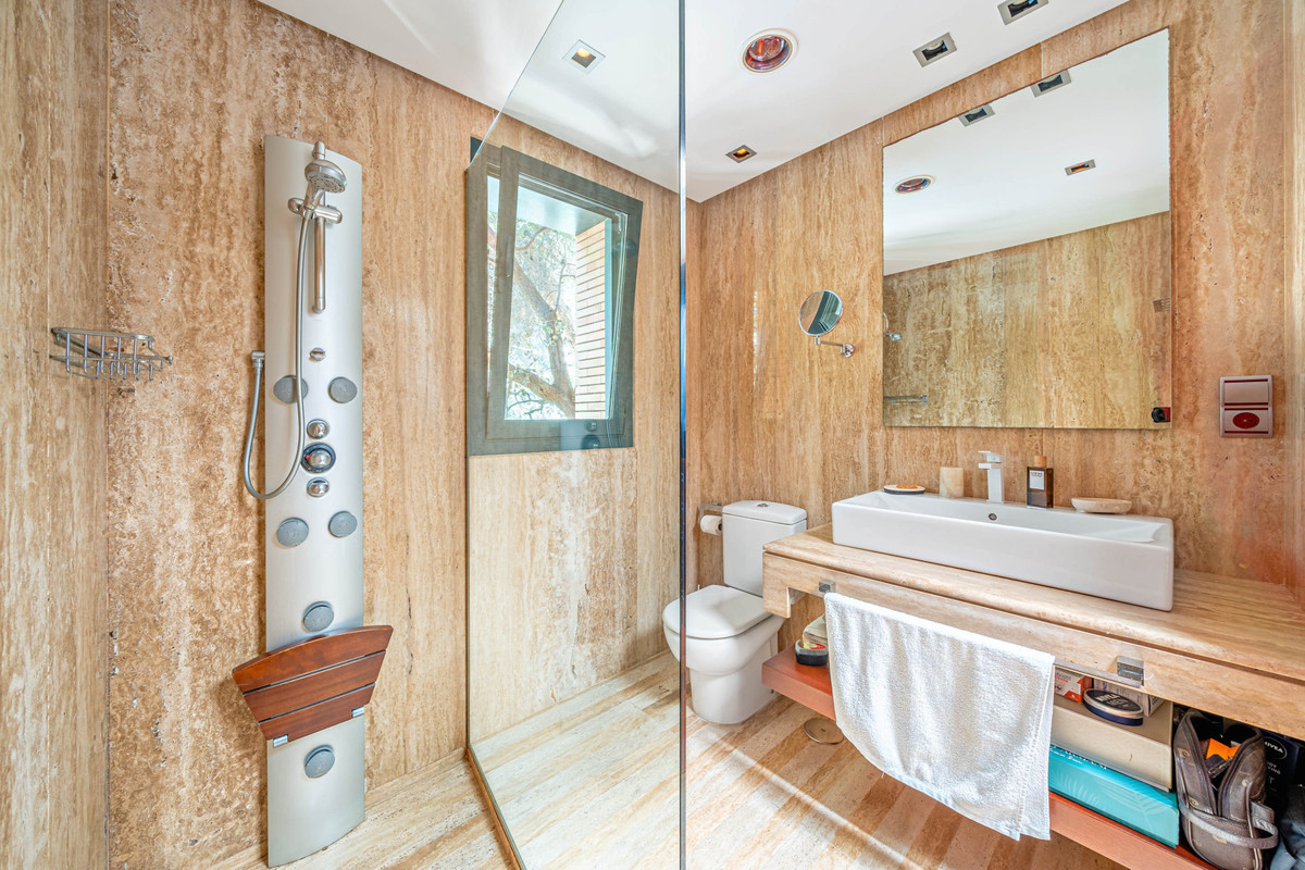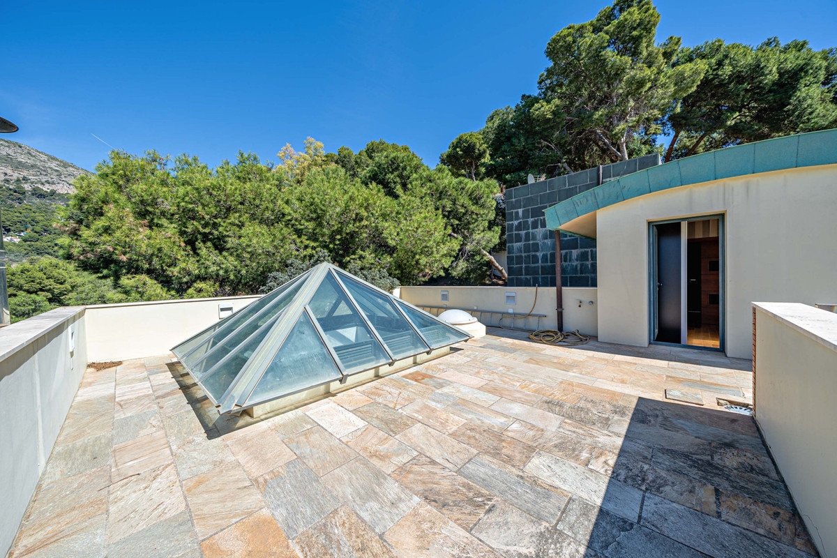 The villa is surrounded by beautiful gardens and pine trees. Outside it features swimming pool, barbecue area and a complete bathroom.