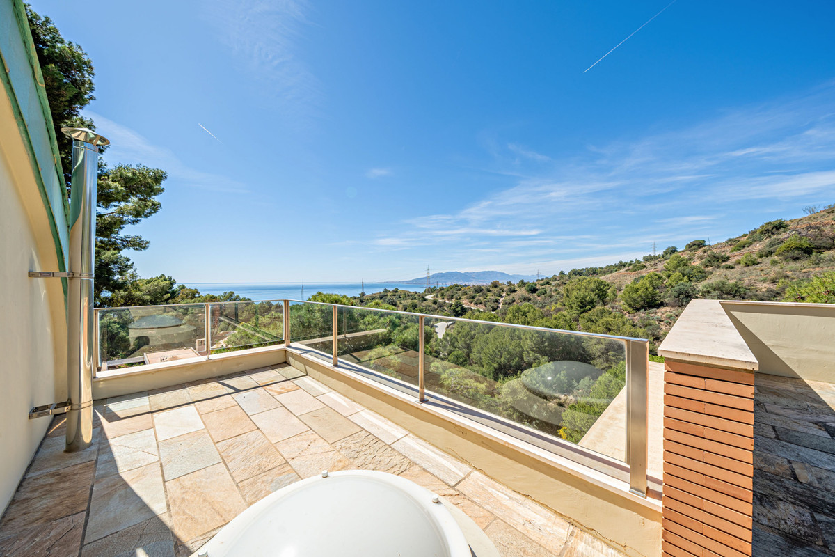 Incredible designer villa in Eastern Malaga offering dazzling views of the sea and the coast, situated in a tranquil cul-de-sac within an exclusive urbanization with private security.