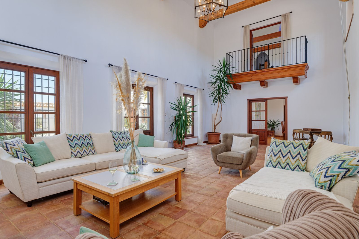 Upstairs, four sumptuous bedrooms, each with their own en-suite bathrooms, provide an intimate retreat, with breathtaking views of the vineyard below. Every room is appointed with high-end finishes, blending traditional Andalusian charm with modern luxury.