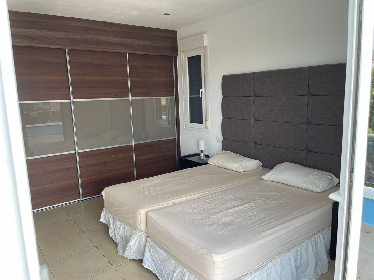 There is a ground floor shower room with twin sinks, bidet and WC. A second ground floor double bedroom has patio doors to the front with views of the front garden, golf course and mountains in the distance. Air conditioning units are installed in both ground floor bedrooms and two in the lounge.