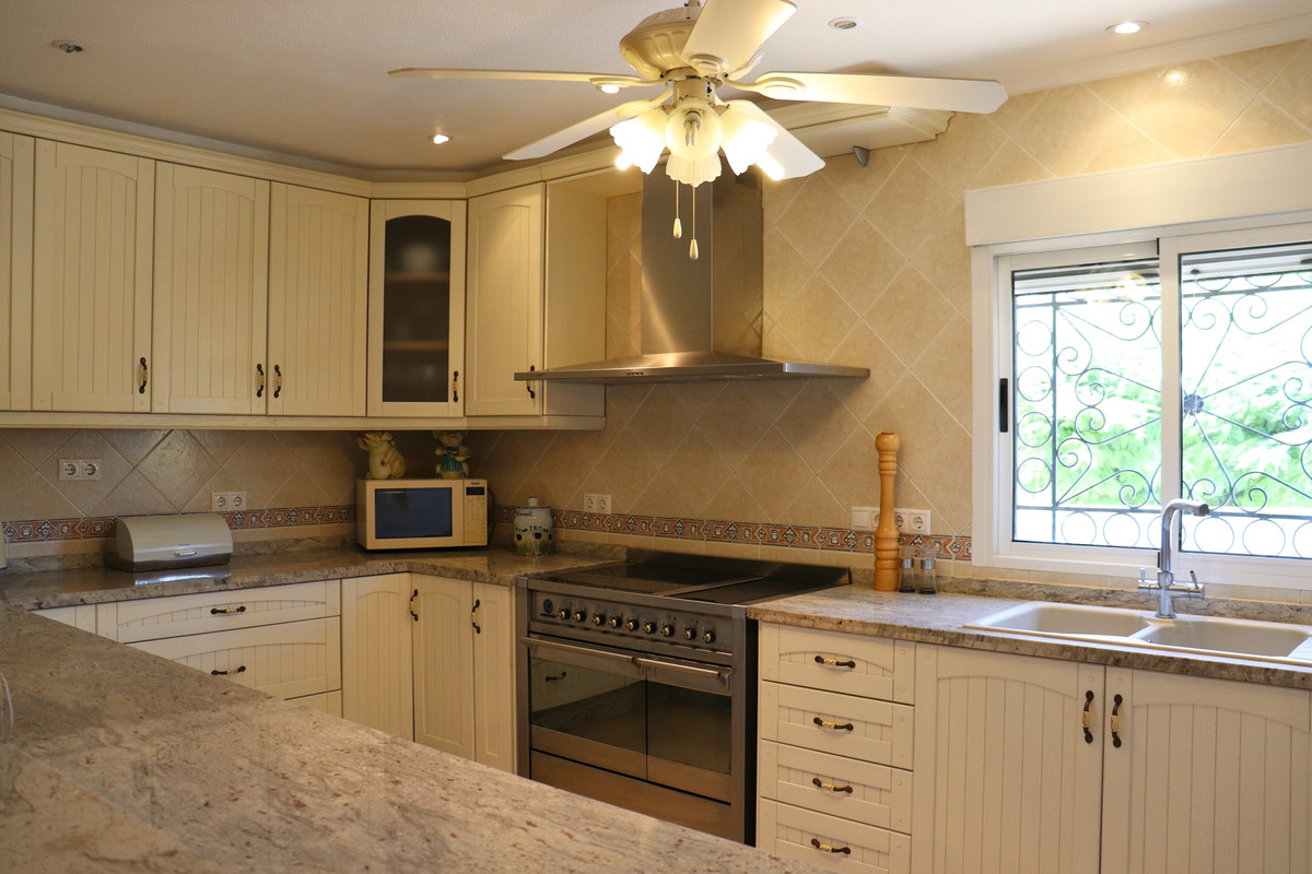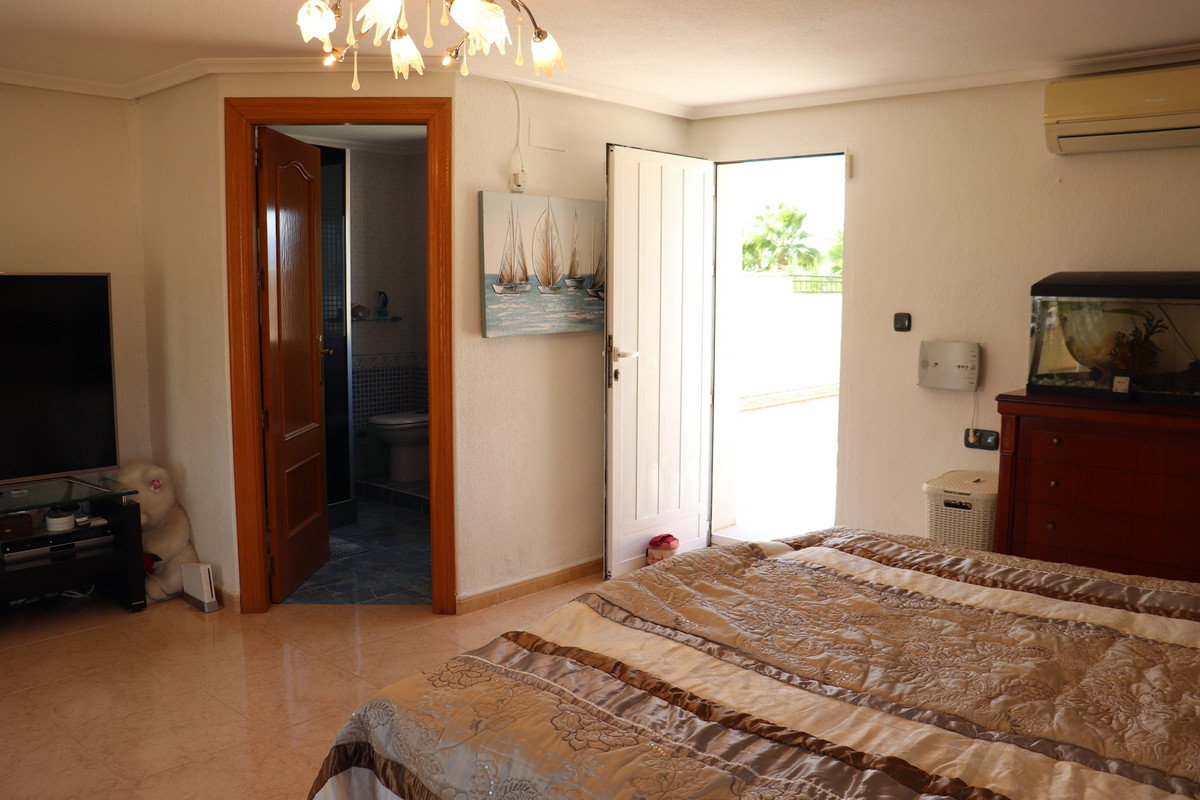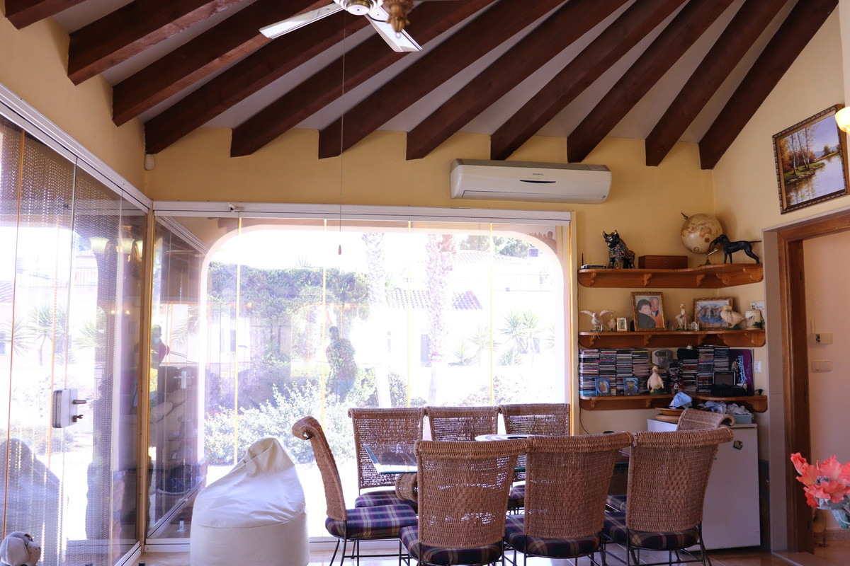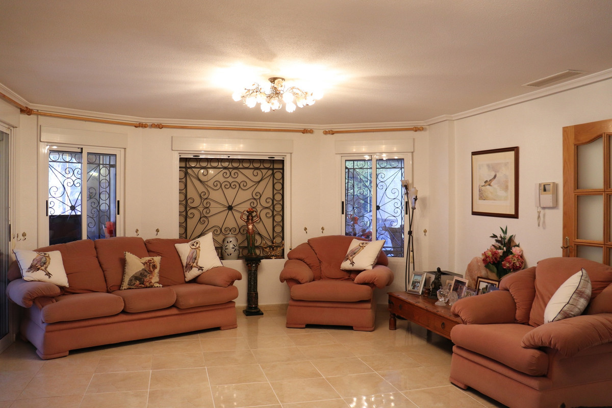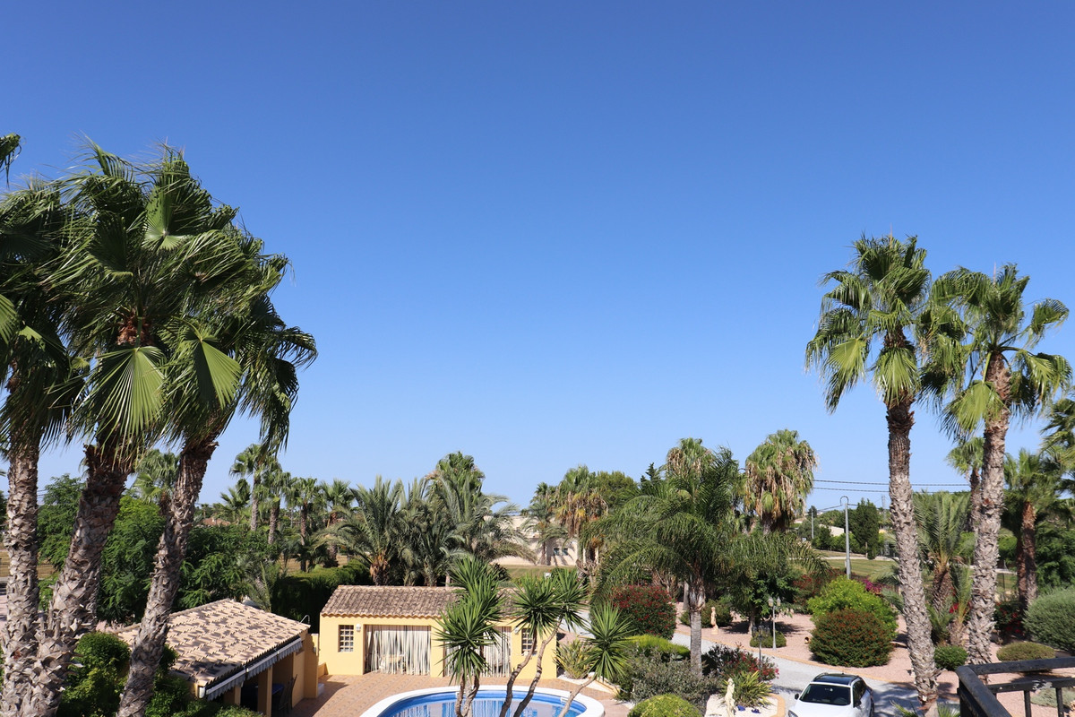 We are very pleased to offer this amazing property in Catral outskirts. This  stunning six bedroom country property in Catral is located in the outskirts countryside just within a five minutes drive of all the amenities, shops, bars, restaurants, etc… When you enter this impressive very wel maintained property you walk in the glazed in terrace area, currently used as a 2nd lounge overlooking the pool area with a feature fireplace and amazing rustic ceiling with wooden beams. This area leading in to the main lounge/dining room which is a very spacious and homely area. The stylish open plan fully fitted kitchen looks into this living area. There are 4 double bedrooms, 2 of which have en suite shower rooms & the master with access out to a private solarium, where there are stunning garden-, country- and mountain views; and there is a family shower room. This master bedrooms has a curved wall which gives this bedroom a luxurious feeling. With this spectacularly spacious property are two one bed, one shower room guests, each with there own fully fitted kitchen & living areas… Outside is a well landscaped garden a private pool, outside kitchen & toilet, parking, orchard to the rear & many extras too!