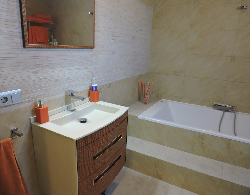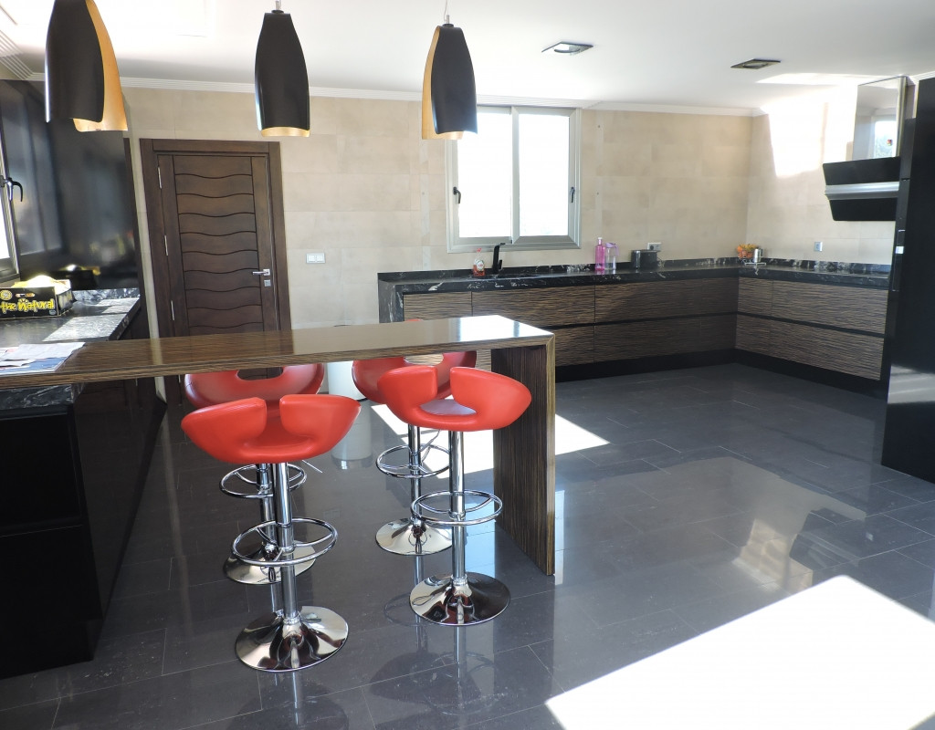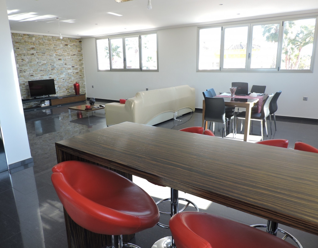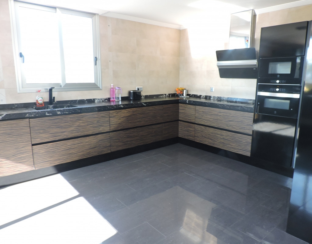 The property has 4 double bedrooms and 3 bathrooms. The massive living room is bright and modern and is no less then 66 m2, the American style kitchen is also very large with 30M2.