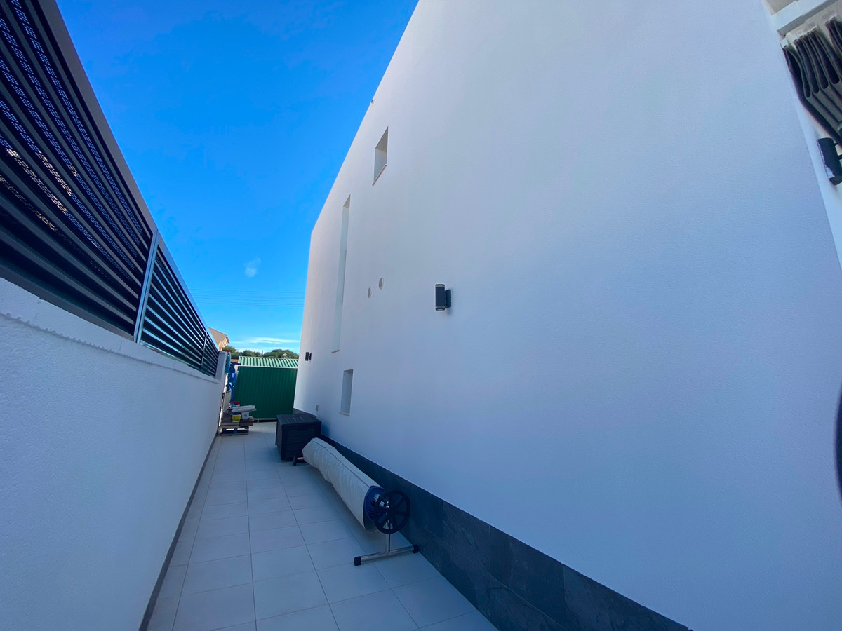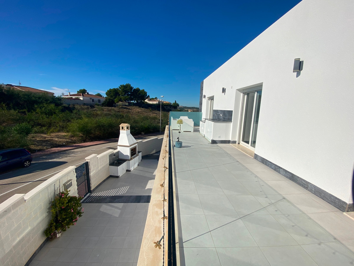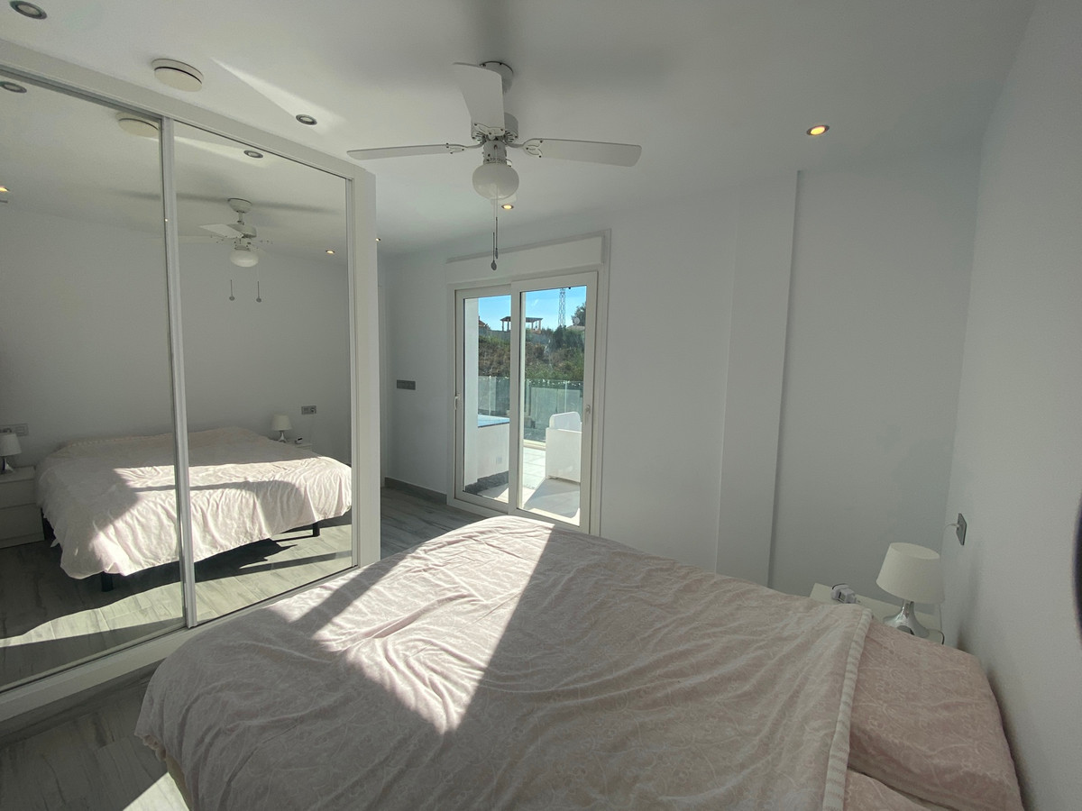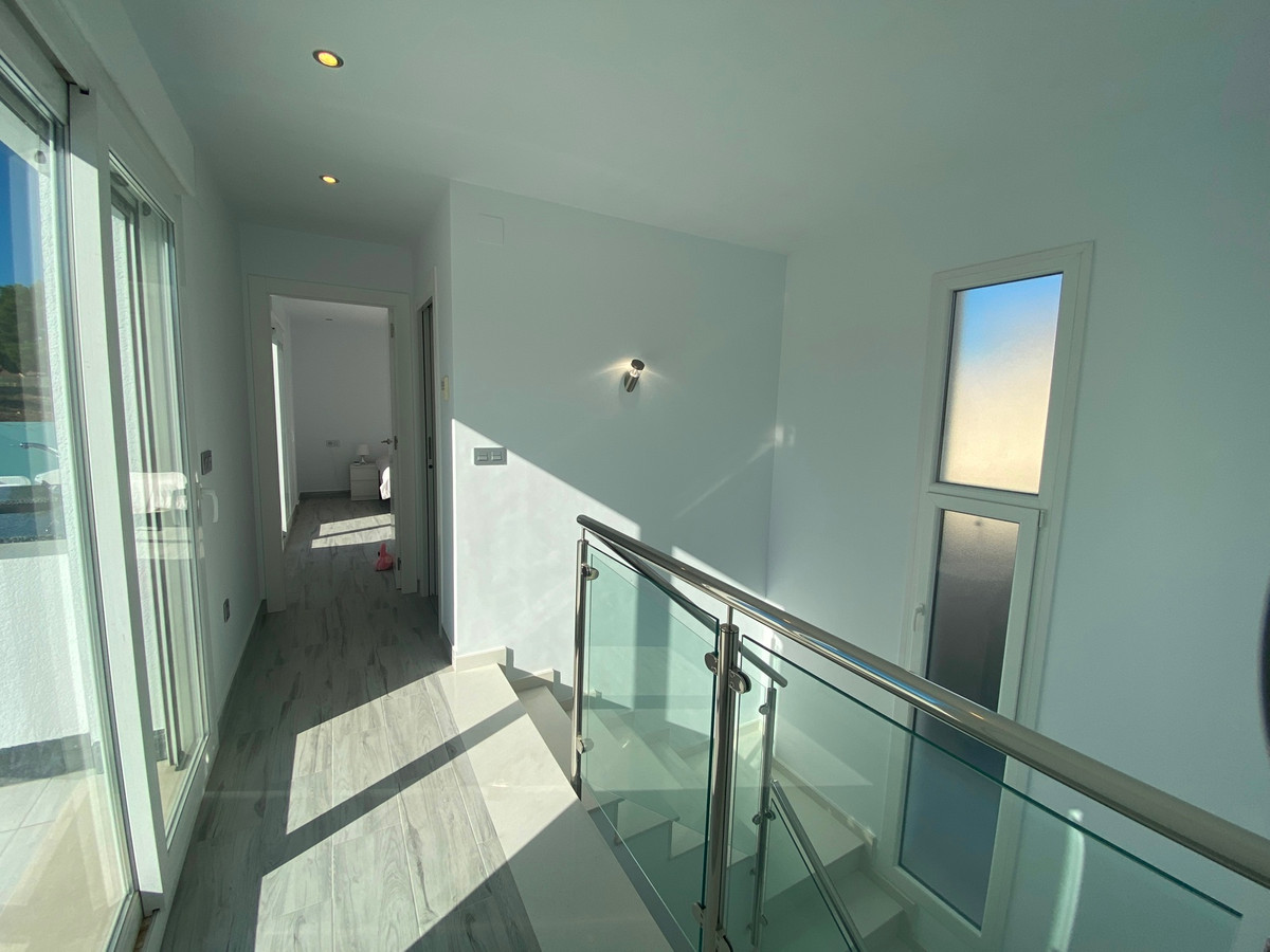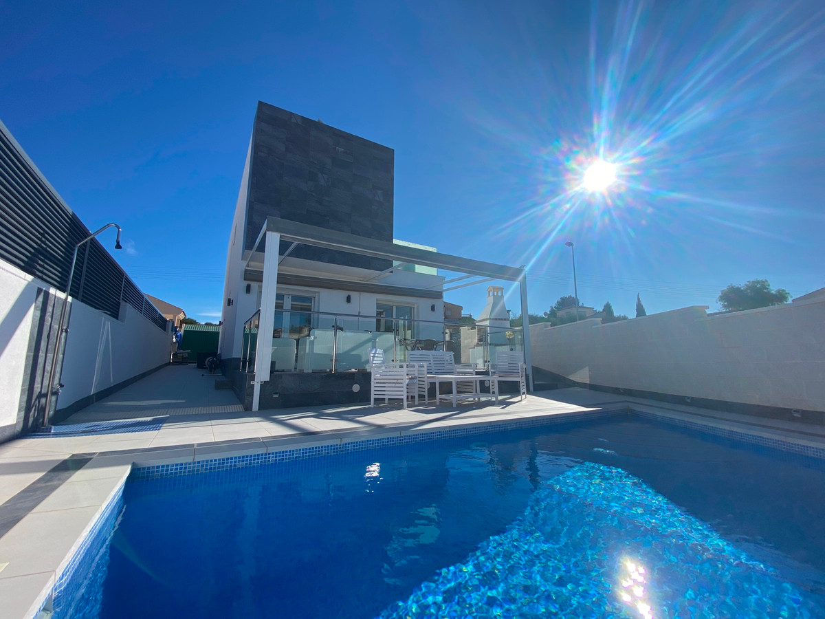 With enthusiasm we present you this beautiful luxury villa located in Quesada. To the left of the entrance is the outdoor barbecue, followed by the swimming pool with a large terrace with a view. To the right of the entrance is the private driveway with storage where the batteries for the solar panels of the house are housed. The house has 3 bedrooms and 2 bathrooms. Upon entering you enter the open plan living and dining area. Nicely equipped open kitchen with all mod cons. On the ground floor there is 1 bedroom and 1 bathroom. A beautiful light staircase takes you to the first floor where there are 2 bedrooms and 1 bathroom. All bedrooms have large sliding doors to which you can go directly outside. There is an open balcony / roof solarium with outdoor kitchen where you can enjoy the sun. There is a heated swimming pool, 8 solar panels and this property has been designed and installed with the highest quality materials and innovative systems such as air filtration, underfloor heating and much more! The house is sold fully furnished.