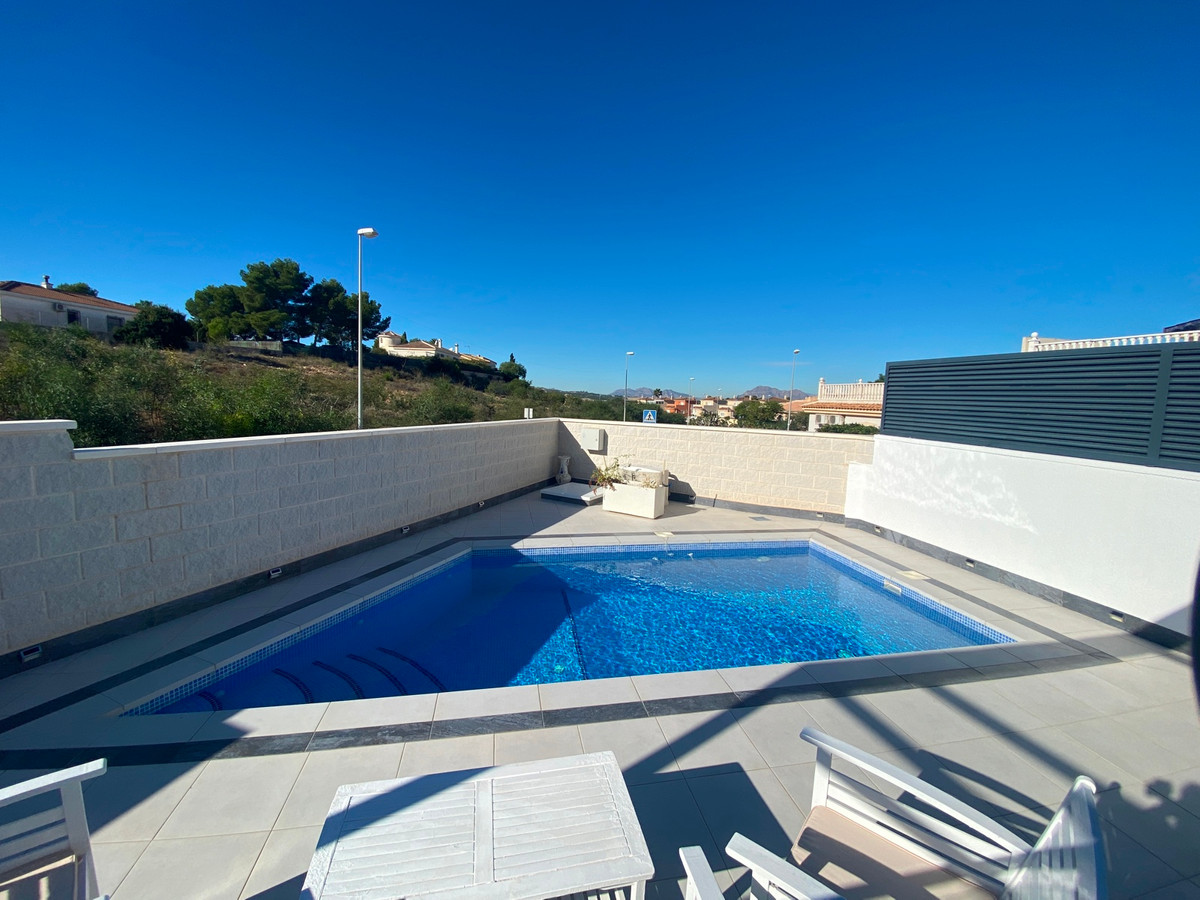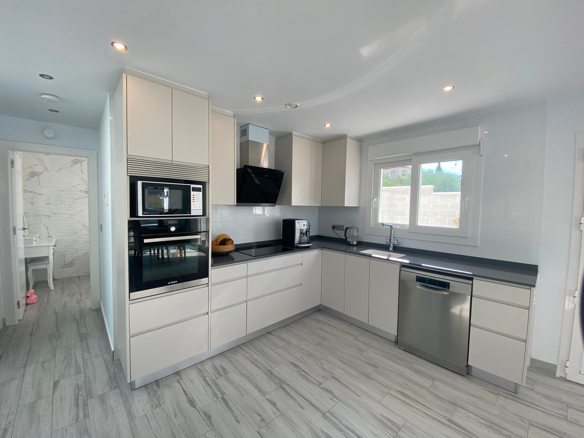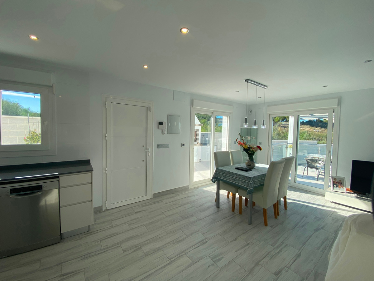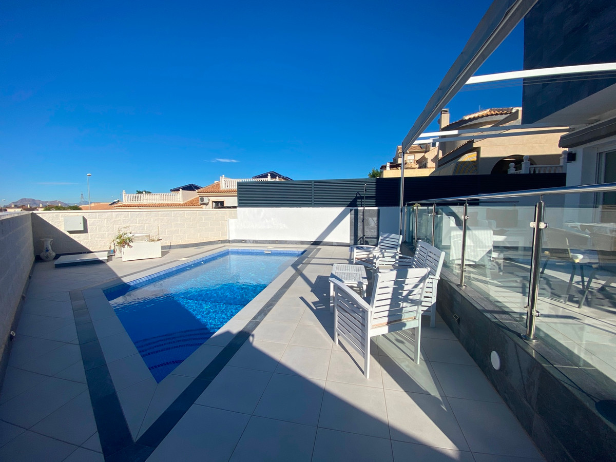 With enthusiasm we present you this beautiful luxury villa located in Quesada. To the left of the entrance is the outdoor barbecue, followed by the swimming pool with a large terrace with a view. To the right of the entrance is the private driveway with storage where the batteries for the solar panels of the house are housed. The house has 3 bedrooms and 2 bathrooms. Upon entering you enter the open plan living and dining area. Nicely equipped open kitchen with all mod cons. On the ground floor there is 1 bedroom and 1 bathroom. A beautiful light staircase takes you to the first floor where there are 2 bedrooms and 1 bathroom. All bedrooms have large sliding doors to which you can go directly outside. There is an open balcony / roof solarium with outdoor kitchen where you can enjoy the sun. There is a heated swimming pool, 8 solar panels and this property has been designed and installed with the highest quality materials and innovative systems such as air filtration, underfloor heating and much more! The house is sold fully furnished.