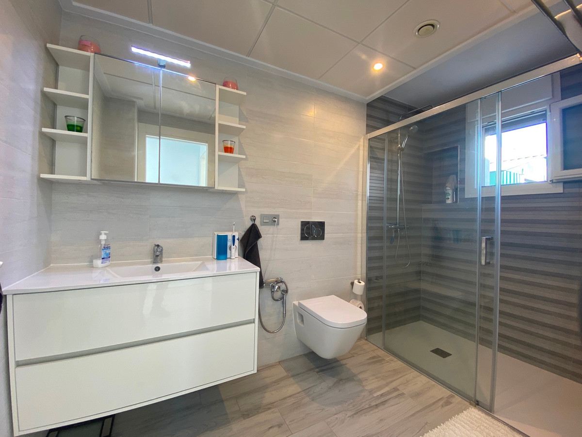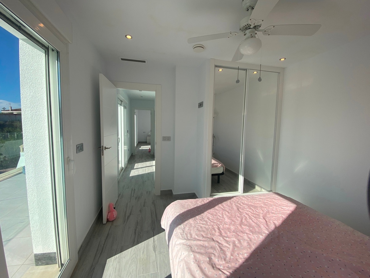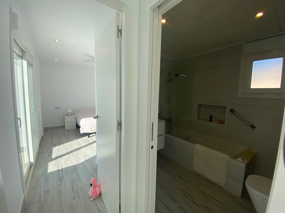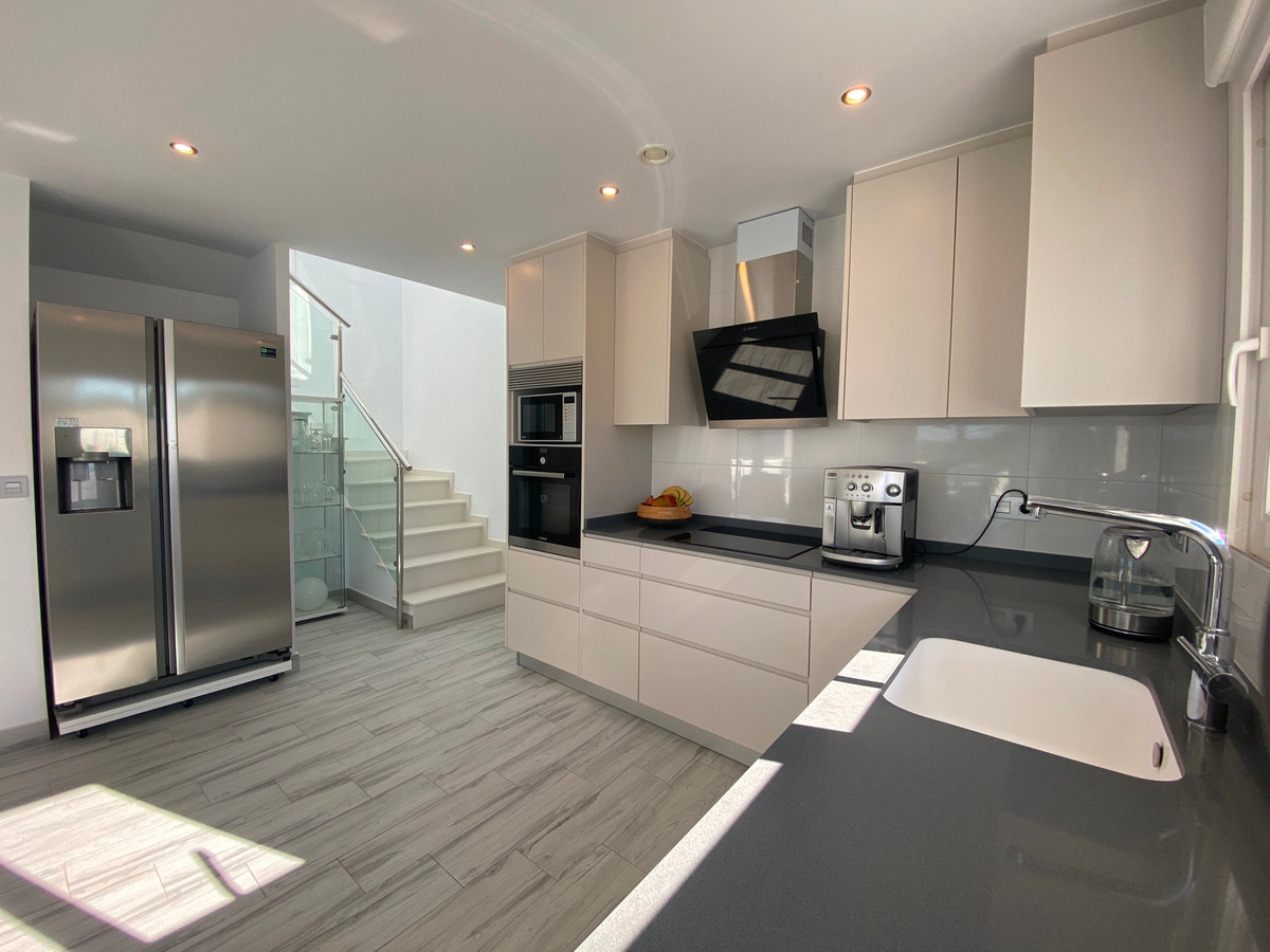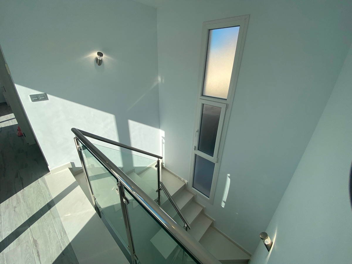 With enthusiasm we present you this beautiful luxury villa located in Quesada. To the left of the entrance is the outdoor barbecue, followed by the swimming pool with a large terrace with a view. To the right of the entrance is the private driveway with storage where the batteries for the solar panels of the house are housed. The house has 3 bedrooms and 2 bathrooms. Upon entering you enter the open plan living and dining area. Nicely equipped open kitchen with all mod cons. On the ground floor there is 1 bedroom and 1 bathroom. A beautiful light staircase takes you to the first floor where there are 2 bedrooms and 1 bathroom. All bedrooms have large sliding doors to which you can go directly outside. There is an open balcony / roof solarium with outdoor kitchen where you can enjoy the sun. There is a heated swimming pool, 8 solar panels and this property has been designed and installed with the highest quality materials and innovative systems such as air filtration, underfloor heating and much more! The house is sold fully furnished.