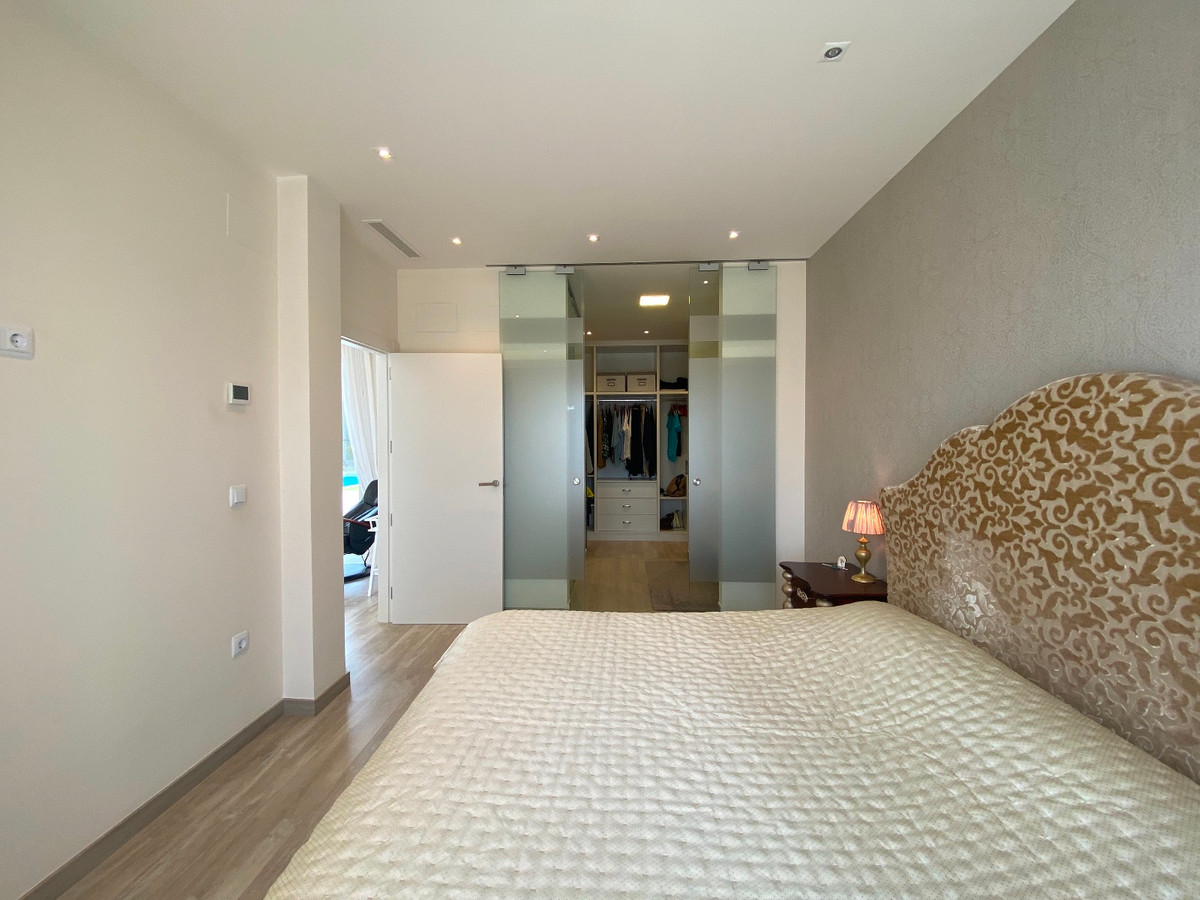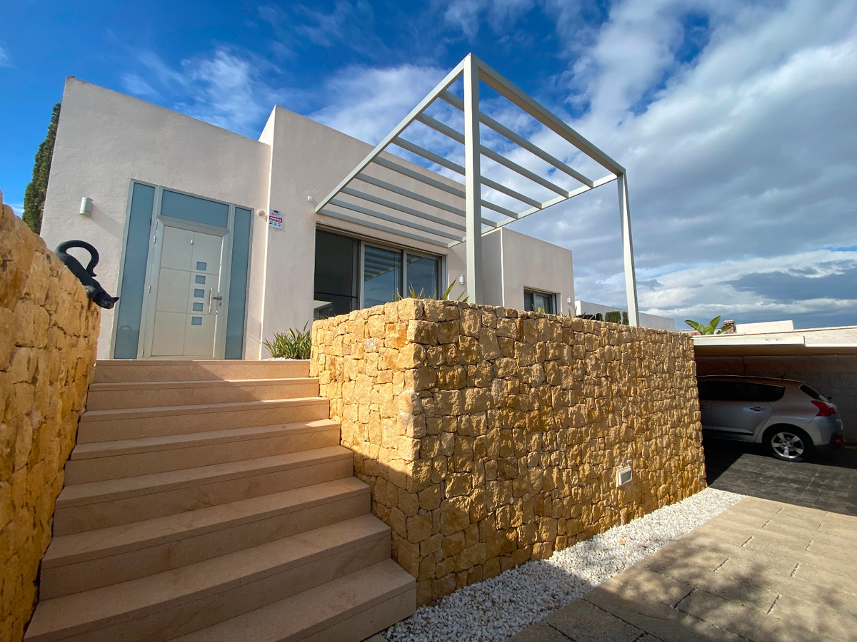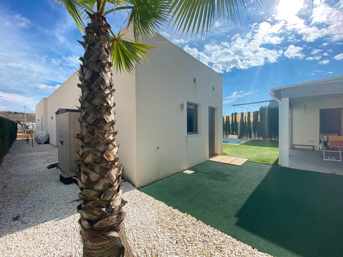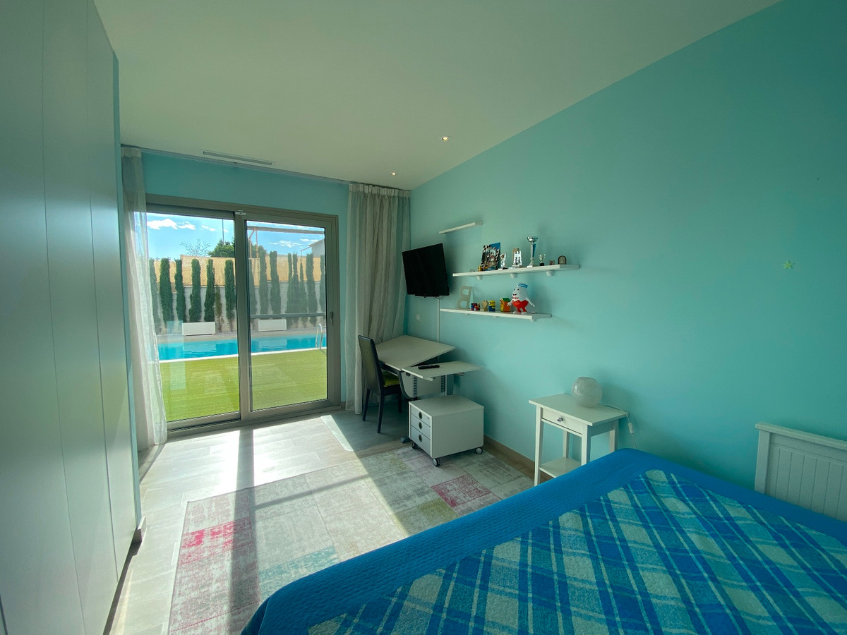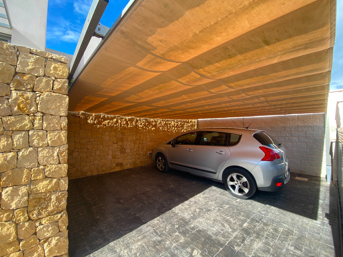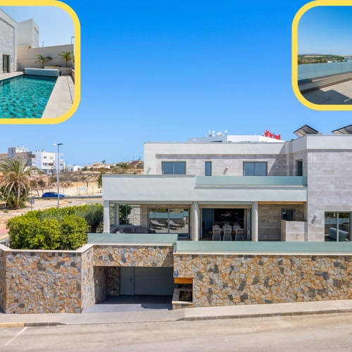 This beautiful modern villa is located in Benijofar. Within walking distance of all amenities, Cañada Marsa Natural Park, close to Agua Park Quesada and La Marquesa Golf in Rojales. The villa was built in 2006 and is on one level. Outside there is a (heated) private swimming pool, low-maintenance garden, covered parking for two cars, several places where you can enjoy the sun and a large closed space that could be turned into a fourth bedroom or an office space. The house has a large bright living and dining room with fireplace. A sleek open kitchen with utility room. There are 3 double bedrooms, all with fitted wardrobes. The 2 bathrooms have underfloor heating, heated towel rails and 1 has a bath. The master bedroom has an en-suite bathroom and a walk-in closet. Ducted air conditioning hot/cold with air freshener. This villa is sold fully furnished. Benijófar is a typical Spanish village with a variety of services such as bakeries, supermarkets, pharmacies, medical center, mini golf, shopping centers, bars and restaurants. Located approximately 30 minutes from Alicante Airport, 15 minutes from the beaches in Guardamar. La Zenia boulevard and Habaneras shopping centers are also within easy reach.