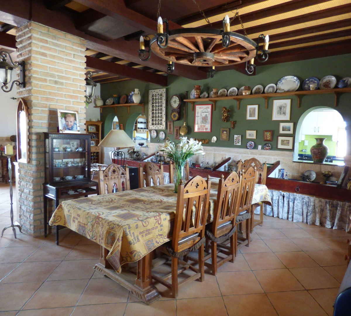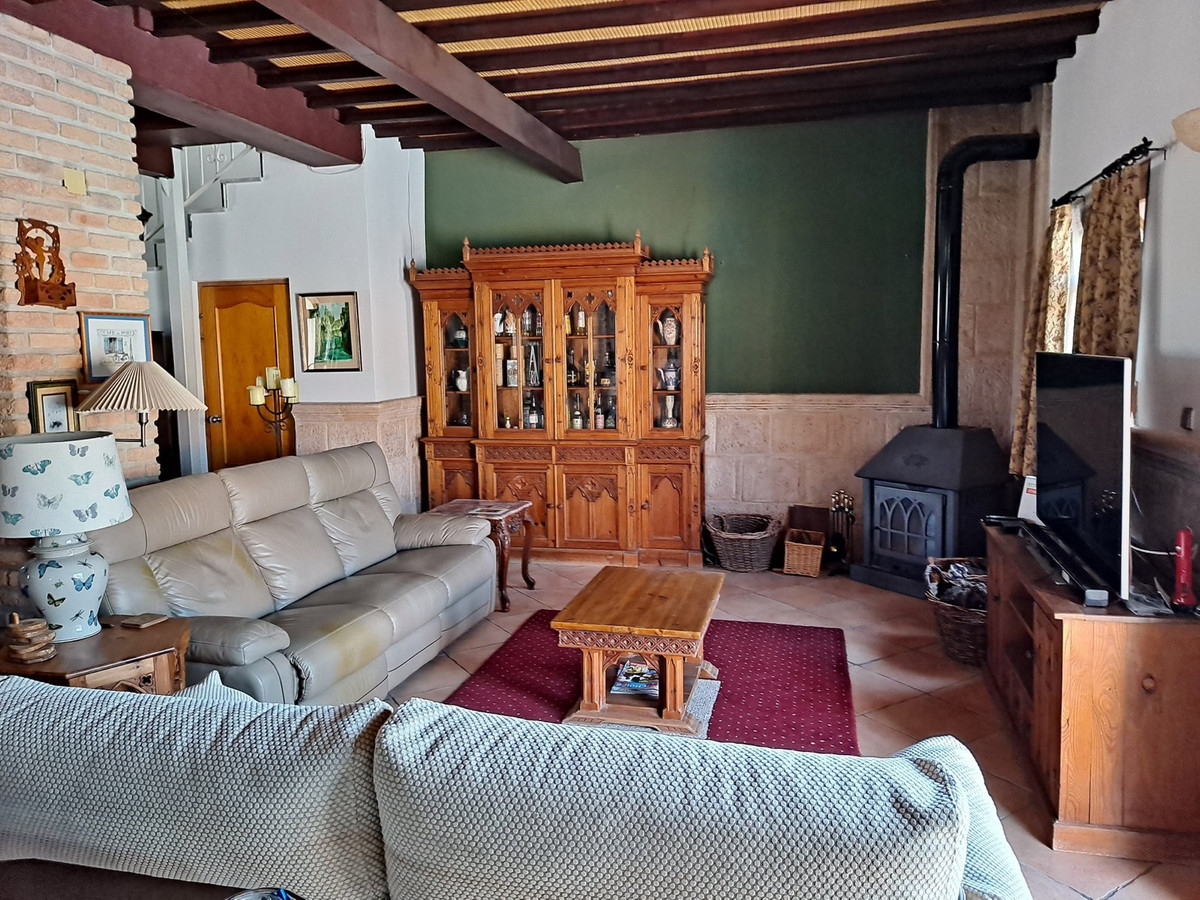 Villa 1 main house has a large lounge with dining area and exposed beams and wood burning stove, 3 bedrooms (master bedroom with large dressing room, 3 bathrooms, modern kitchen with dining area.