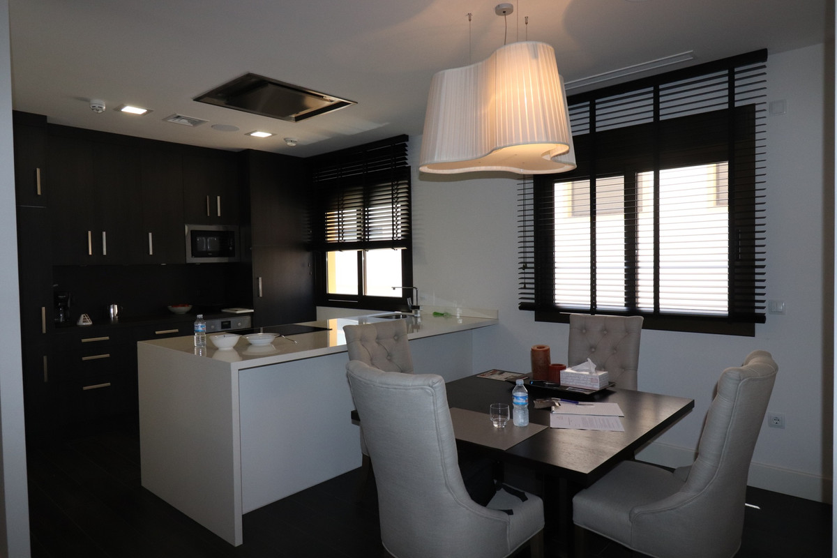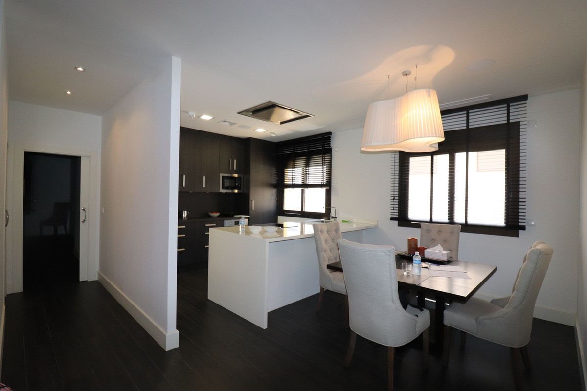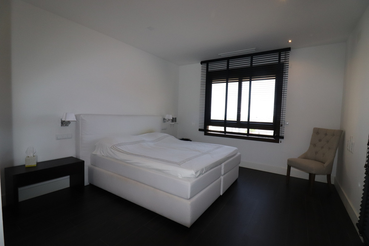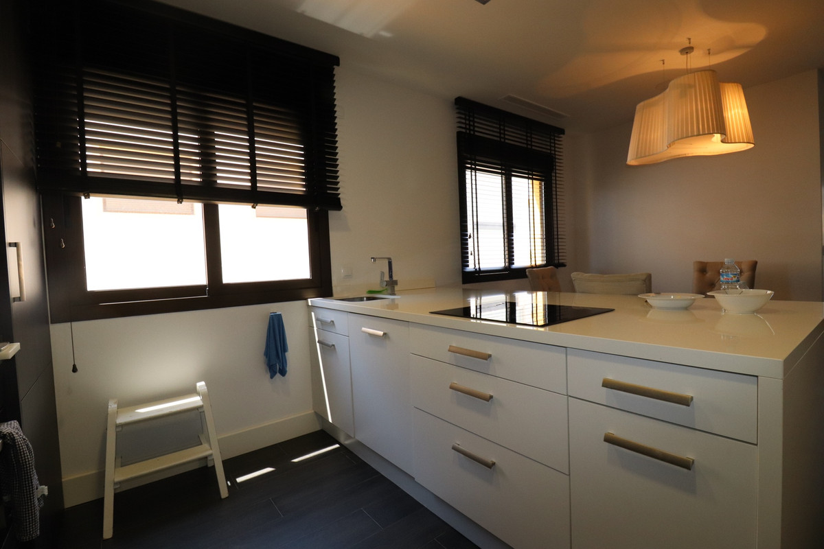 With enthusiasm we present you this beautiful penthouse in Guardamar with fantastic sea viewin the luxurious complex Marjal Beach. This very well maintained residential complex has a beautifully landscaped garden with the communal swimming pool. The spacious apartment originally consists of two joined apartments, creating large spaces. The penthouse has 2 spacious bedrooms and a 3rd bedroom is possible. Both bedrooms have an en -suite bathroom with walk in closet. The quality has not been saved, which you notice when you view the apartment . The property has electric shutters throughout. The kitchen is fully equipped with all necessary appliances. There are 2 cozy terraces on both sides of the house and via an internal staircase we reach a spacious roof terrace with stunning sea views. The roof terrace offers a lot of privacy and the windows can all be opened. In the winter you can also spend a good time here because of the sliding windows on both sides of the very large roof terrace. In the kitchen there is a custom-made food lift so that drinks and snacks can be sent up via the kitchen. The roof terrace has luxury electric blinds and a Sonos music system, you can listen to music throughout the house. With the elevator you reach the 2 adjacent garage places with an associated storage room. The house is sold furnished. It's all about location and with this penthouse you make a good investment. Very suitable for permanent residence or holiday rental. The common areas have an outdoor pool, indoor pool, gym, sauna and terraces.