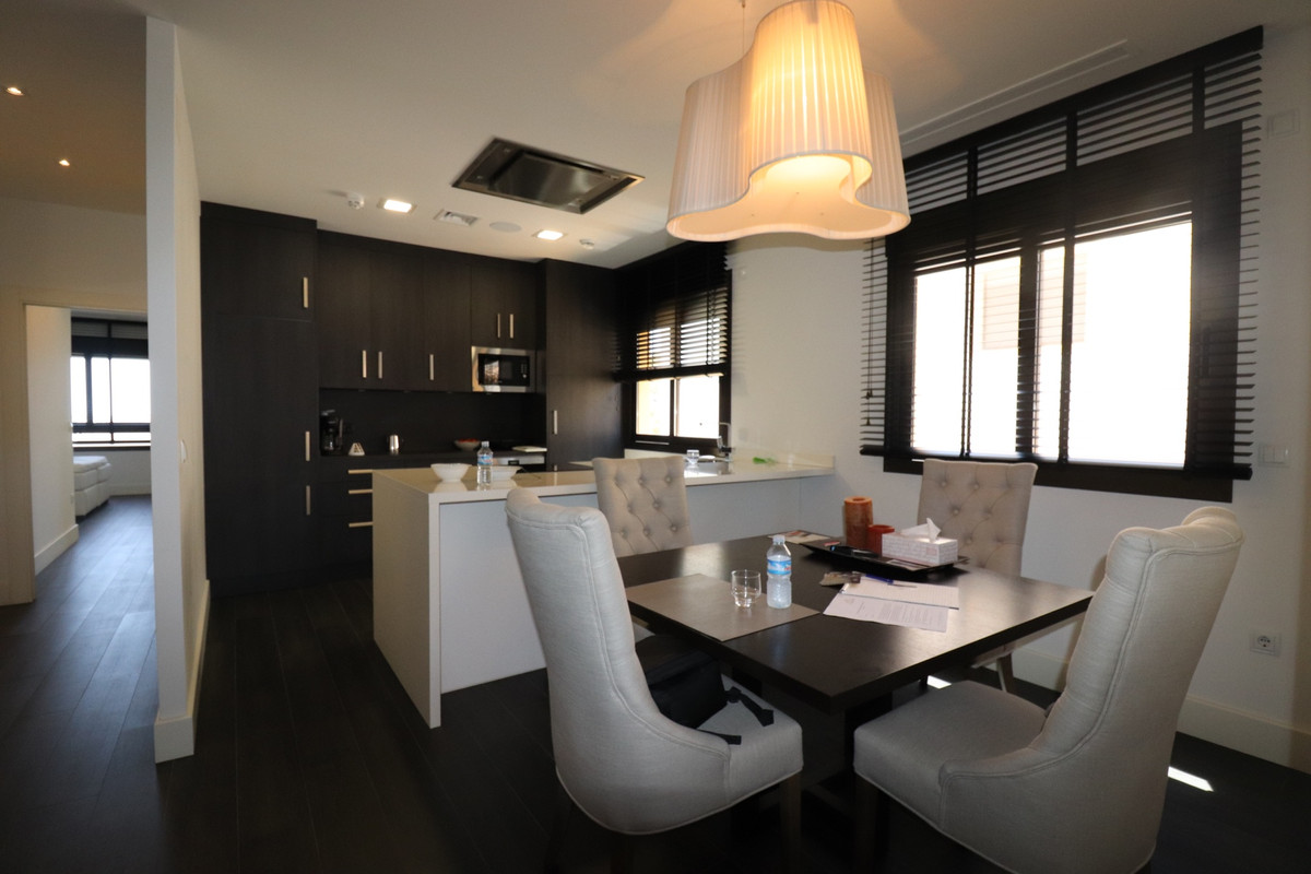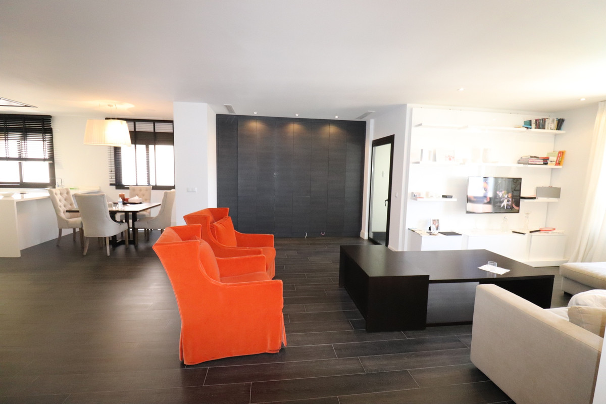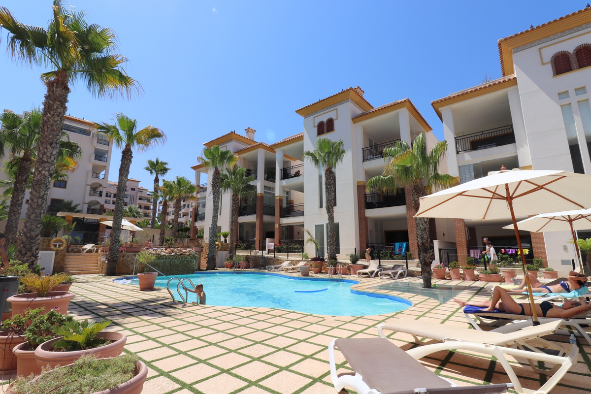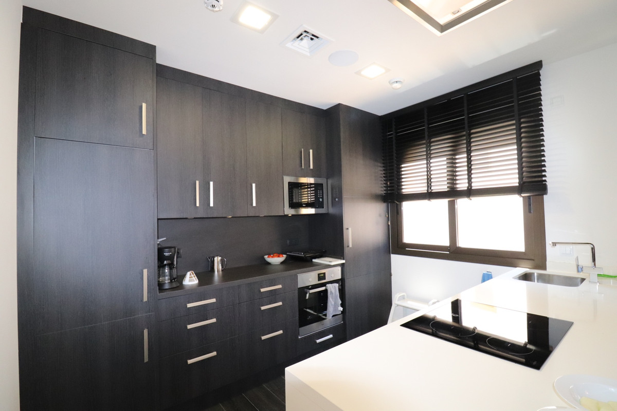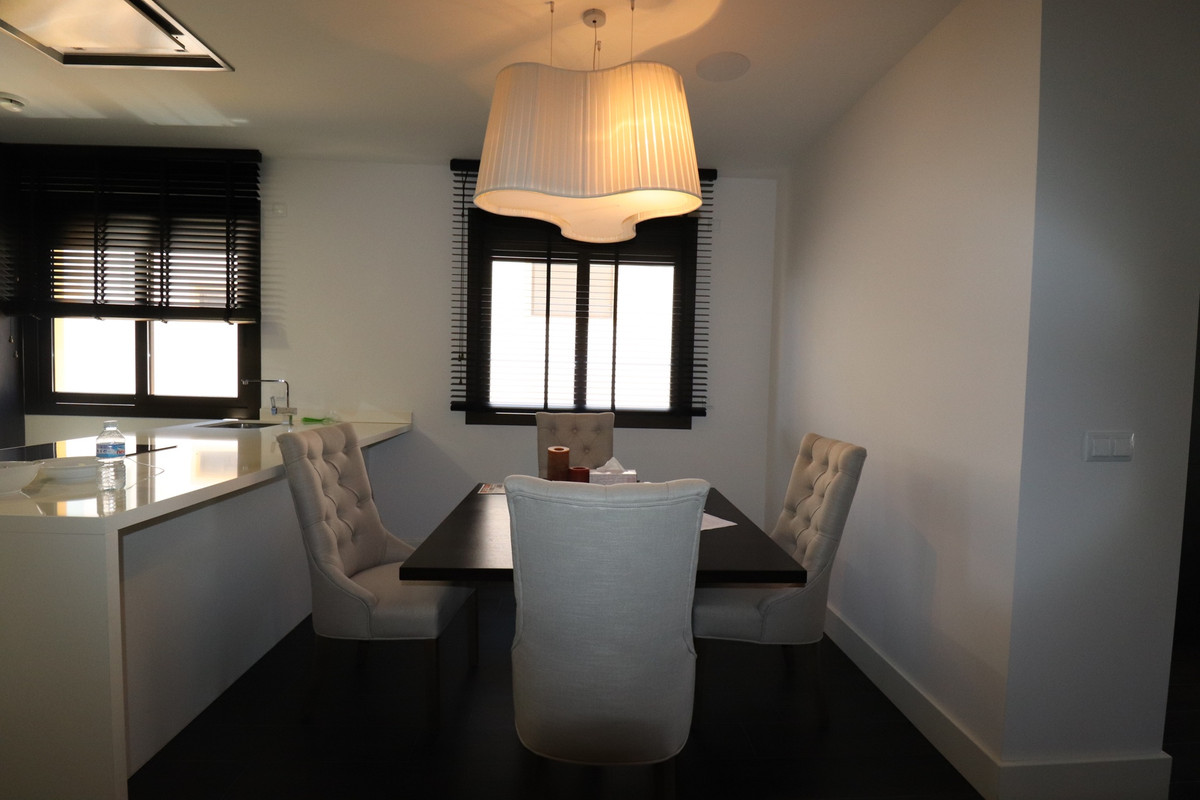 With enthusiasm we present you this beautiful penthouse in Guardamar with fantastic sea viewin the luxurious complex Marjal Beach. This very well maintained residential complex has a beautifully landscaped garden with the communal swimming pool. The spacious apartment originally consists of two joined apartments, creating large spaces. The penthouse has 2 spacious bedrooms and a 3rd bedroom is possible. Both bedrooms have an en -suite bathroom with walk in closet. The quality has not been saved, which you notice when you view the apartment . The property has electric shutters throughout. The kitchen is fully equipped with all necessary appliances. There are 2 cozy terraces on both sides of the house and via an internal staircase we reach a spacious roof terrace with stunning sea views. The roof terrace offers a lot of privacy and the windows can all be opened. In the winter you can also spend a good time here because of the sliding windows on both sides of the very large roof terrace. In the kitchen there is a custom-made food lift so that drinks and snacks can be sent up via the kitchen. The roof terrace has luxury electric blinds and a Sonos music system, you can listen to music throughout the house. With the elevator you reach the 2 adjacent garage places with an associated storage room. The house is sold furnished. It's all about location and with this penthouse you make a good investment. Very suitable for permanent residence or holiday rental. The common areas have an outdoor pool, indoor pool, gym, sauna and terraces.