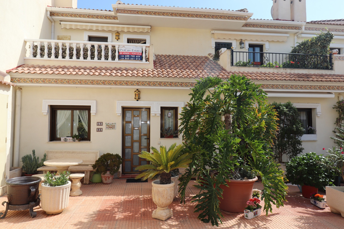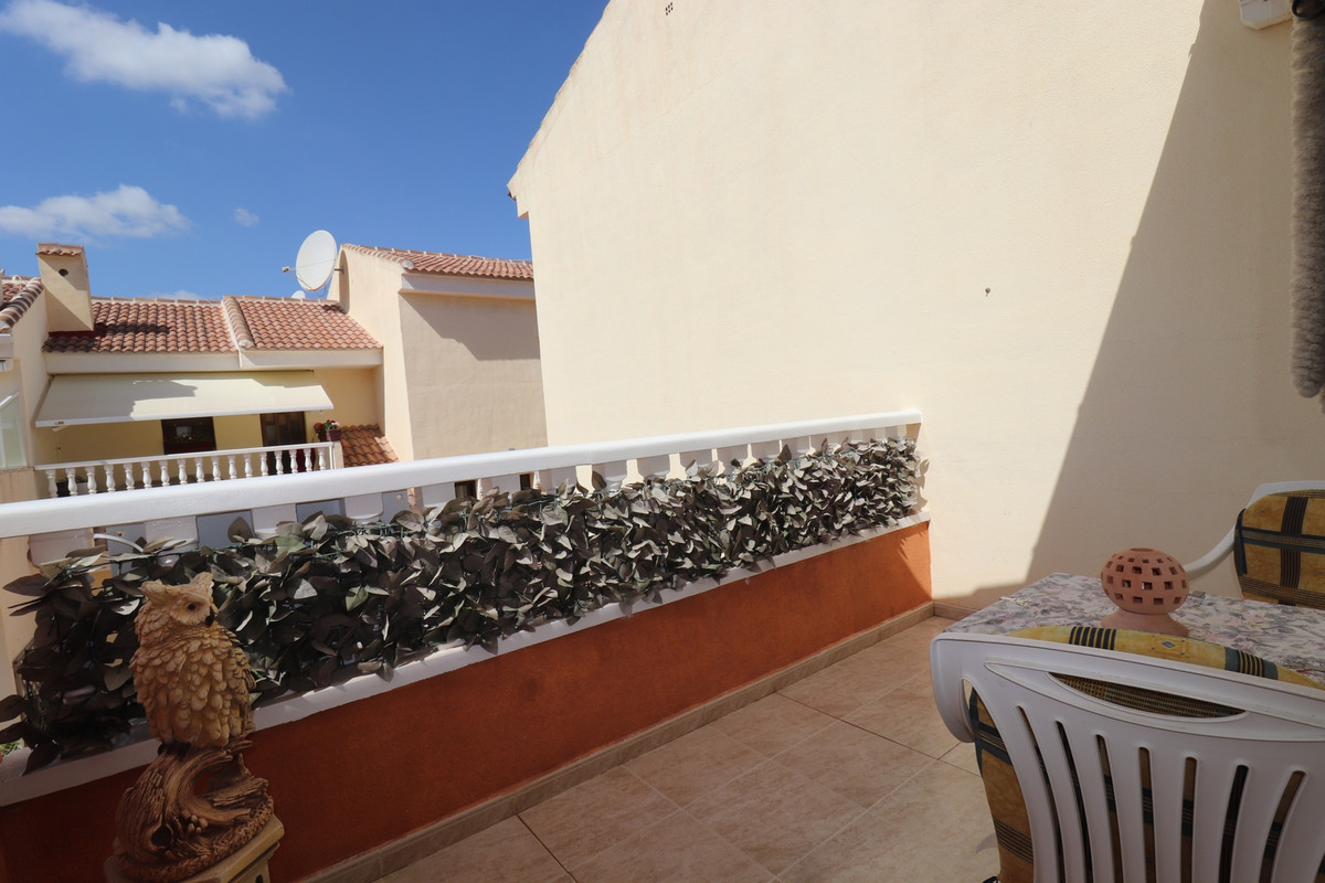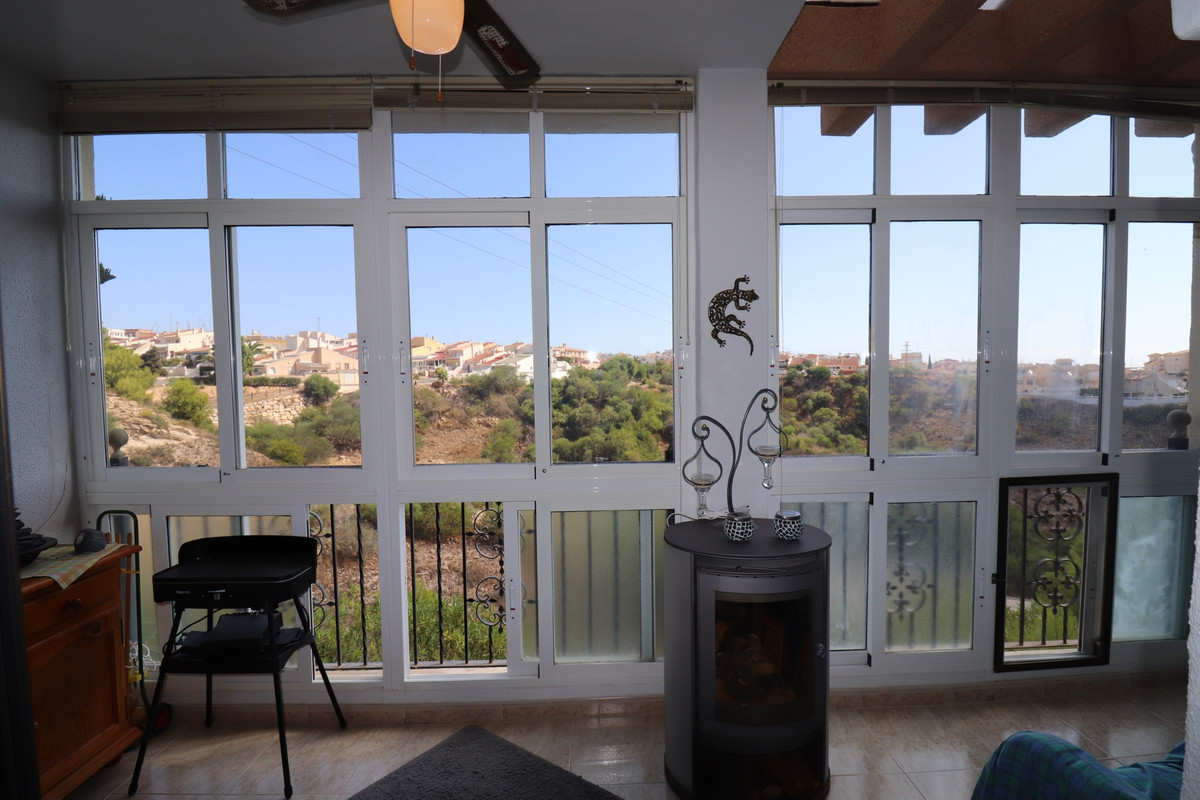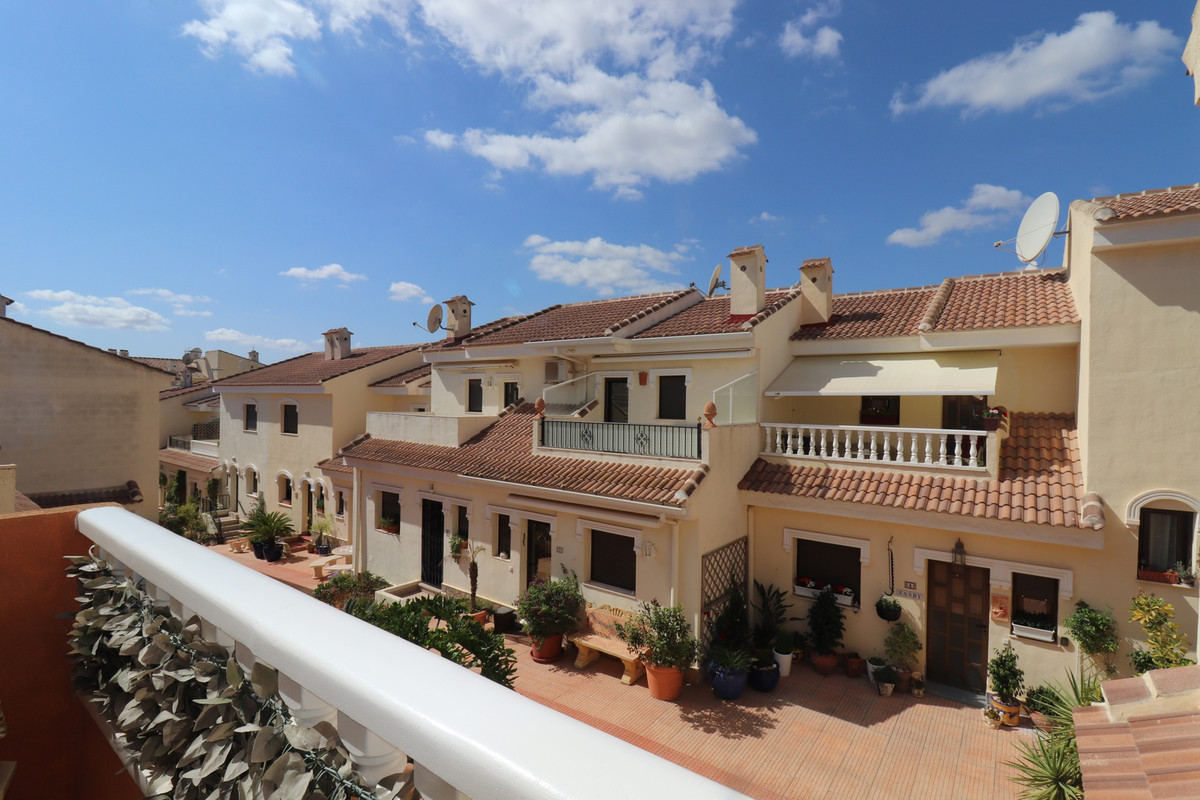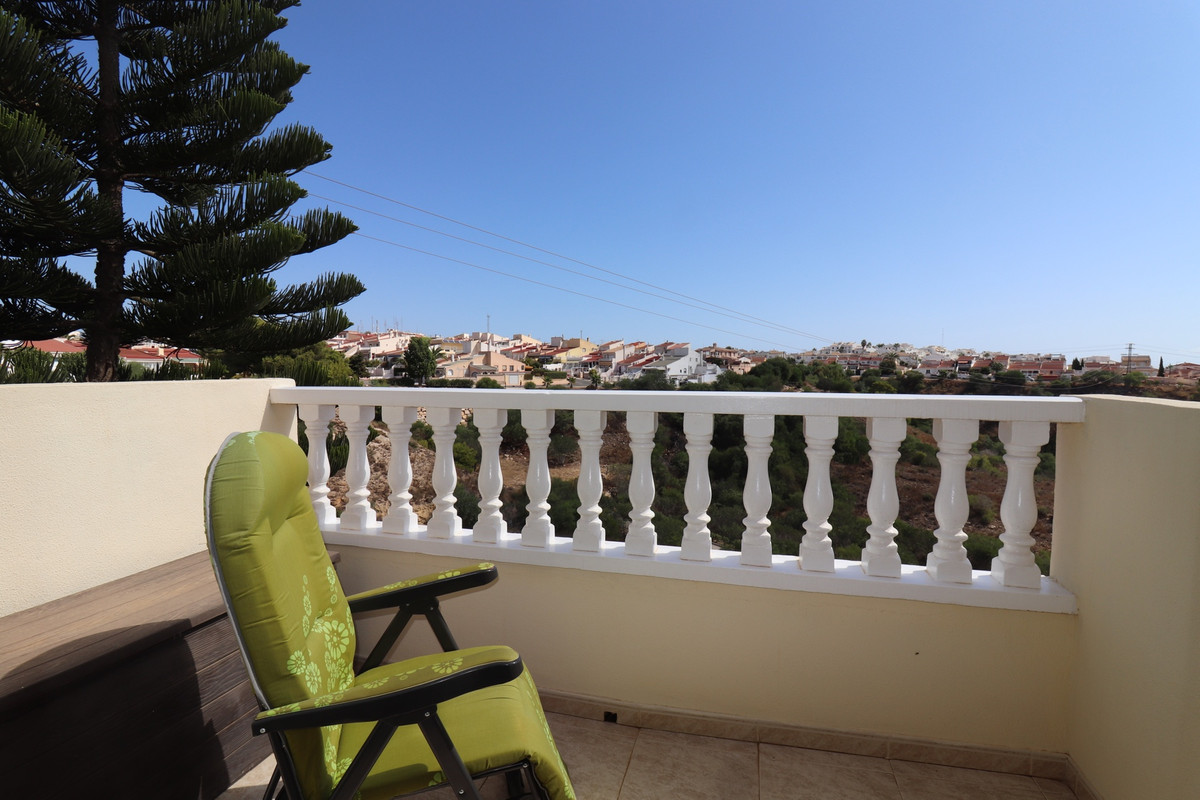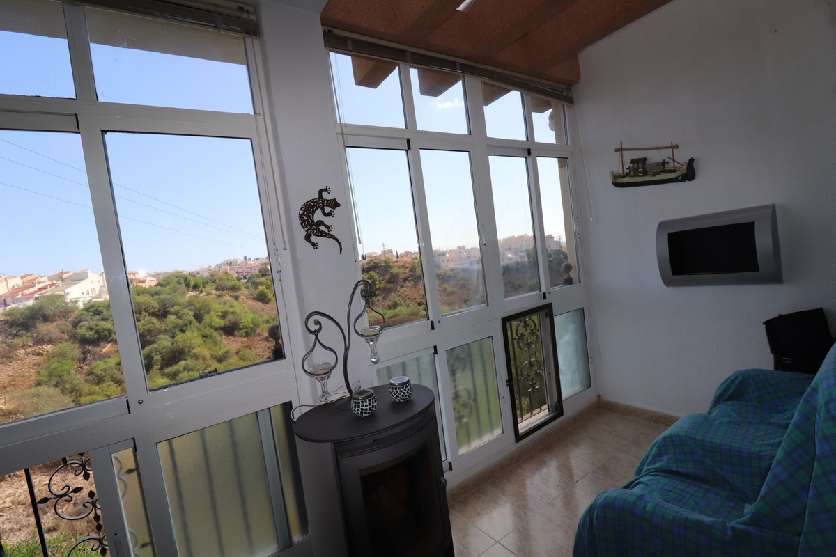 Priced to sell! This charming 2 beds, 2 baths well maintained townhouse, villa is situated on the top of a hill with amazing views into the valley. When entering the property on your left there is a good size kitchen with views to the front yard. On your right is the stairway and a storage. Further into the hallway on your left is the downstairs complete bathroom. The living is also a good size and enclosed the glazed patio with stunning views over the valley. You can open the sliding windows to enjoy the breeze in the summer. Also a log burner in the patio to enjoy the winters in this special townhouse. Upstairs the 2 bedrooms with an en-suite balcony with the views over the valley. From the upstairs hall way you can enter the frontside open spacious patio. This property has so much to offer!.
