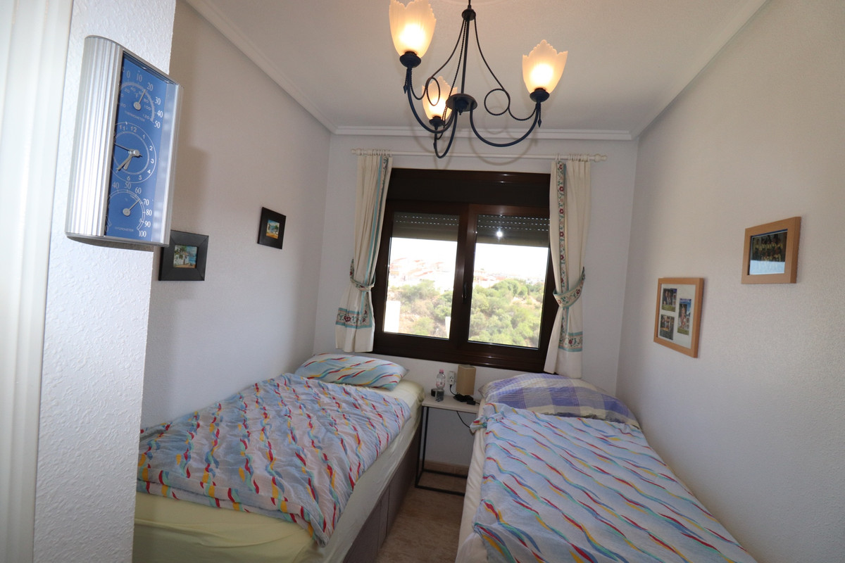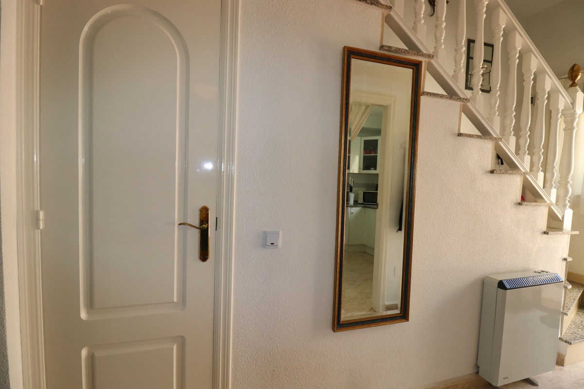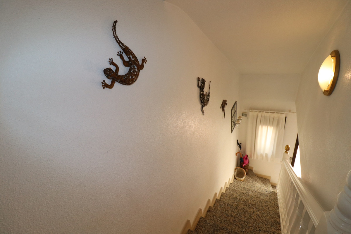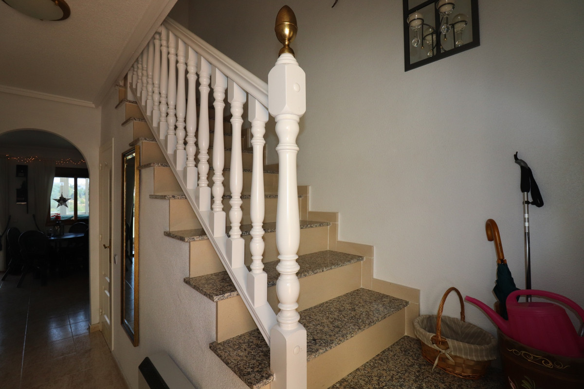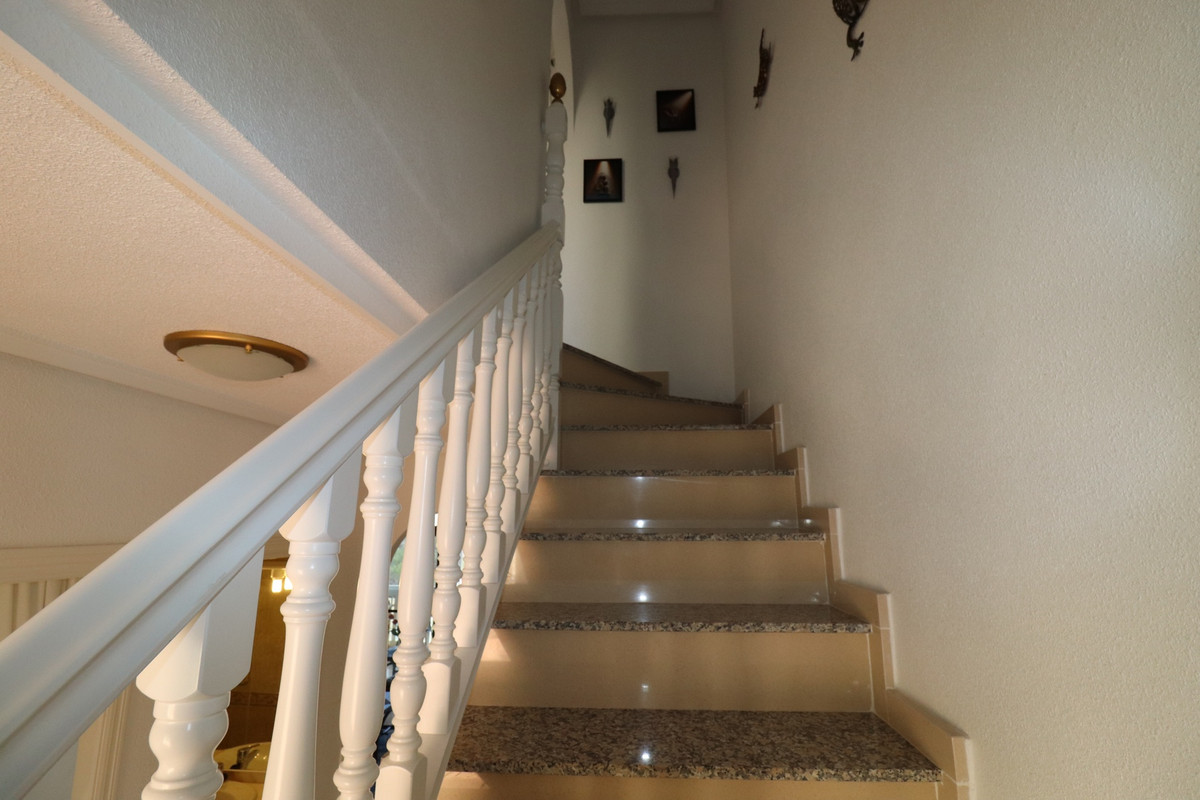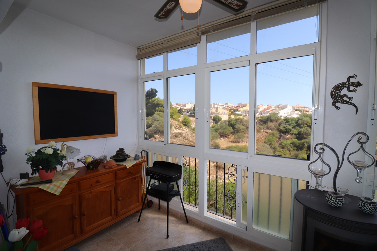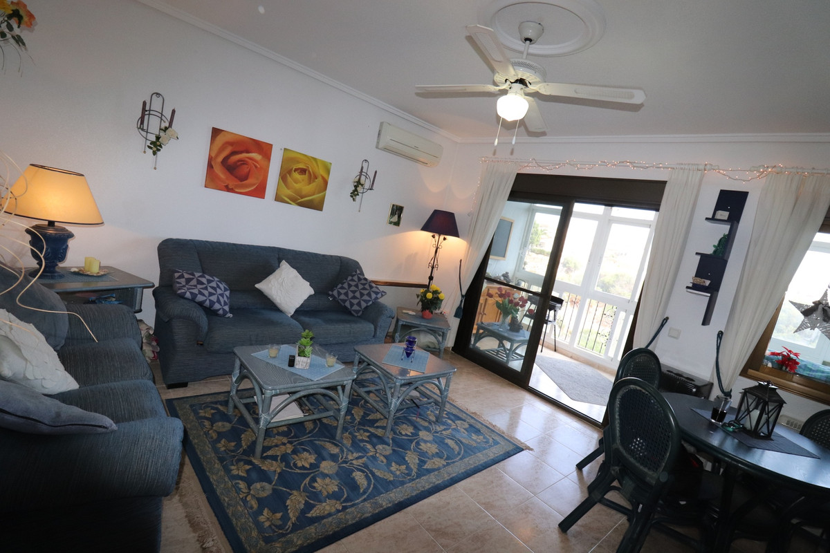 Priced to sell! This charming 2 beds, 2 baths well maintained townhouse, villa is situated on the top of a hill with amazing views into the valley. When entering the property on your left there is a good size kitchen with views to the front yard. On your right is the stairway and a storage. Further into the hallway on your left is the downstairs complete bathroom. The living is also a good size and enclosed the glazed patio with stunning views over the valley. You can open the sliding windows to enjoy the breeze in the summer. Also a log burner in the patio to enjoy the winters in this special townhouse. Upstairs the 2 bedrooms with an en-suite balcony with the views over the valley. From the upstairs hall way you can enter the frontside open spacious patio. This property has so much to offer!.