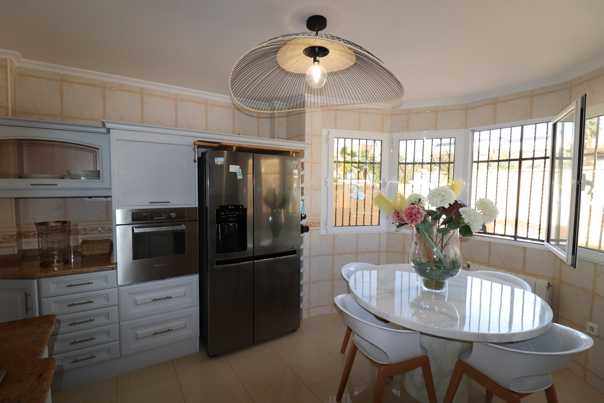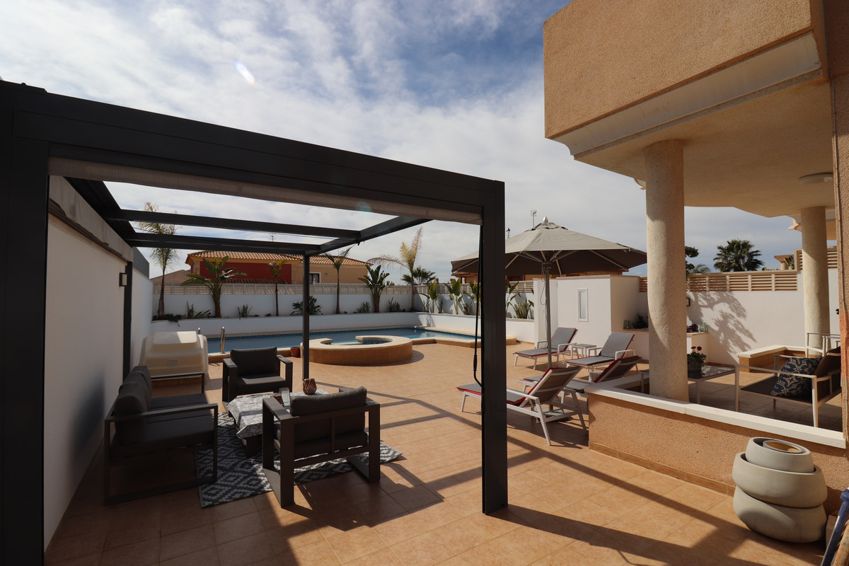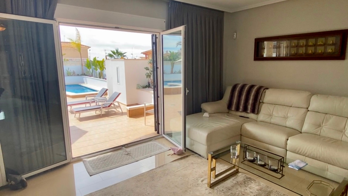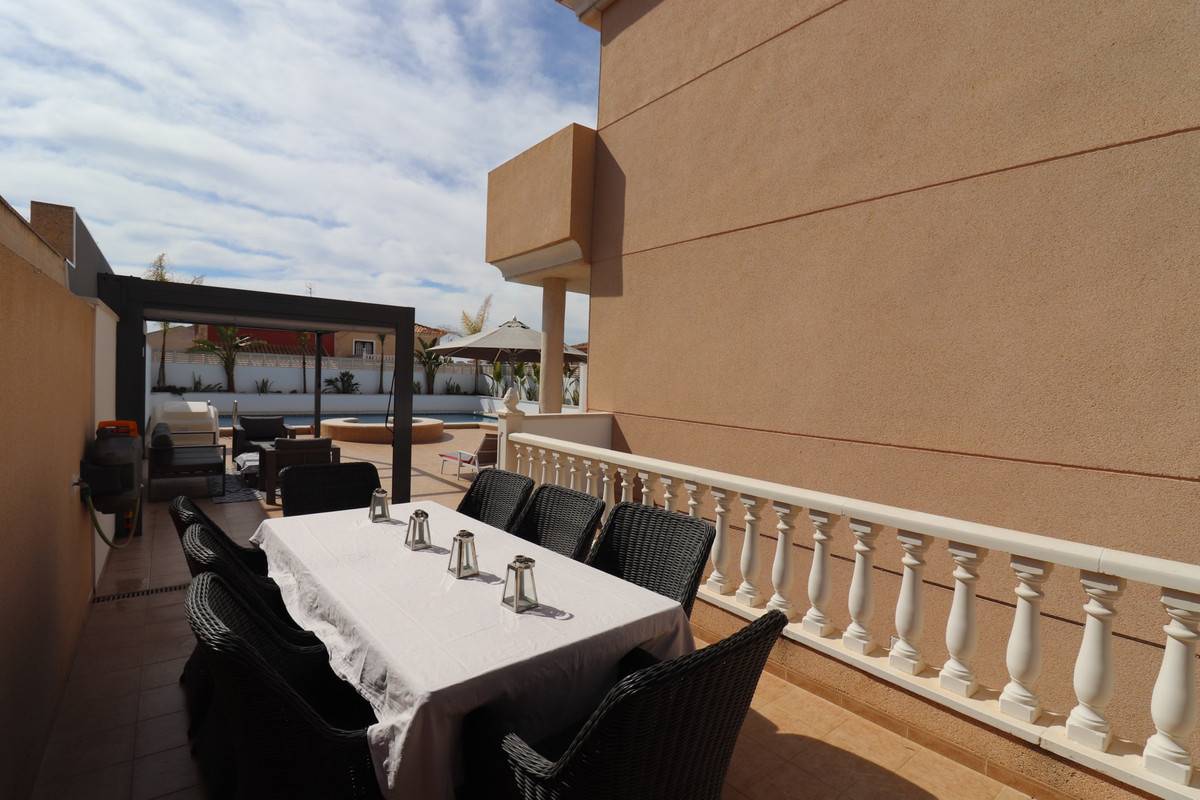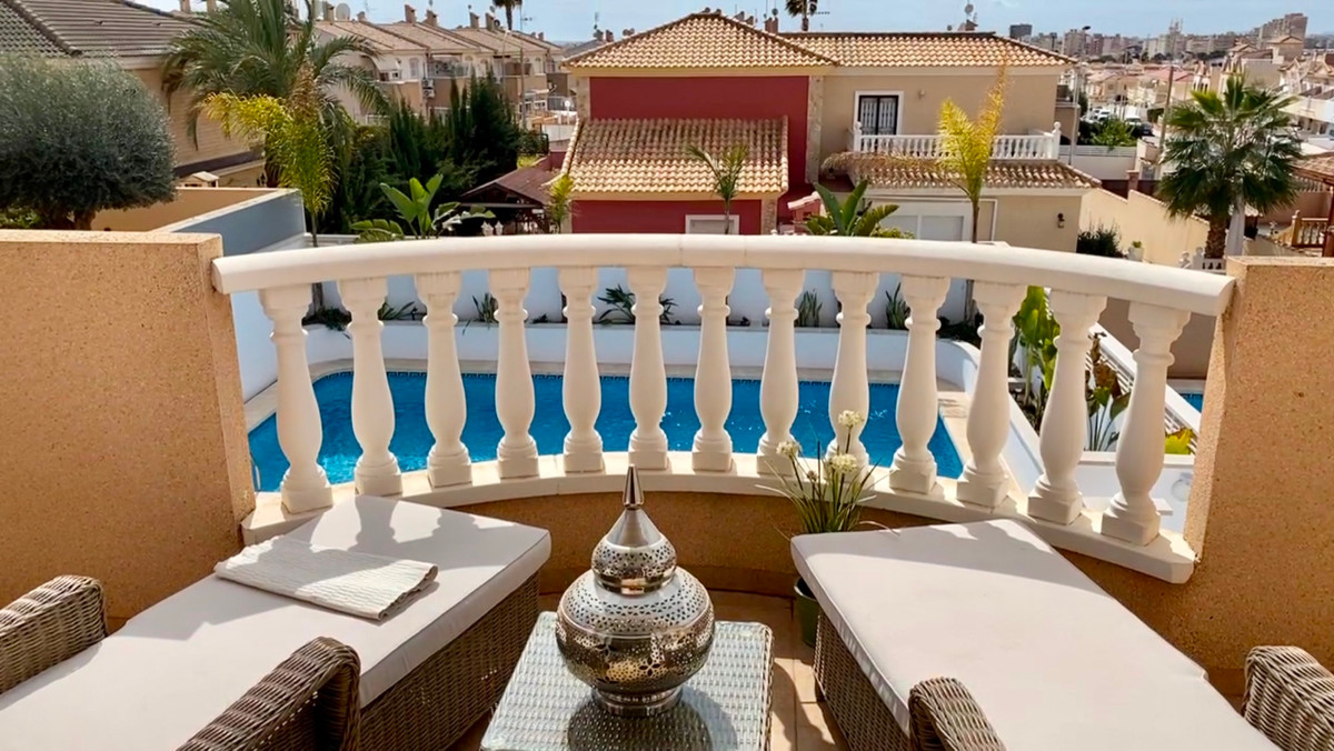 We are proud to present this beautiful villa with 4 bedrooms and 3 bathrooms distributed over 2 floors with large private pool 12 x 8 with jacuzzi for sale in Torrevieja close to the beach