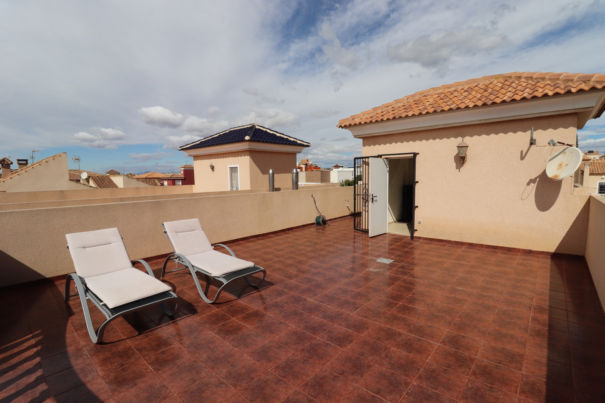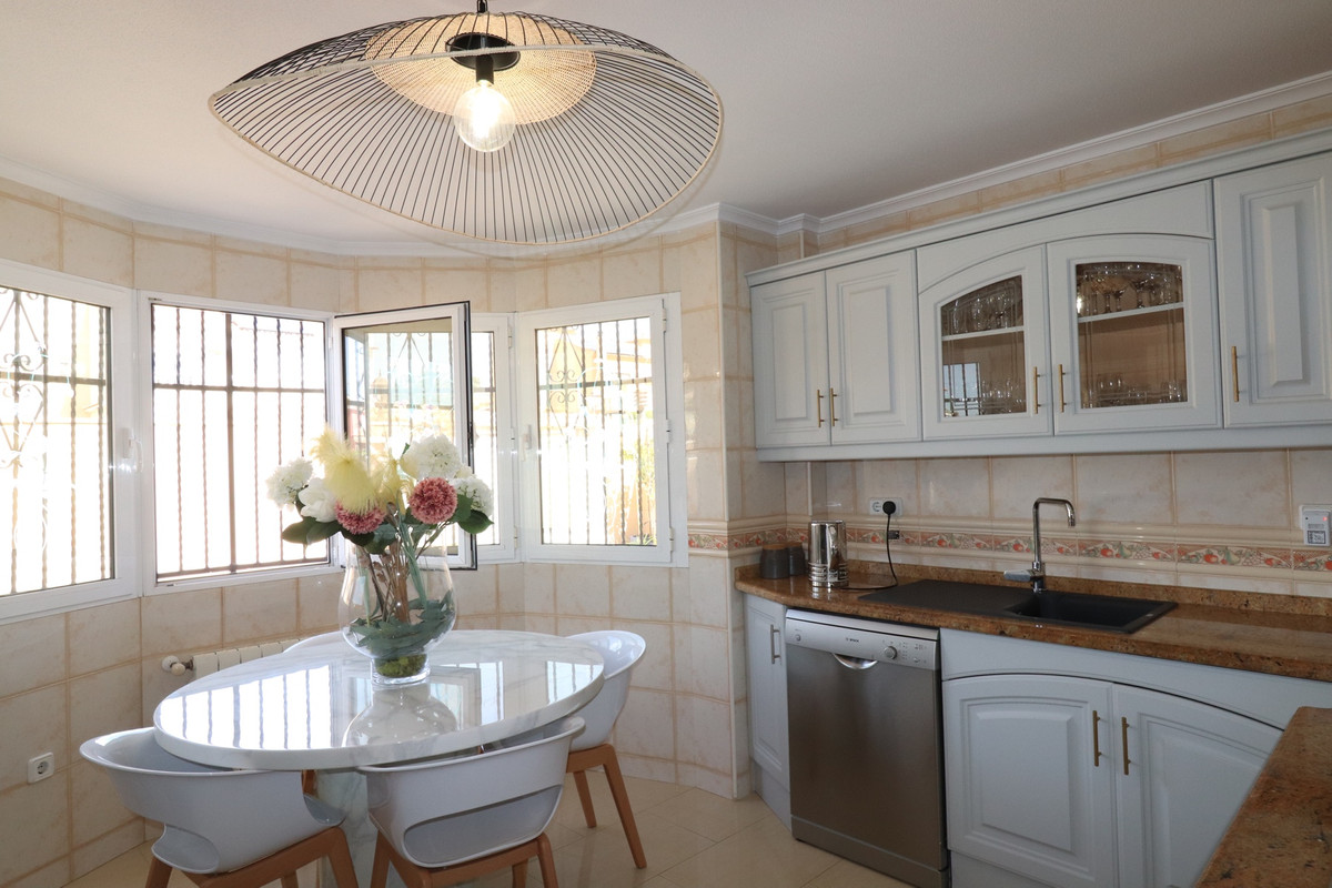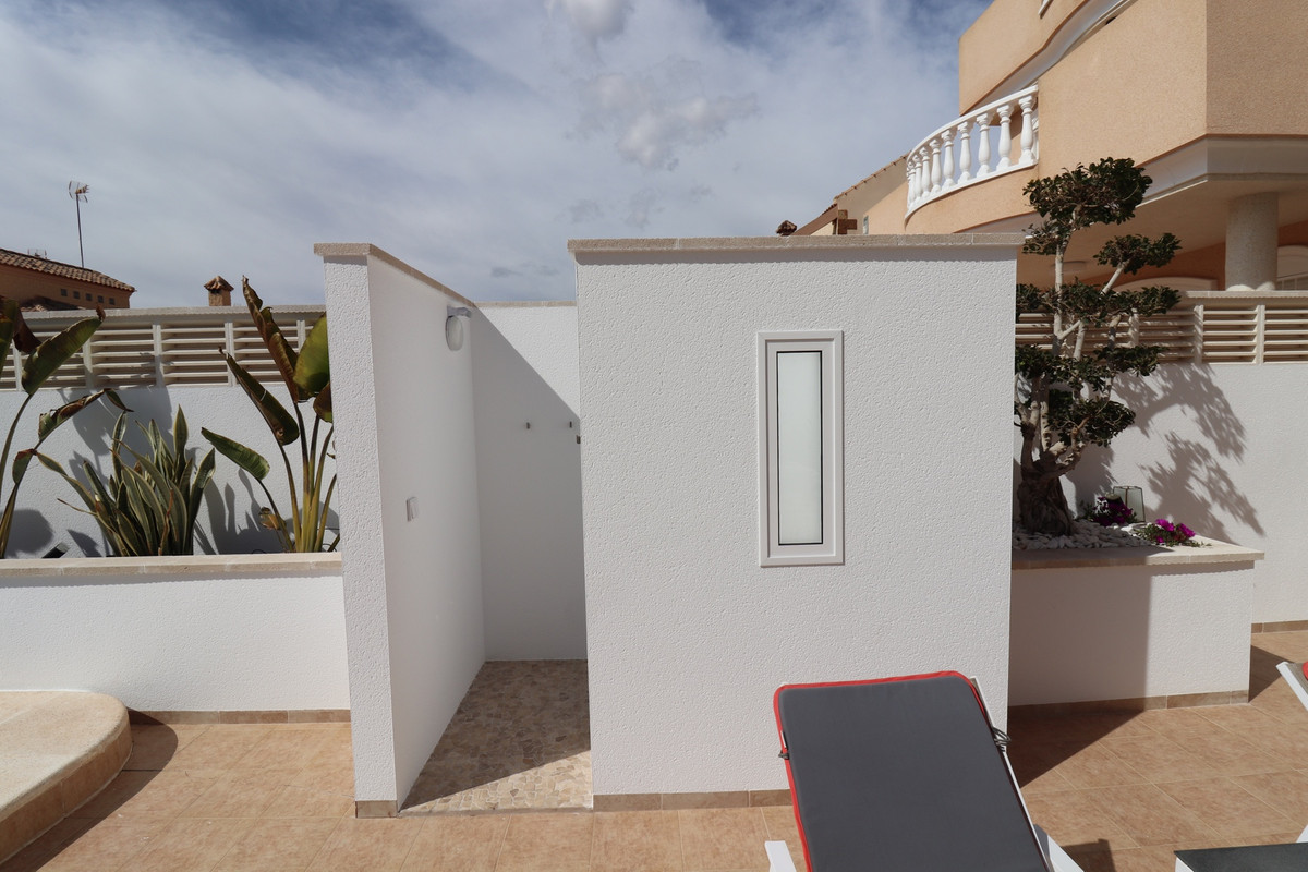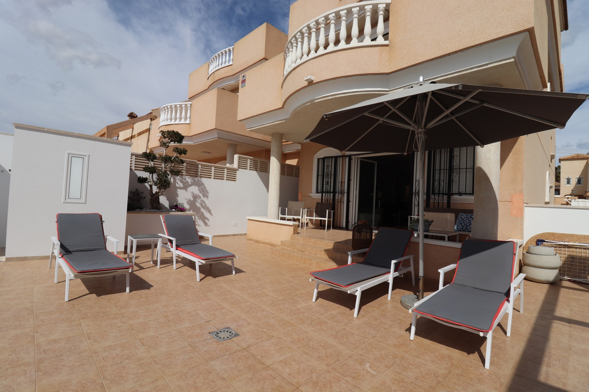 This spacious villa is located in a popular residential area just outside Jardin del mar within walking distance of all amenities such as supermarkets, restaurants and bars. The beach of Torrevieja is a 15-20 minute walk away.