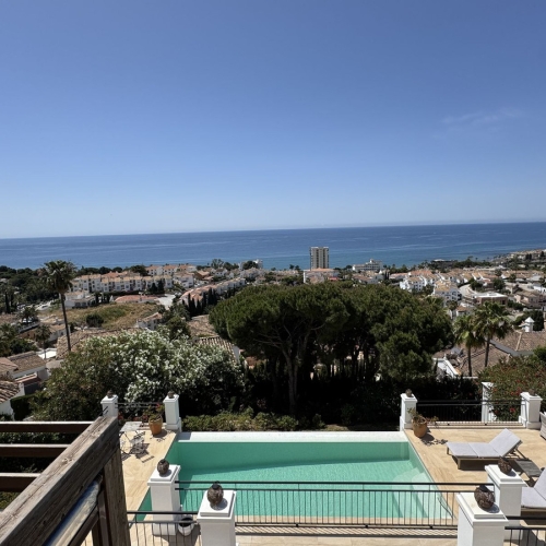 Outside there is a driveway the gate of which is electrified and can be opened remotely and can fit 2 cars very easily. Off this area is a lockable storage unit. The front terrace is very large, south facing and has a private pool. The area to the rear of the property is a designated dining area and here is where we find the stairs up to the 2 solarium areas which covers approx. 65m2 and is already set up with water and electricity so a summer kitchen could be fitted easily. This solarium is an ideal area where you could sit and watch the beautiful views to the sea as well as the stunning sunsets.