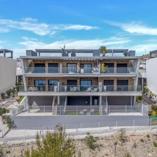 Newly Built Ground Floor Apartment with South-Facing Terrace (Year of Construction 2021) - Well-Positioned and PeacefulWelcome to this beautiful ground floor apartment, located in a tourist complex just 1.2 km from the largest shopping center on the Costa Blanca Norte (La Marina) and 3.3 km from the sea. Offering both convenience and tranquility, this property is an ideal retreat.The apartment features 2 bedrooms, both with access to the terrace, and 2 bathrooms with showers (including one en-suite with underfloor heating). Step out onto the spacious 40m2 terrace, where you can enjoy outdoor living and soak up the sun all year round. The open kitchen with an island is perfect for culinary enthusiasts, and the apartment also includes a large storage room and 2 underground parking spaces.This particular unit is the most practical in the complex, providing immediate car access to the storage room and the apartment's main entrance. For guests, there is a second entrance at the front (the terrace), leading to the garden and pools.The kitchen comes fully equipped with induction hob, oven, extractor hood, microwave, dishwasher, washing machine, and dryer. Each room is equipped with air conditioning, heating, and dehumidification systems, as well as recessed lighting, built-in wardrobes, and two high-quality double beds. Other notable features include electric blinds and an additional storage room. The apartment benefits from an energy-efficient hot water system using aerothermal technology.Fully furnished and ready to move in, this apartment is not only a wonderful place to live but also offers great rental potential, making it a smart investment opportunity.Facilities within the complex are exceptional and include:- Outdoor swimming pool- Children's pool- Indoor heated saltwater pool- Finnish sauna- Fitness room with equipment- Paddle tennis courts- Hiking trails- Lounge area- Children's playground- Beautifully landscaped subtropical gardensWith a low monthly cost of €115 (covering elevator maintenance, garden and pool upkeep, gym, paddle tennis, concierge, and electric gates), this cozy and high-quality apartment is certainly worth a visit.Location and Surroundings:Situated within a gated and monitored domain (with cameras, electric gates, and a concierge) in the "Camporrosso Village" complex, located in the coastal town of Finestrat.The stunning beaches, just a short bike ride or walk away, stretch over 6 km and are among the finest in Europe, boasting Blue Flag awards from the European Union for water quality, cleanliness, and provided services.If you're in need of relaxation and rejuvenation, the "Asia Garden" Hotel & Thai Spa is only 1 kilometer away. This award-winning spa hotel, favored by celebrities, transports you to Asia with its beauty and tranquility, offering a worry-free escape into paradise.The renowned 1-star michelline restaurant "Rice" is nearby, as well as the Villaitana Golf Club. Just a little further, you'll find a children's amusement park and a zoo.If you're looking to visit an internationally acclaimed wellness center, the SHA Wellness Clinic, a favorite among celebrities, is also within reach.For outdoor enthusiasts, a few minutes by bike will lead you to mountain biking trails on "Puig Campaña" or enjoyable mountain excursions.Finestrat is conveniently located between Benidorm and Villajoyosa. The charming and historic center of Finestrat sits atop a hill. There is a bus stop right outside the complex, and a tram stop at the nearby La Marina shopping center, which is less than 1.5 km away. The tram connects Alicante and Valencia, with stops in Albir and Altea