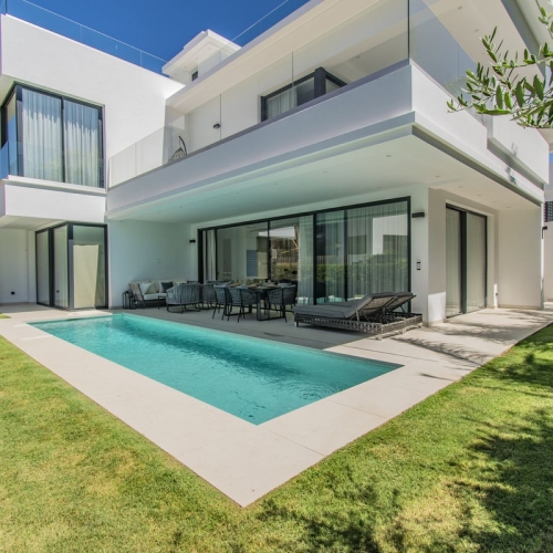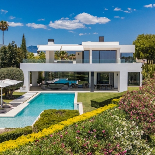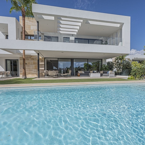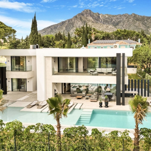 The house of your dreams is here, a spectecular brand new modern villa for sale in the heart of the golden mile of Marbella in Nagueles , it has 5 bedrooms and 5.5 bathrooms, built over 3 levels with luxirous elevator. Including a basement where you can find a spacious garage, gym area and a home cinema room.