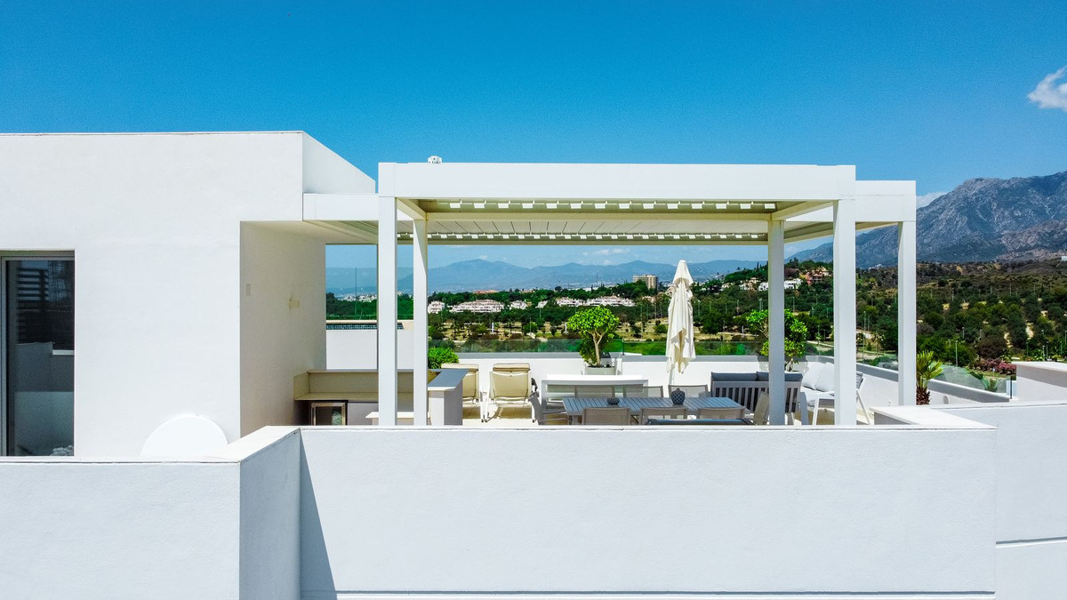 This spacious 4-bedroom corner penthouse is all about relaxed luxury, tucked away in a beautiful green area surrounded by top golf courses and elegant homes. Located in the sought-after Soul Marbella community, you'll also enjoy access to 5-star hotel-style services that make everyday living feel like a holiday.