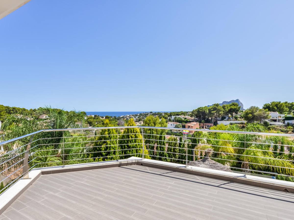 This spacious and luxurious villa is located in the urbanisation of La Fustera, within 10 minutes drive to Calpe centre and 15 minutes from Moraira, close to the charming beach of La Fustera. Once you access the plot, you can immediately appreciate the scale of this spacious villa.Once inside, you are welcomed by an imperial staircase and an eye-catching marble floor which extends throughout the whole villa. The living area is huge and consists of 3 separate areas: a formal dining area, a sitting room and, in the corner, the cosy lounge/tv area with a gas fireplace. The terrace outside is perfectly balanced with lots of room for all your friends and family to sunbathe or relax, on the terrace you can find a covered dining area and sitting area along with an outside kitchen.The outside pool has an inbuilt jacuzzi and waterfall with beautiful views over the landscape all the way towards the Mediterranean sea. The villa includes a SPA area with fitness room, Sauna, Indoor pool and Jacuzzi to enjoy the premium lifestyle even in the winter months.Downstairs is a very classy bar area which is a perfect place to have a dance or organise a drink with friends. Next to the bar is a fully independent apartment with its own separate entrance, which can be used for friends, family or a maid.Last, but not least, is the top floor with 4 large bedrooms, all with ensuite bathrooms, and an office. The master bedroom also includes a walk-in wardrobe, private terrace and a bath. The home office shares a large terrace with 2 of the bedrooms and provides for a wonderful view while you catch up with some work from home. This villa has everything you need to live in all year round!