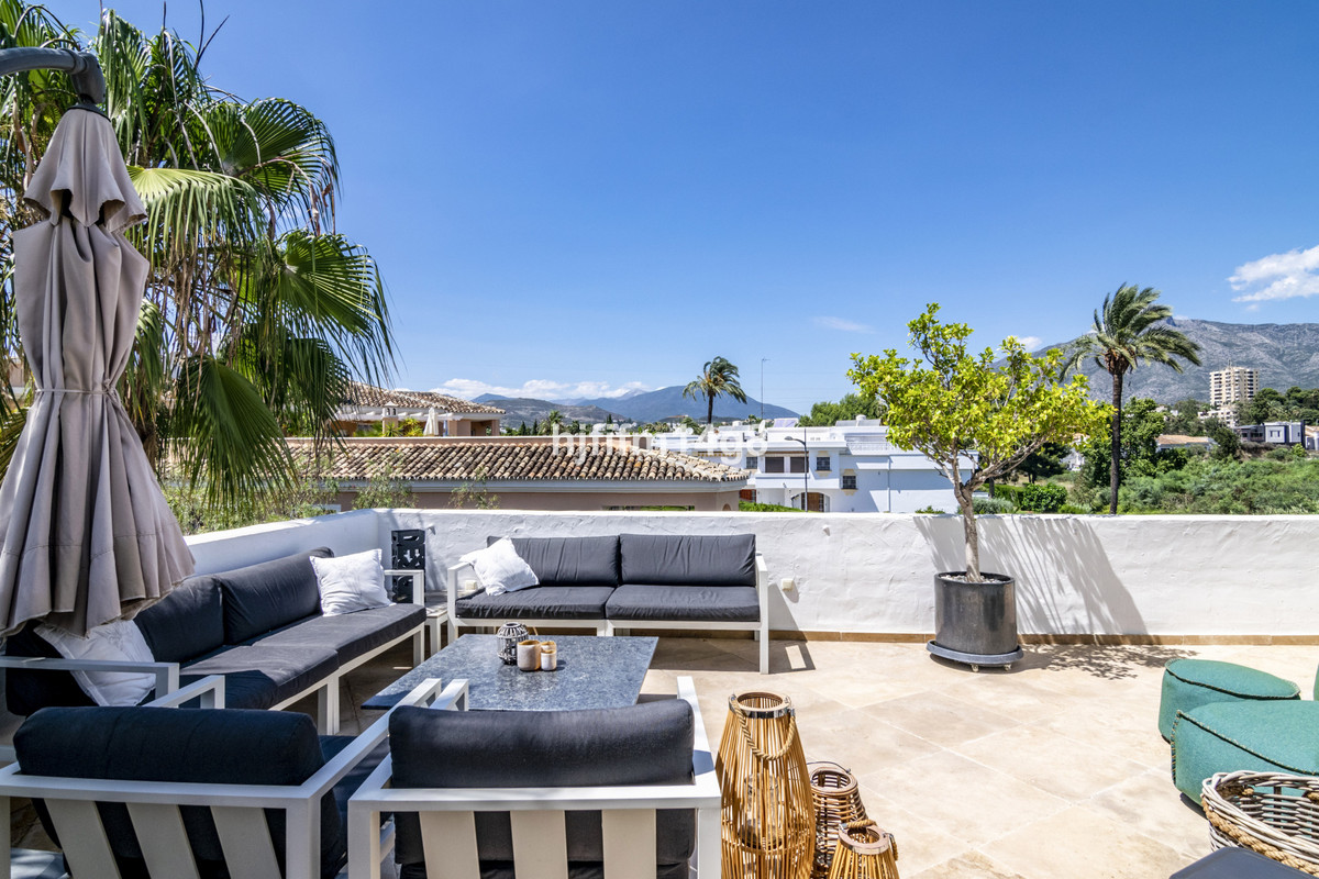 This is a renovated 3-bedroom duplex penthouse. Simply pack your bags and move in! This is a key ready property offering a complete hassle-free move in process for the new owner. On the entrance level you will find the open plan sleek kitchen, one-bedroom, bright living room and dining room and direct access out to the fantastic terrace. You cannot miss the incredible La Concha view from the living room, it looks like a photograph! Upstairs are two additional bedrooms.