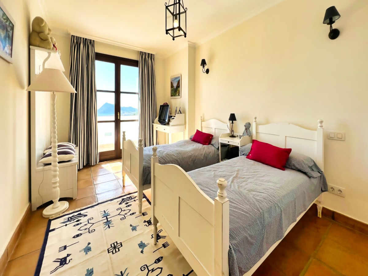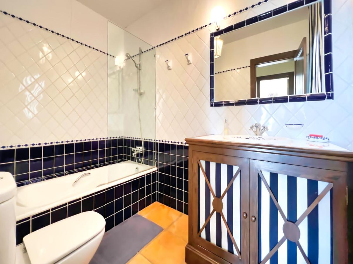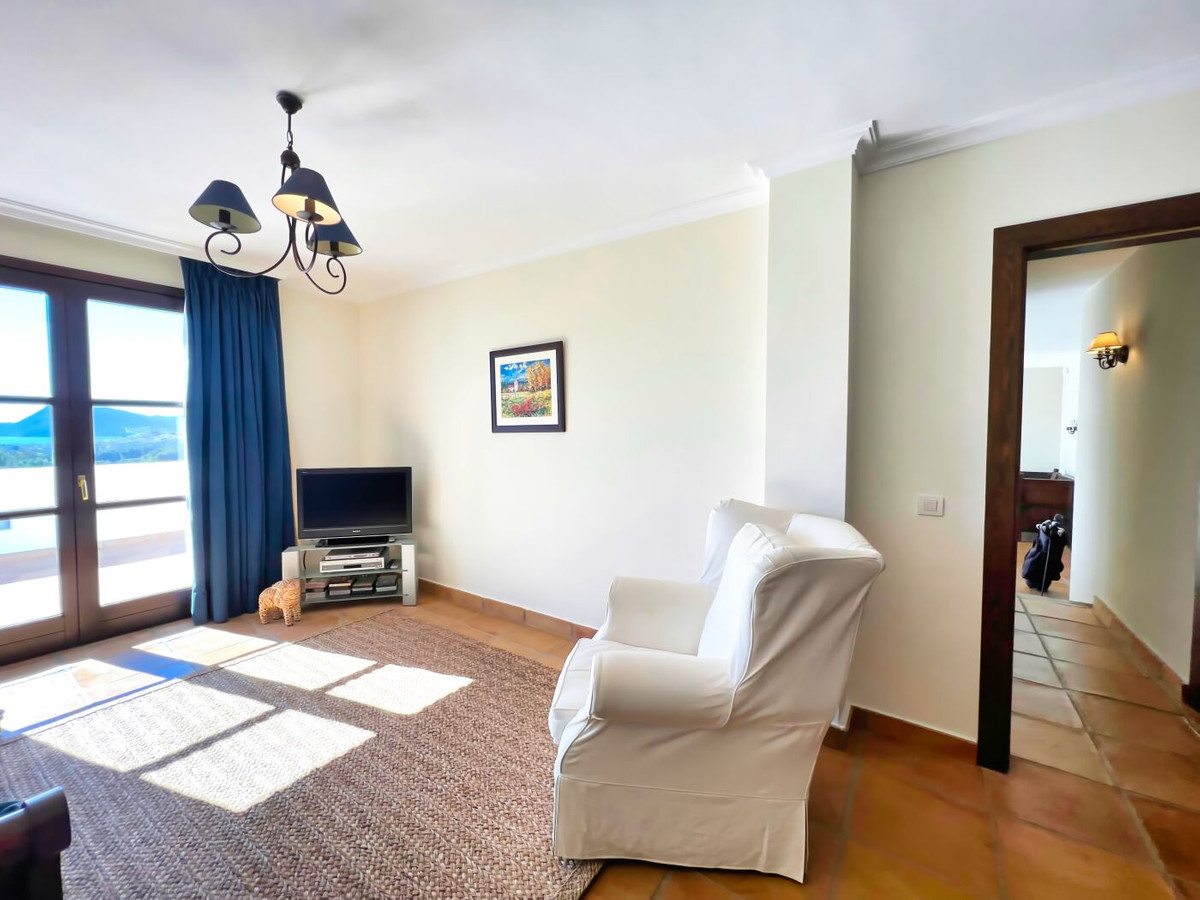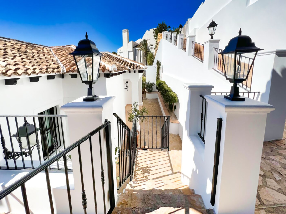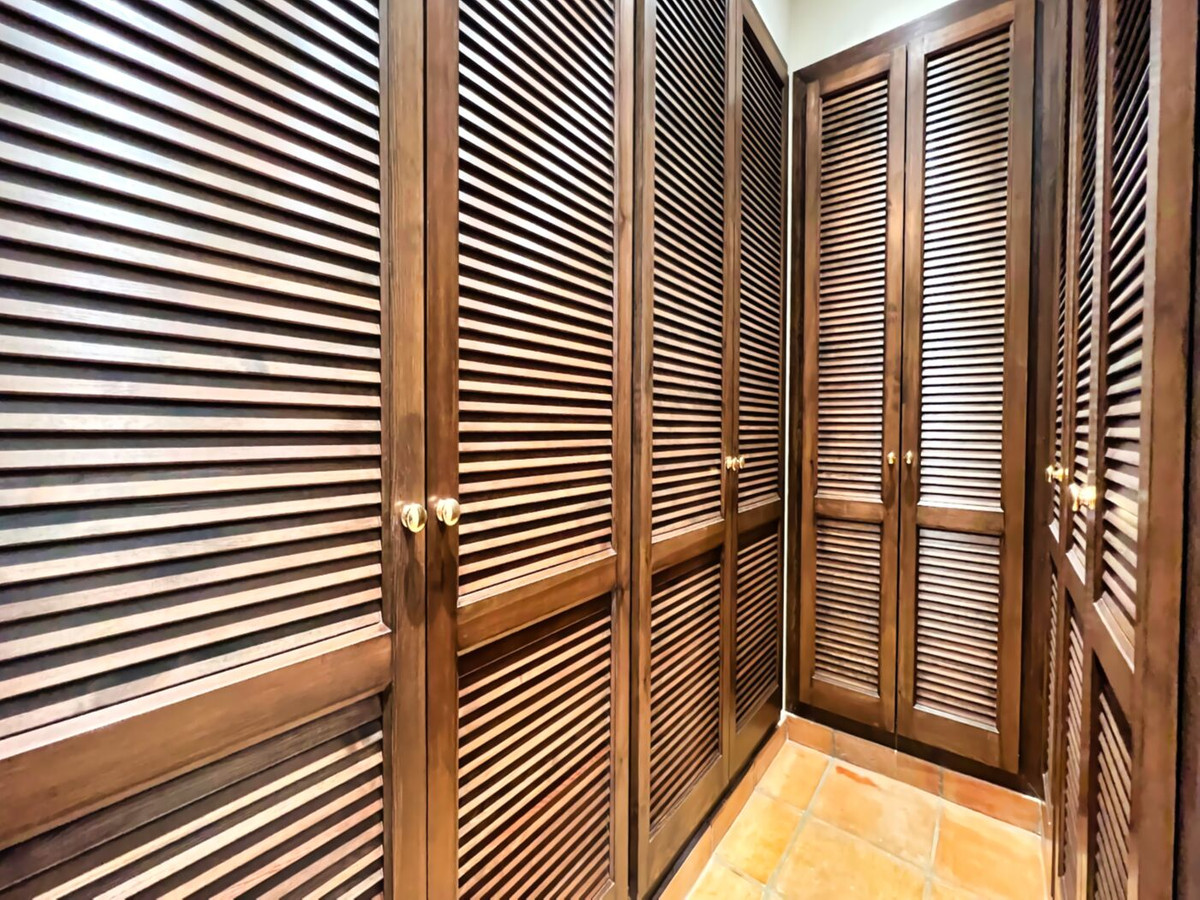 This impressive mediterranean villa was built in one of the most exclusive residential areas of Altea right by the Don Cayo Golf club. The villa can be accessed via en electric gate leading down to the parking area for two cars. The mansion is accessed on the top floor with its 4 bedrooms and 2 bathrooms and the grand staircase leading down to the middle and ground floor. In the center of the villa is the master bedroom with en-suite batroom and dressing room on one side and another large bedroom, again with en-suite bathroom and walk in wardrobe. Going further down the staircase we get to the large hall were on the one side of it we find the large living room and on the other side, the dining room, kitchen, guest toilet and utility room. All of the rooms on the ground floor lead outside to the large terrace with its beautiful veranda and outside dining area and bar just by the swimming pool.