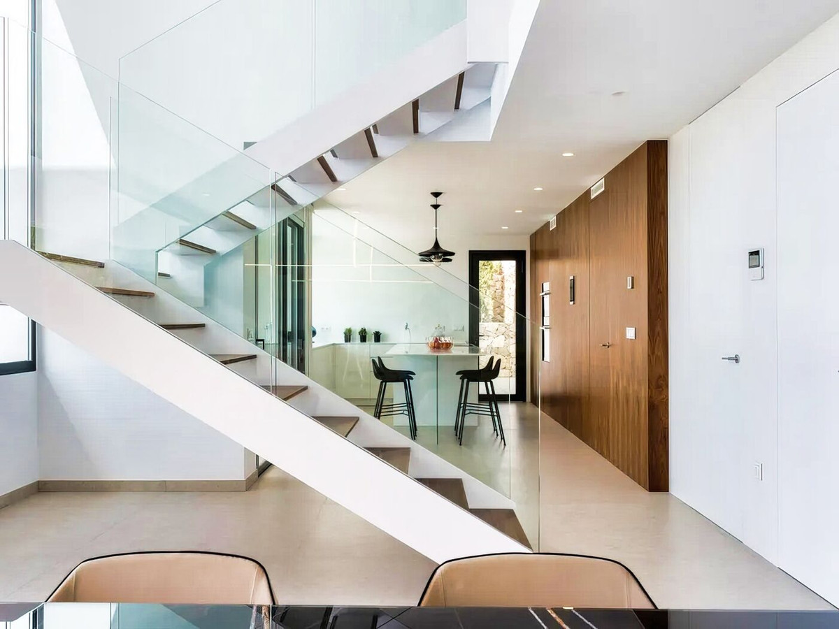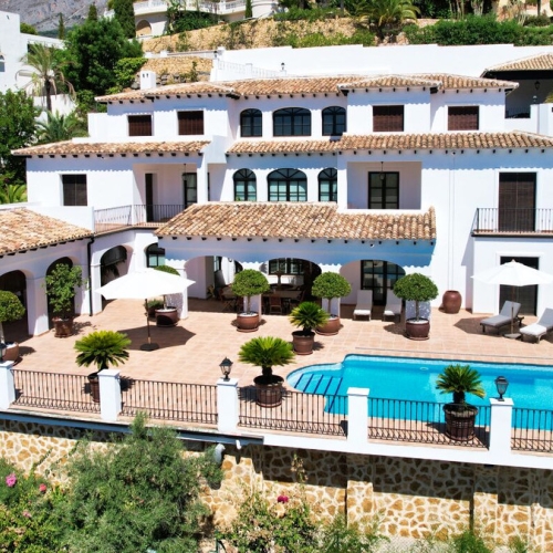 Located over three floors, this magnificent villa boasts a two-car garage on the top floor and an entrance hall leading to the rest of the house. Three of the four bedrooms are located on the second floor, including a master bedroom with a perfect location offering stunning sea views, access to a private terrace, an en-suite bathroom, and a walk-in closet. The other two bedrooms also feature private bathrooms, spacious wardrobes, and share a terrace. The hallway leading to the bedrooms has extra built-in wardrobes. The main floor is divided into two areas by a lobby and stairs. One side features the fourth bedroom with an en-suite bathroom, walk-in closet, and access to the main terrace with a porch area. On the other side is the kitchen with a central island that opens to the dining room, and a courtesy toilet. The island is ideal for cooking and breakfast, with direct access to the bright living room and outdoor dining area. The outdoor areas are resplendent with natural light and include several porches, an outside guest toilet, a large terrace, and an infinity swimming pool that offers stunning sea views at all times. The villa is fully equipped with thermal insulation, a solar energy water heating system supported by an ALTHERMA by DAKIN auxiliary system, air conditioning, double-glazed windows, electric blinds, and a reinforced door. Additionally, the villa features sanitaryware from the best brands such as DURAVIT or GROHE, appliances by MIELE in the kitchen, and a granite worktop. Other amenities include fitted wardrobes, a dressing room, a laundry room, a beautiful infinity pool, a charming garden, a spacious garage for two cars, and preinstalled alarm, TV antenna, telephone, and other telecommunications. This newly built villa is situated in Altea la Vella, a peaceful residential area of Altea, with the centre of Altea la Vella just a short walk away offering an array of services such as shops, supermarkets, banks, pharmacies, cafeterias, and restaurants. The Don Cayo golf club is only a few hundred meters away from the villa, while the centre of Altea is a couple of kilometres away. The location also provides easy access to the AP-7 motorway.