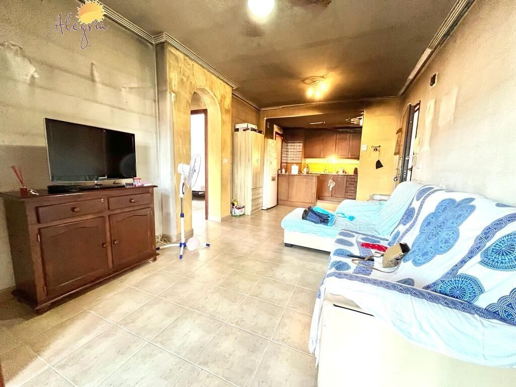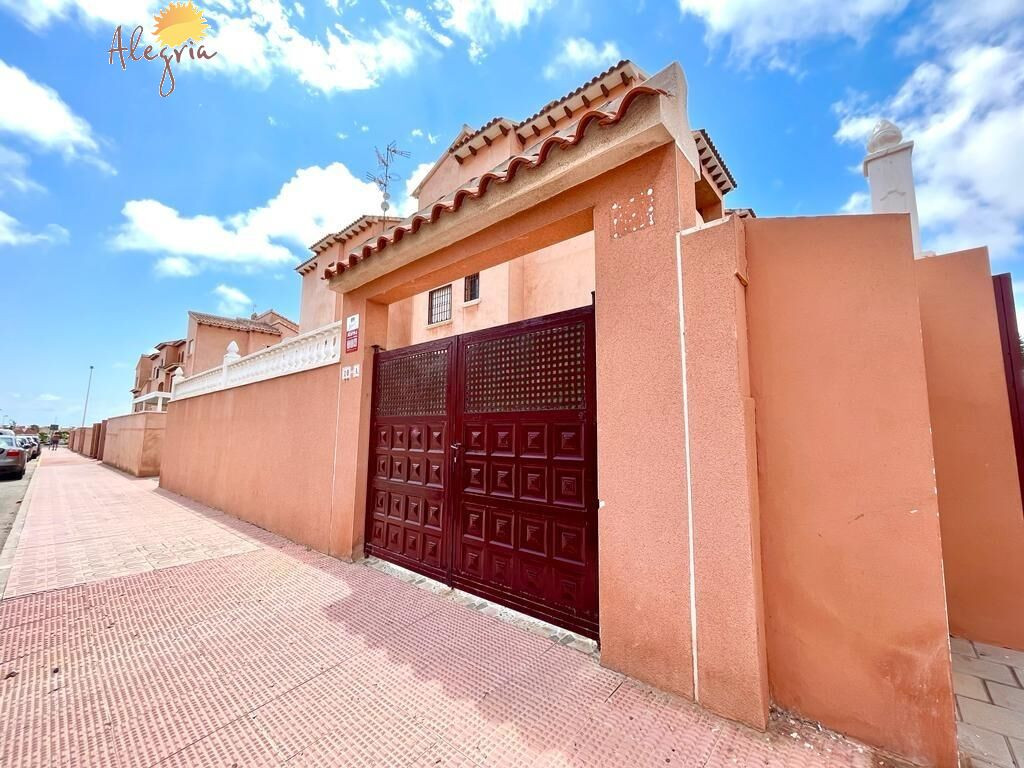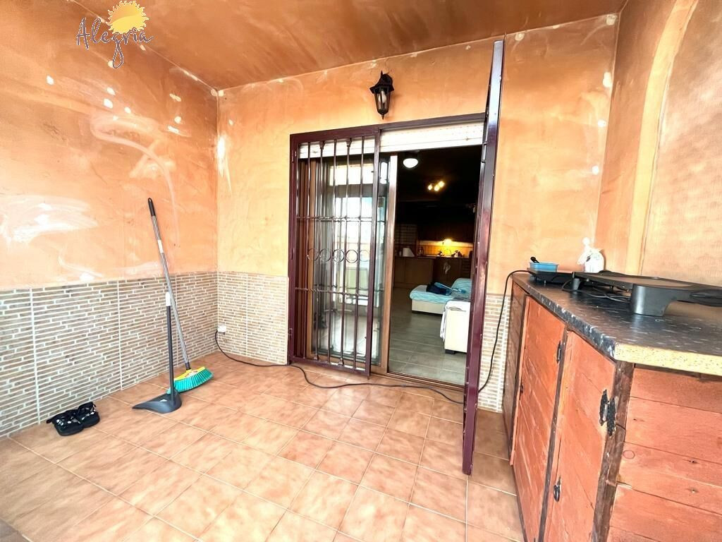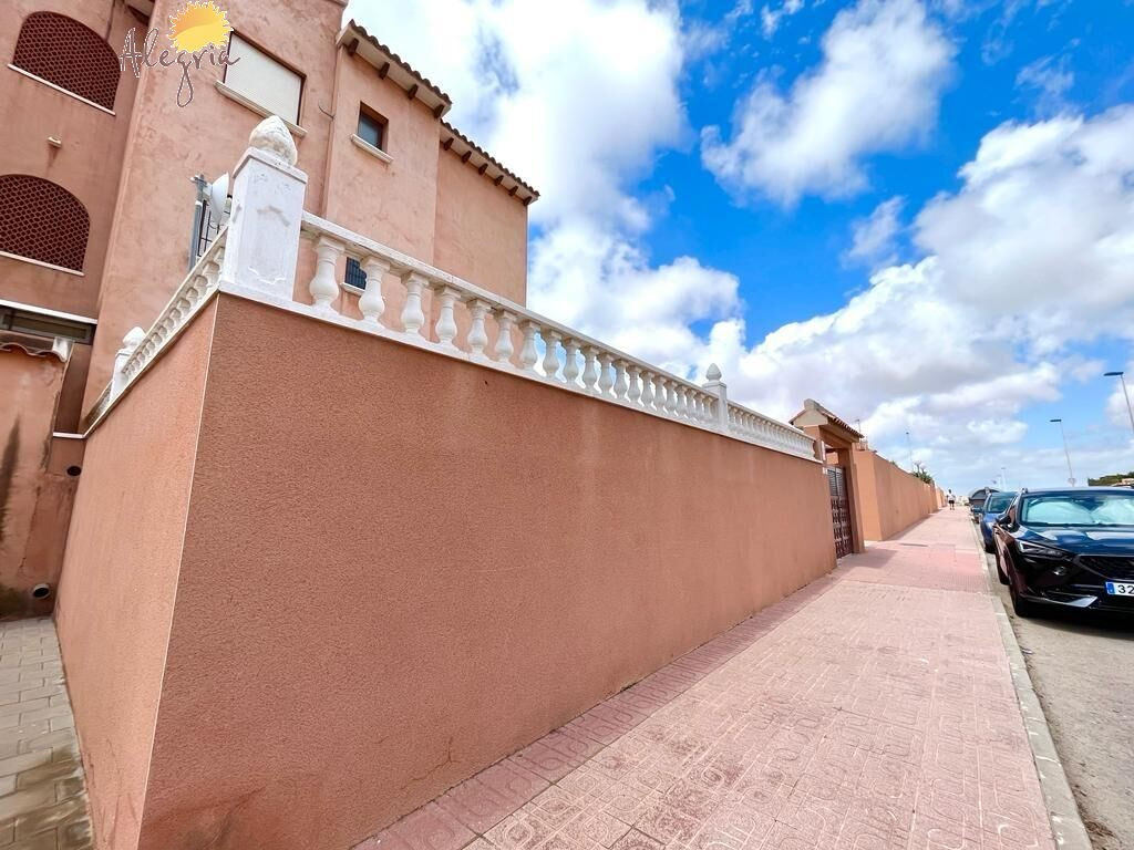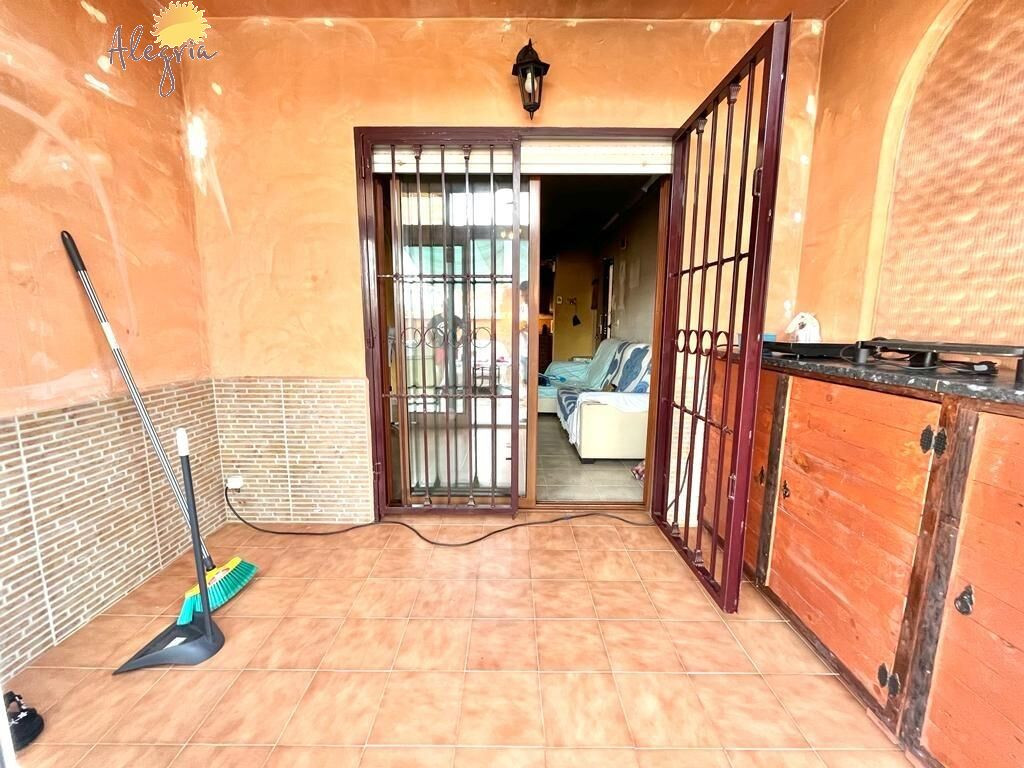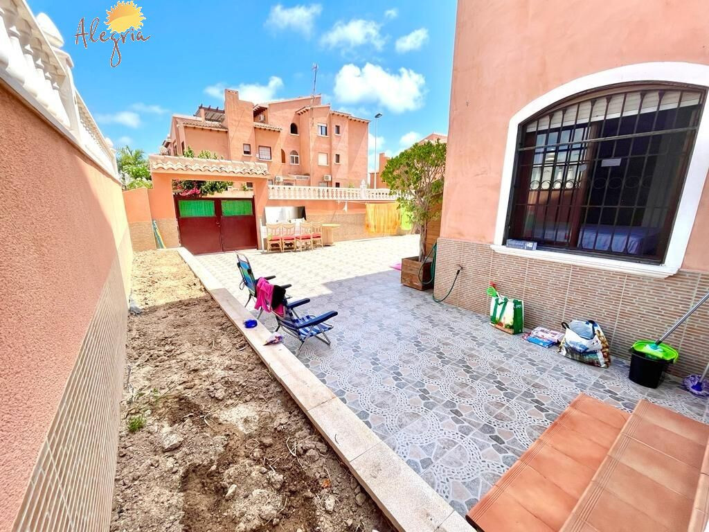 Ground Floor Bungalow in Torrevieja, Aguas Nuevas area, 61 m2. of surface, 104 m2 of terrace, 800 m. from the beach (10 minutes walk from the sea and 5 minutes by car), 2 double bedrooms (bright with fitted wardrobes), a bathroom (spacious), semi-renovated property, beech interior carpentry, west facing, porcelain stoneware floor, carpentry aluminum / climalit exterior.Extras: water, fitted wardrobes, corner, bright, light, furniture, patio, community pool, terrace (impressive sunny terrace), buses (a few minutes from the bus stops), trees, downtown (surrounded by all services). , shopping centers, medical centers, schools, coast, hospitals, parks, supermarkets, urbanization.Parking included (in the same plot)