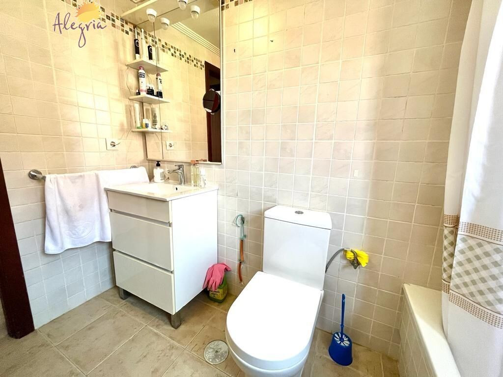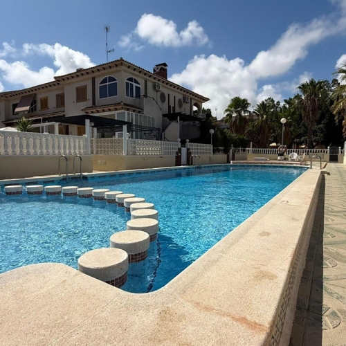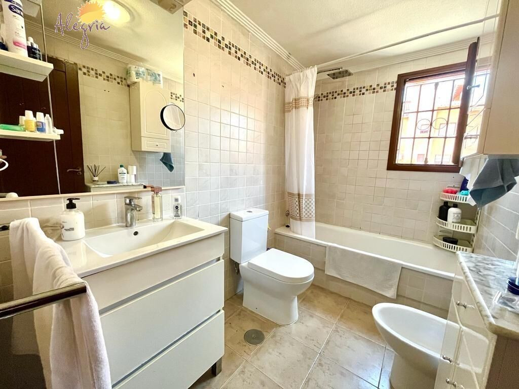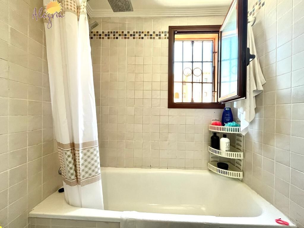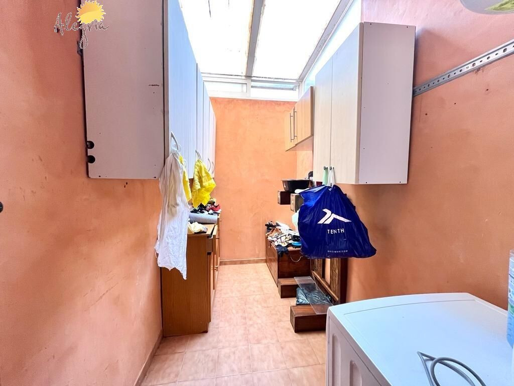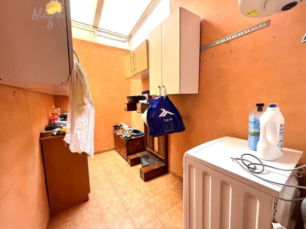 Ground Floor Bungalow in Torrevieja, Aguas Nuevas area, 61 m2. of surface, 104 m2 of terrace, 800 m. from the beach (10 minutes walk from the sea and 5 minutes by car), 2 double bedrooms (bright with fitted wardrobes), a bathroom (spacious), semi-renovated property, beech interior carpentry, west facing, porcelain stoneware floor, carpentry aluminum / climalit exterior.Extras: water, fitted wardrobes, corner, bright, light, furniture, patio, community pool, terrace (impressive sunny terrace), buses (a few minutes from the bus stops), trees, downtown (surrounded by all services). , shopping centers, medical centers, schools, coast, hospitals, parks, supermarkets, urbanization.Parking included (in the same plot)