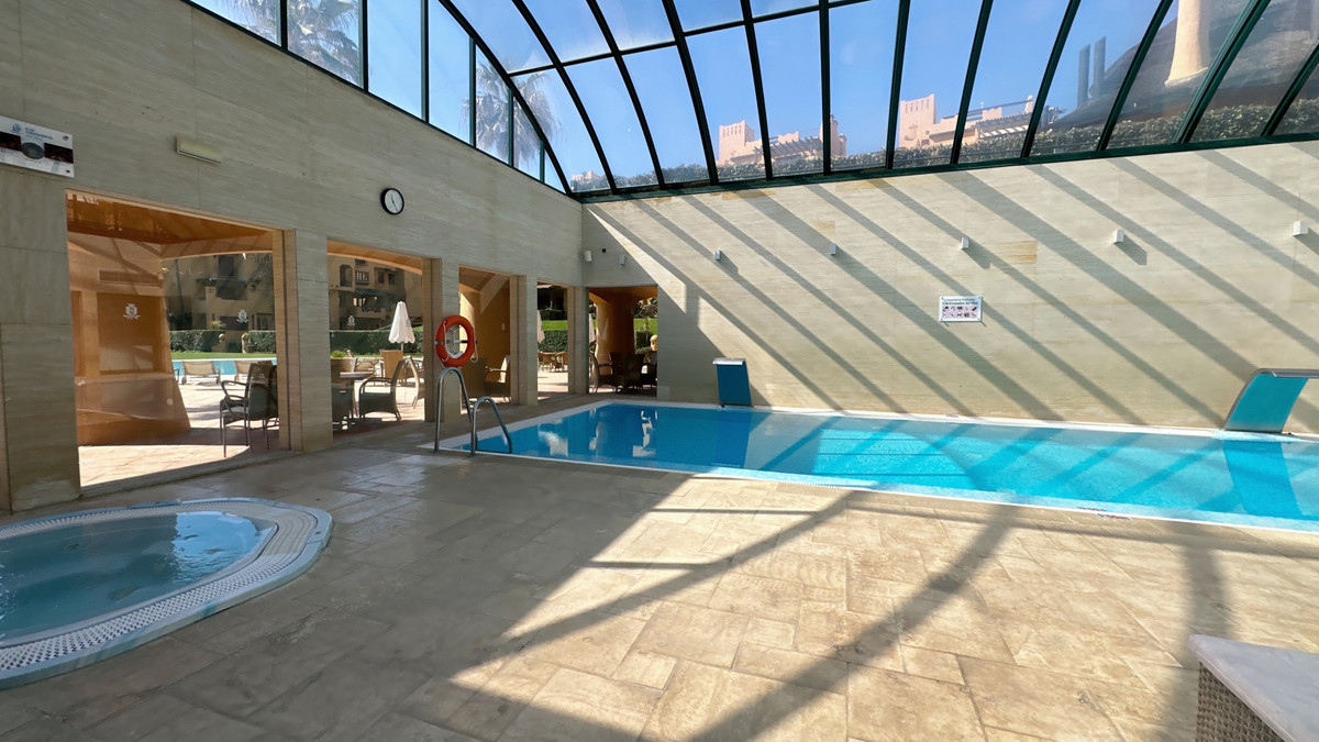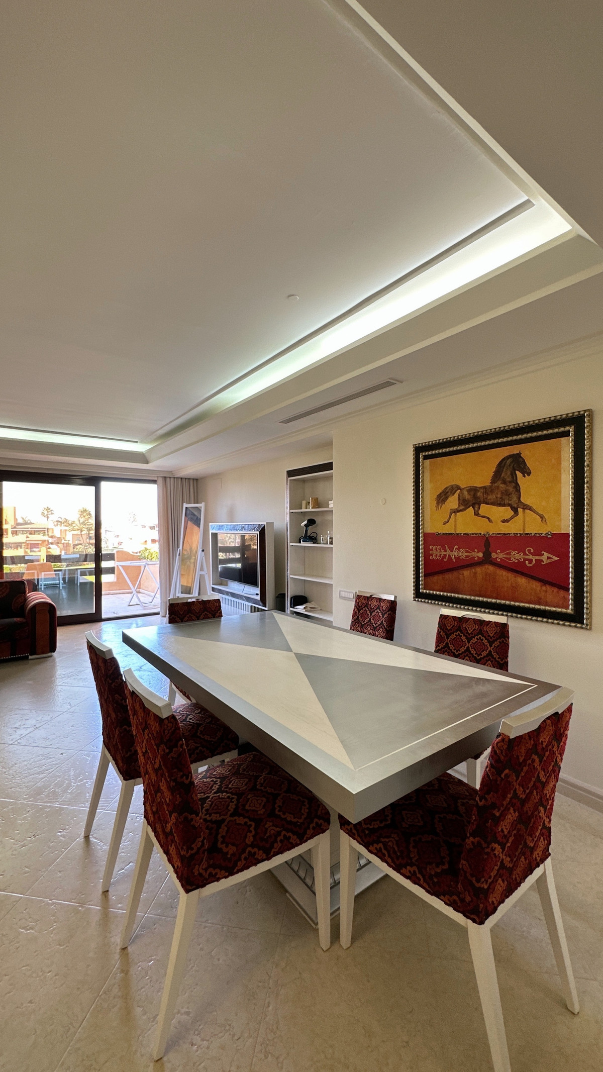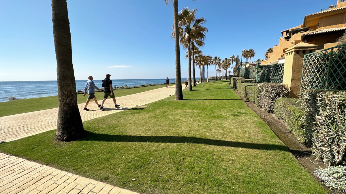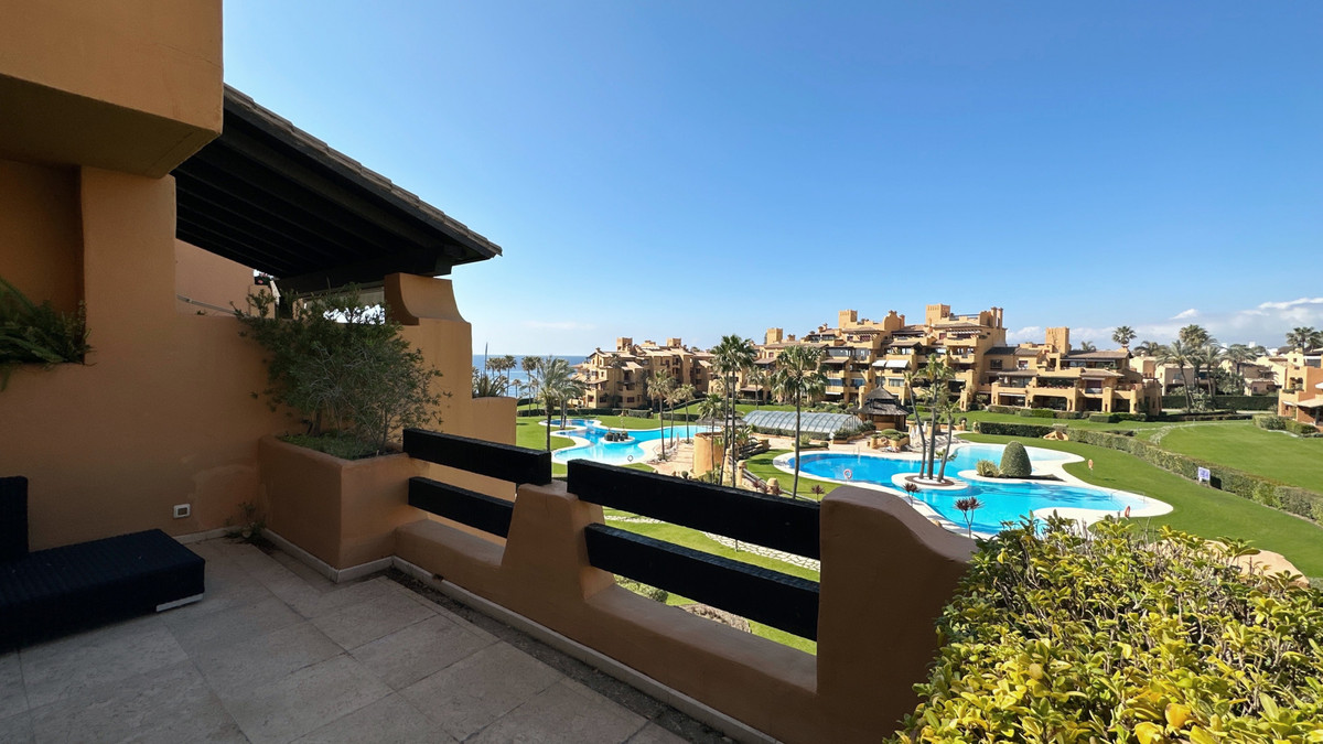 Apartment for sale and for rent in Los Granados del Mar, Estepona with 3 bedrooms, 3 bathrooms, 2 en suite bathrooms and with orientation south/west, with communal swimming pool, communal garage (1 parking spaces) and communal garden. Regarding property dimensions, it has 180 m² built and 50 m² terrace. Has the following facilities front line beach, amenities near, transport near, air conditioning, fully furnished, fully fitted kitchen, jacuzzi, sauna, storage room, gym, security entrance, double glazing, dining room, security service 24h, private terrace, kitchen equipped, living room, indoor pool, heated pool, underfloor heating (throughout), home automation system, internet - wifi, covered terrace, 24h service, electric blinds, fitted wardrobes, gated community, lift, garden view, pool view, beachside, doorman, underfloor heating (bathrooms), close to children playground, close to sea / beach, glass doors, excellent condition, close to shops, close to town, close to port, close to schools, surveillance cameras, armored door, partial sea views, porcelain floors and internet - fibre optic.