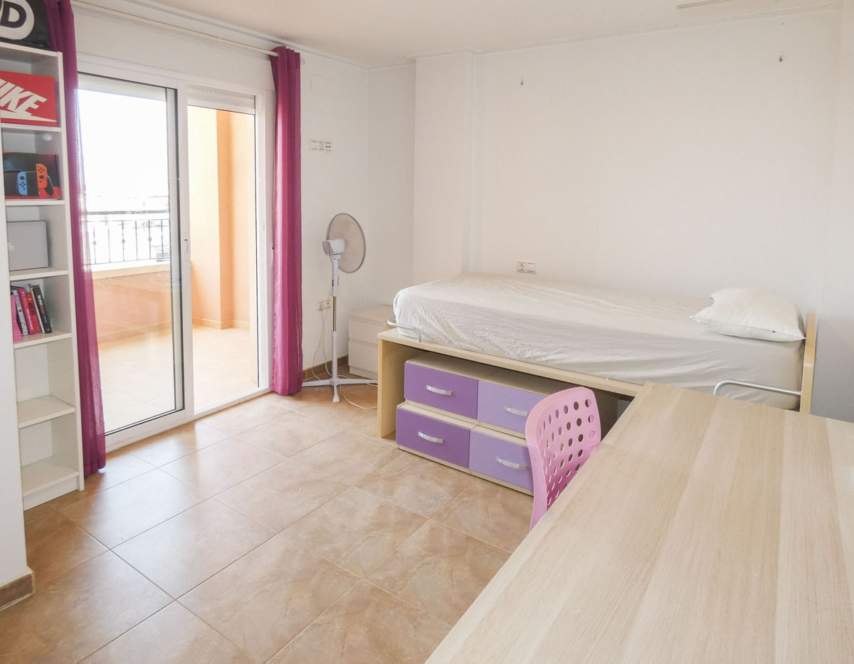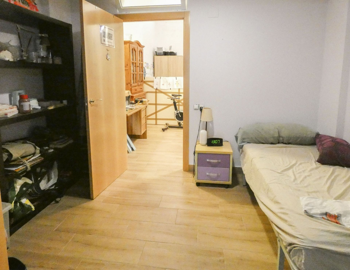 Upstairs you will find a very large bedroom with a double bed. In a hallway towards the private bathroom there are several wardrobes. Very luxurious. On this floor there are also two more bedrooms, one with its own balcony and a shared bathroom with bathtub. All bedrooms have built-in wardrobes.