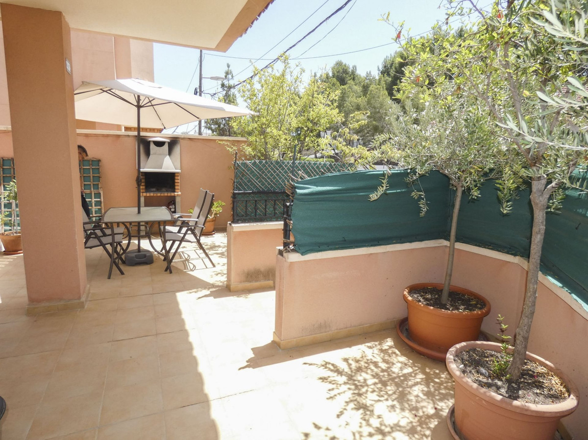 You are welcomed by a private terrace with green plants. On this front to the south is the dining area with barbecue and the pool.