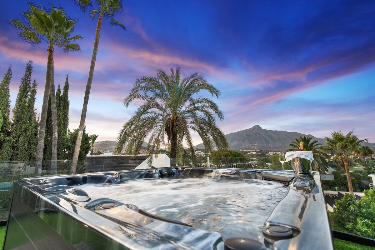 Upstairs: two guest en-suite bedrooms with fabulous views over La Concha, stunning master suite with dressing room and a terrace also enjoying the amazing views.