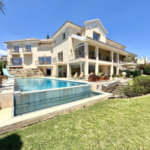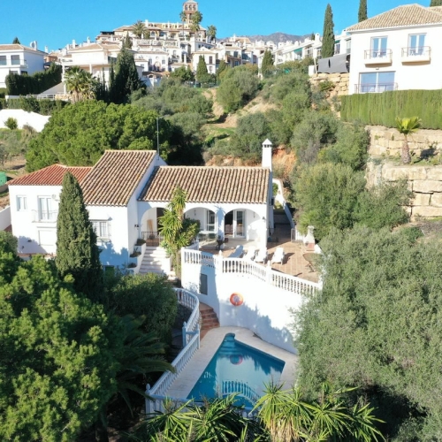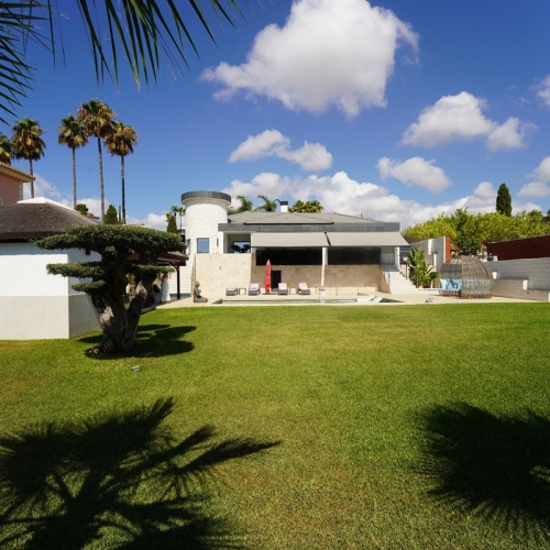 Frontline golf villa with high-quality finishes, less than 5 minutes from the AP7 and Fuengirola.