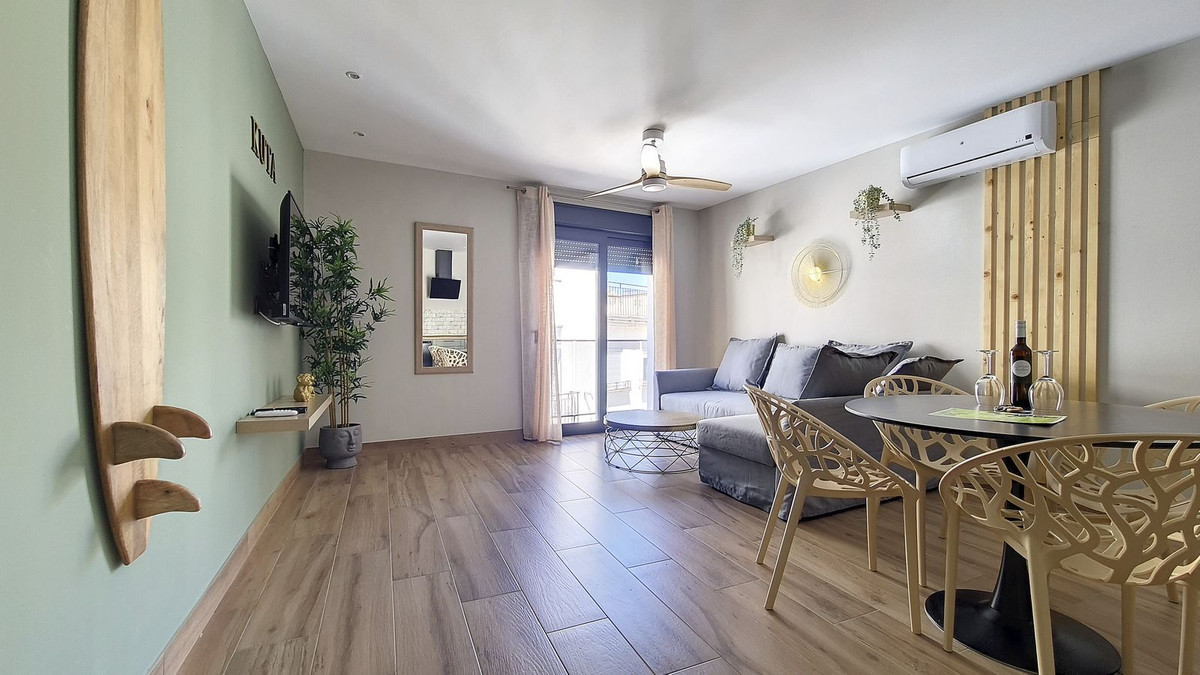 Lad os nu gå til første sal, hvor alle fire lejligheder ligger. Hver lejlighed har materialer og design af høj kvalitet, eget badeværelse, fuldt udstyret køkken (inklusive mikrobølgeovn og køleskab), aircondition (varmt/koldt), fladskærms-tv og egen terrasse eller balkon.