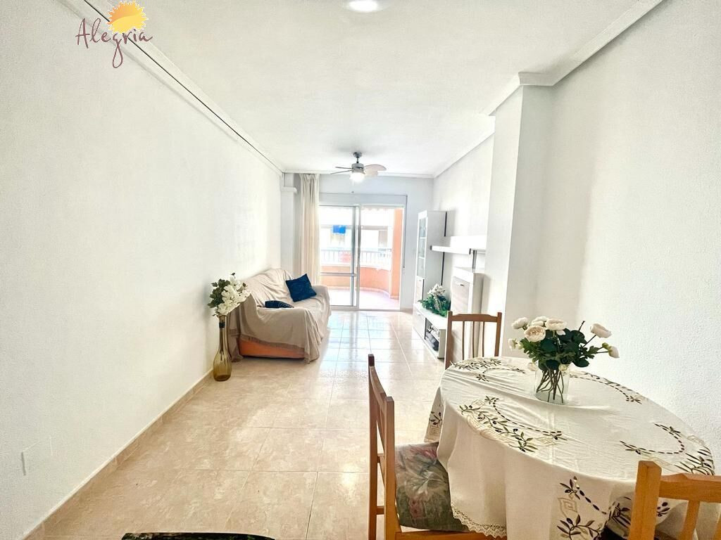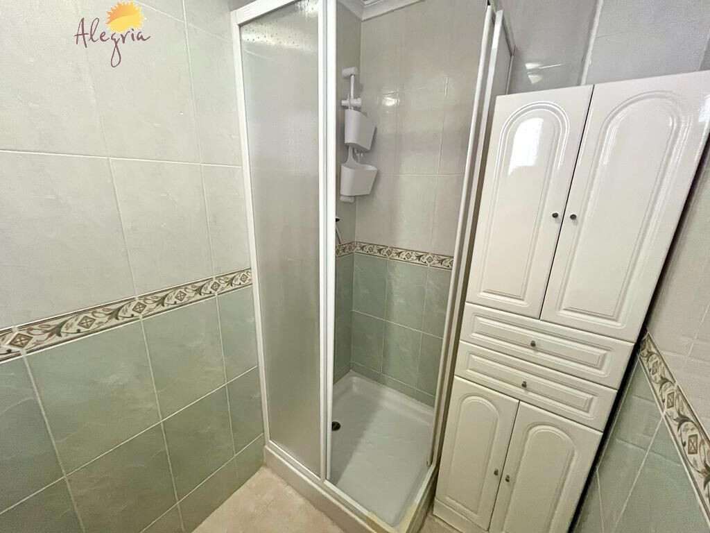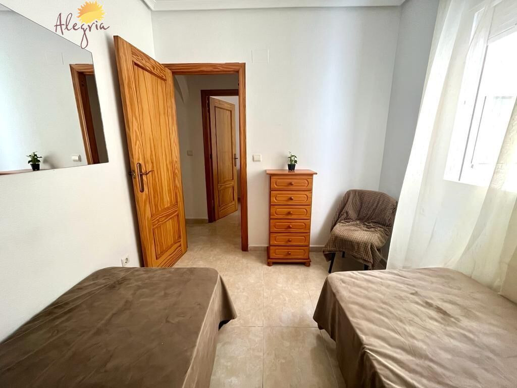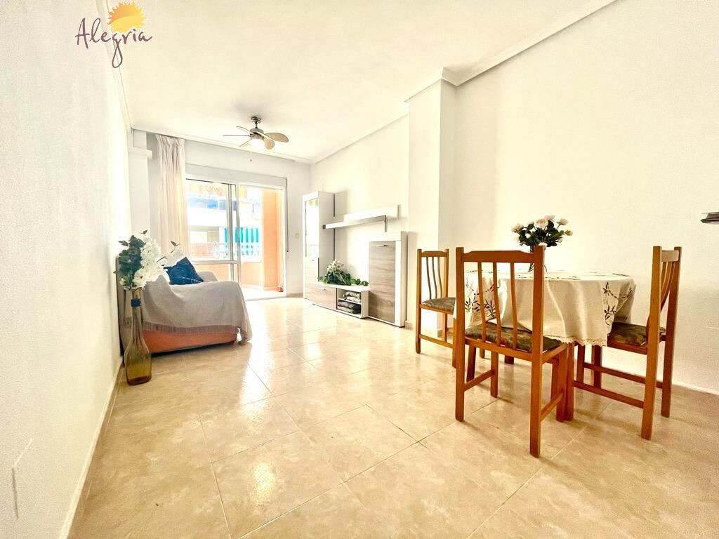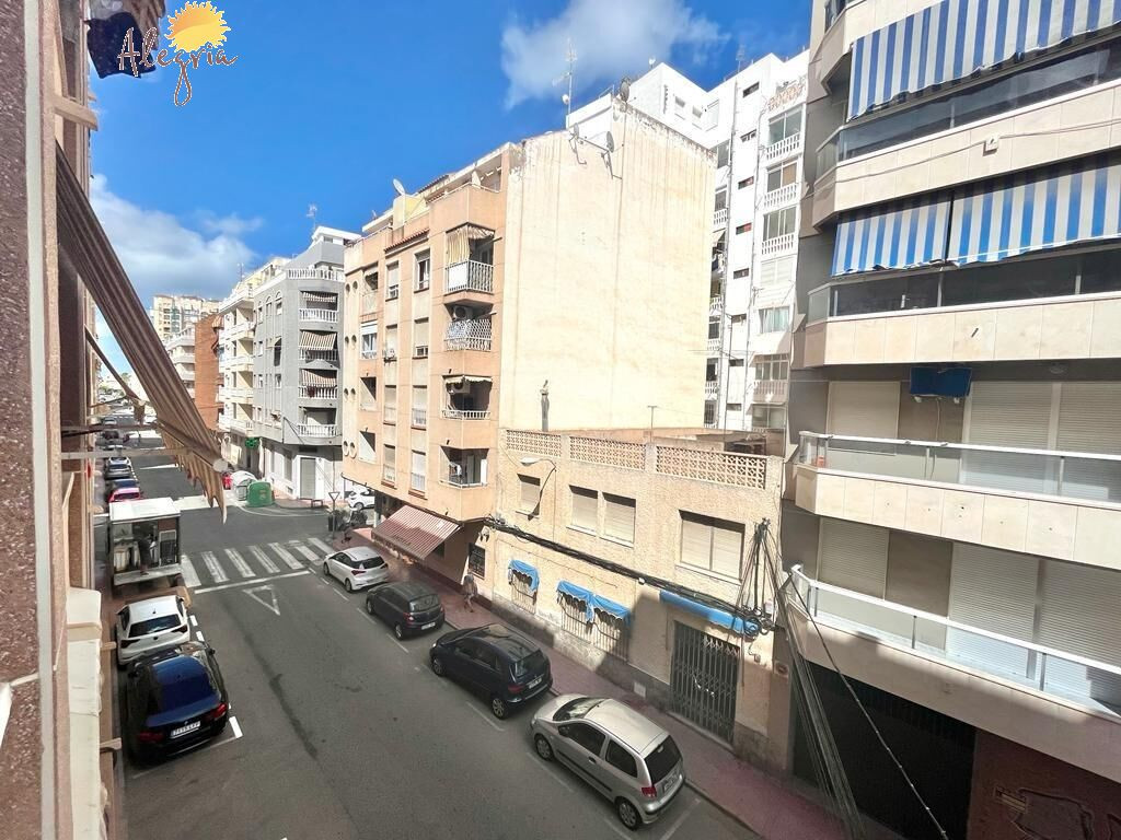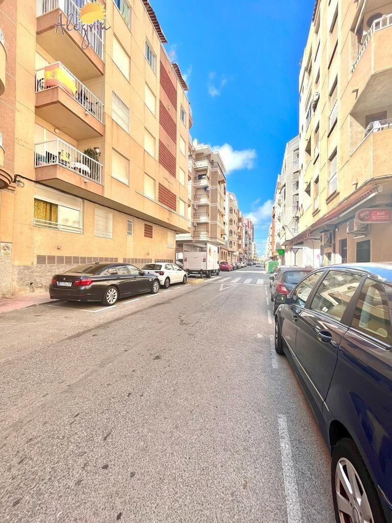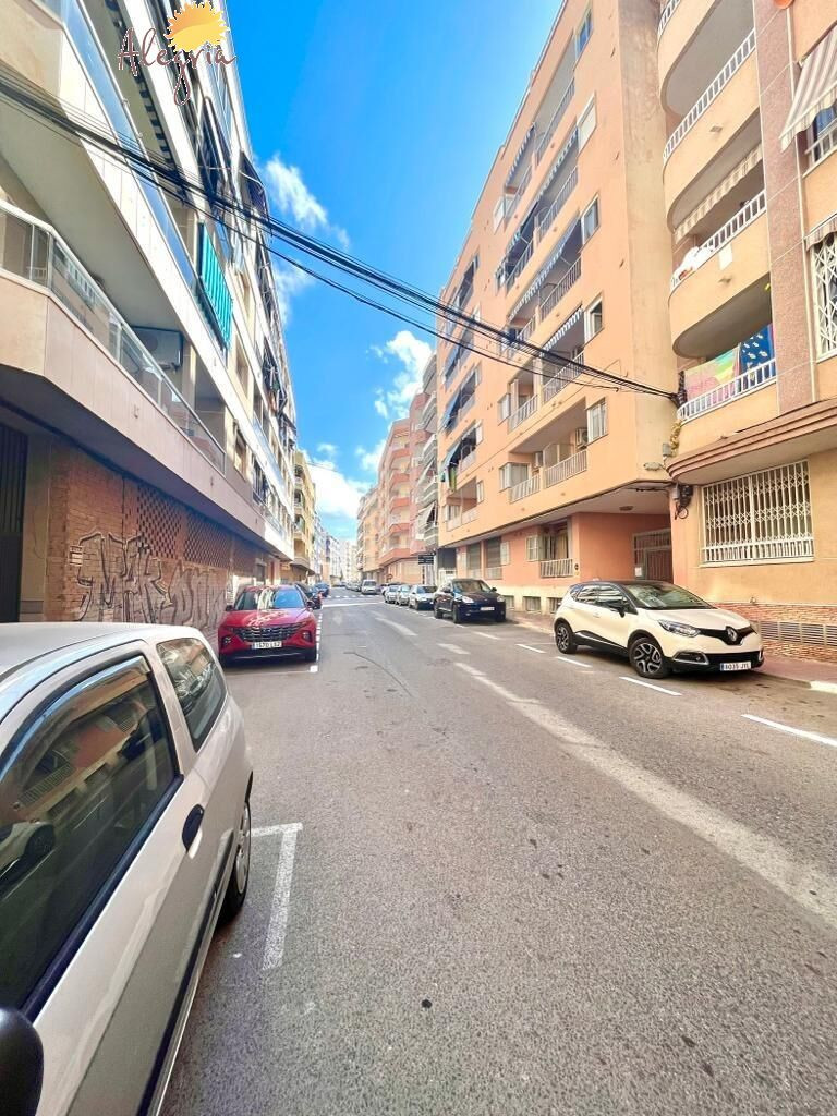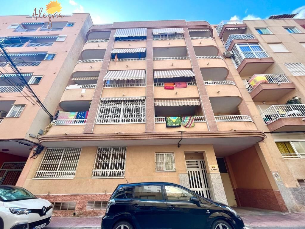 Apartment in Torrevieja, Playa de los locos area, 89 m2. surface, 100 m. from the beach (1 minute walk from the beach), a double room and a single room, 2 bathrooms, property in good condition, equipped kitchen, pine interior carpentry, east facing, porcelain stoneware floor, aluminum exterior carpentry / climalit.Extras: pmr access, water, air conditioning, fitted wardrobes, elevator, balcony, bright, light, furniture, pergola (awning), terrace, buses, trees, downtown, shopping centers, medical centers, schools, coast, hospitals, supermarkets