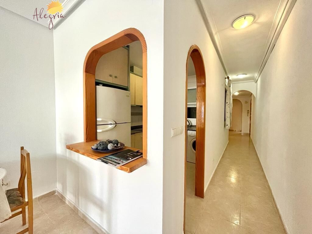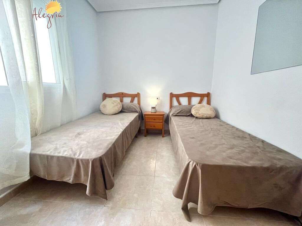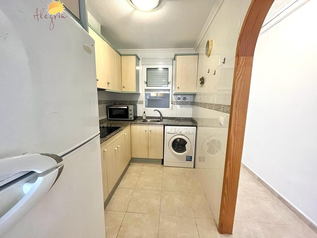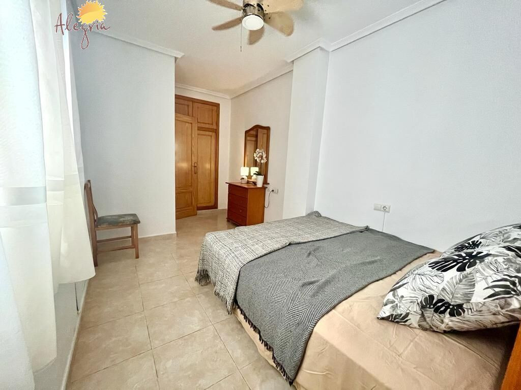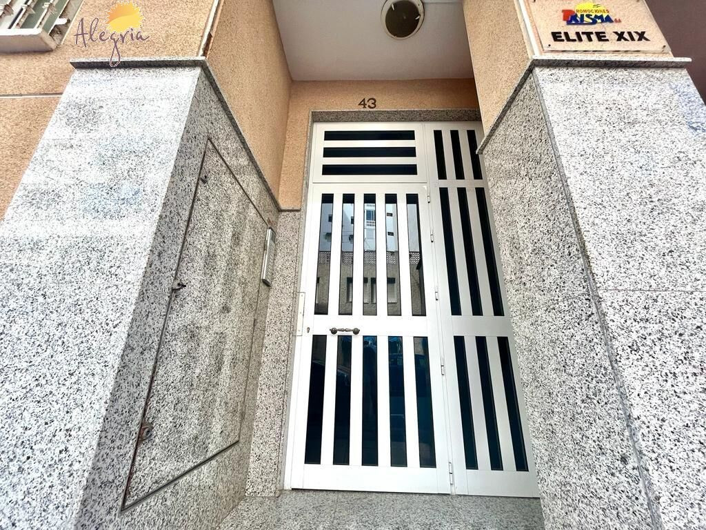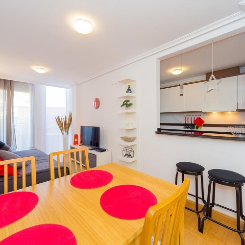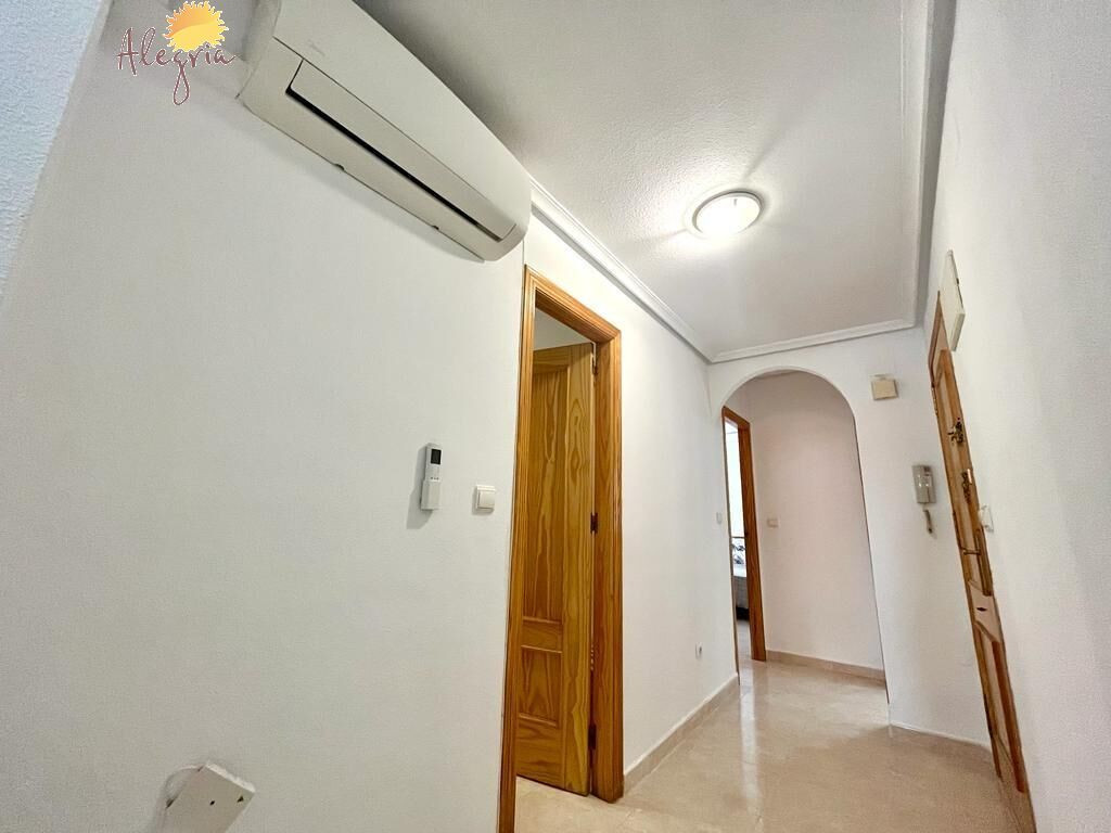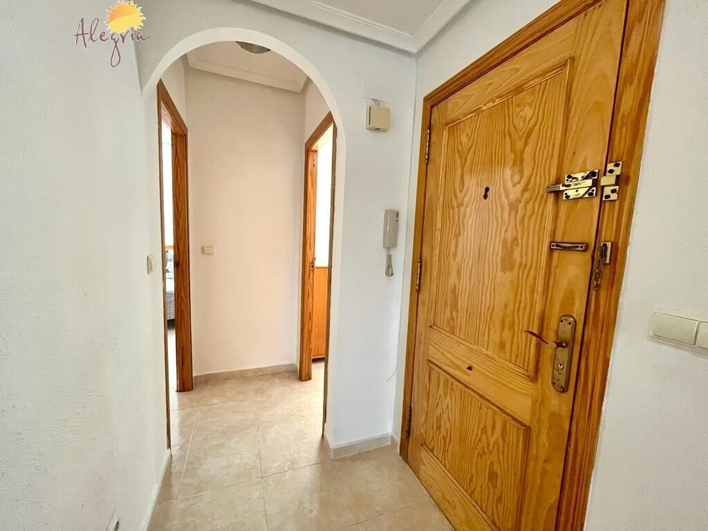 Apartment in Torrevieja, Playa de los locos area, 89 m2. surface, 100 m. from the beach (1 minute walk from the beach), a double room and a single room, 2 bathrooms, property in good condition, equipped kitchen, pine interior carpentry, east facing, porcelain stoneware floor, aluminum exterior carpentry / climalit.Extras: pmr access, water, air conditioning, fitted wardrobes, elevator, balcony, bright, light, furniture, pergola (awning), terrace, buses, trees, downtown, shopping centers, medical centers, schools, coast, hospitals, supermarkets